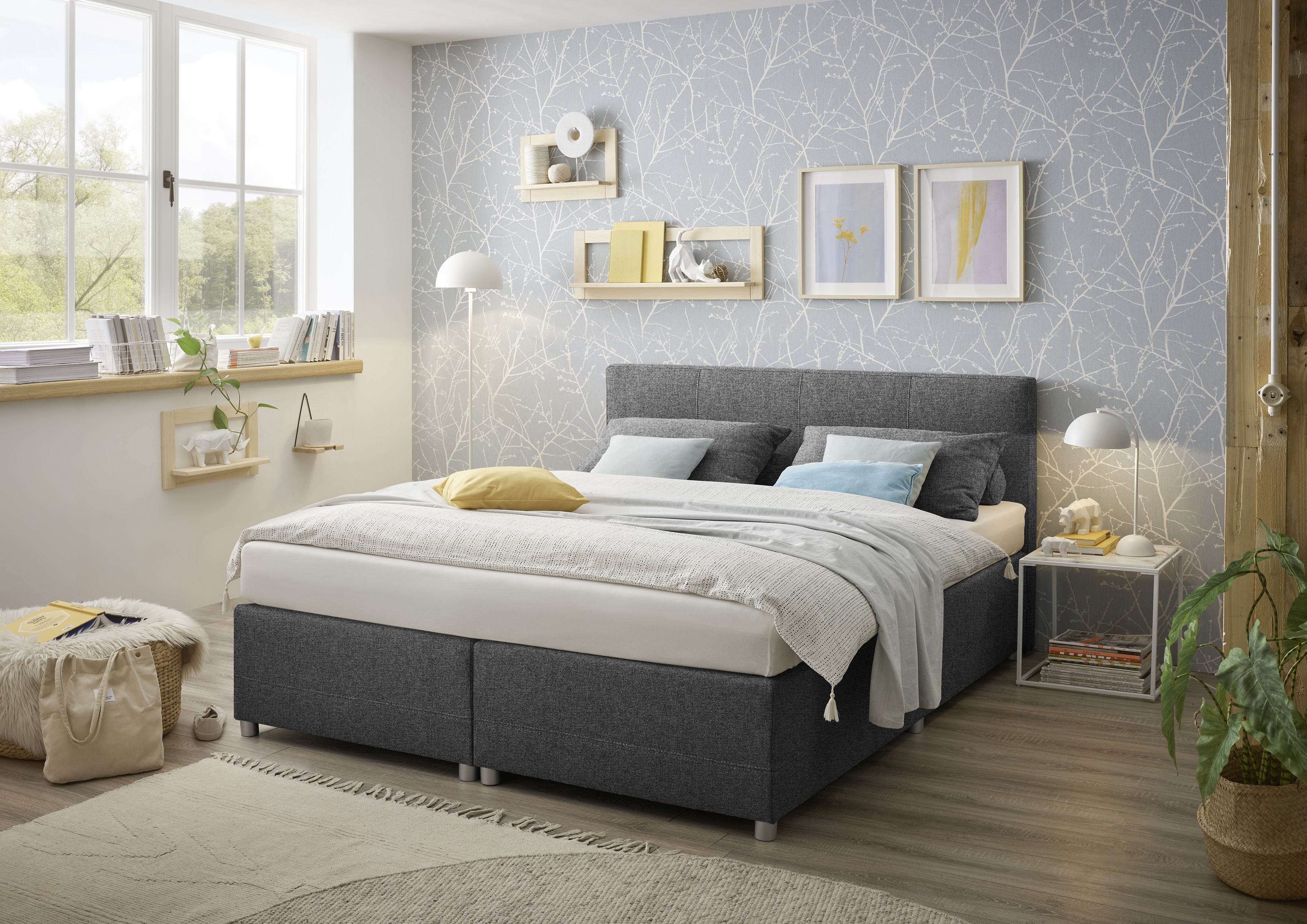 Caisson stable en contreplaqué de qualité ; ressorts bonnell 4 spires, 1 couche de mousse T25 d'env. 1 cm d'épaisseur