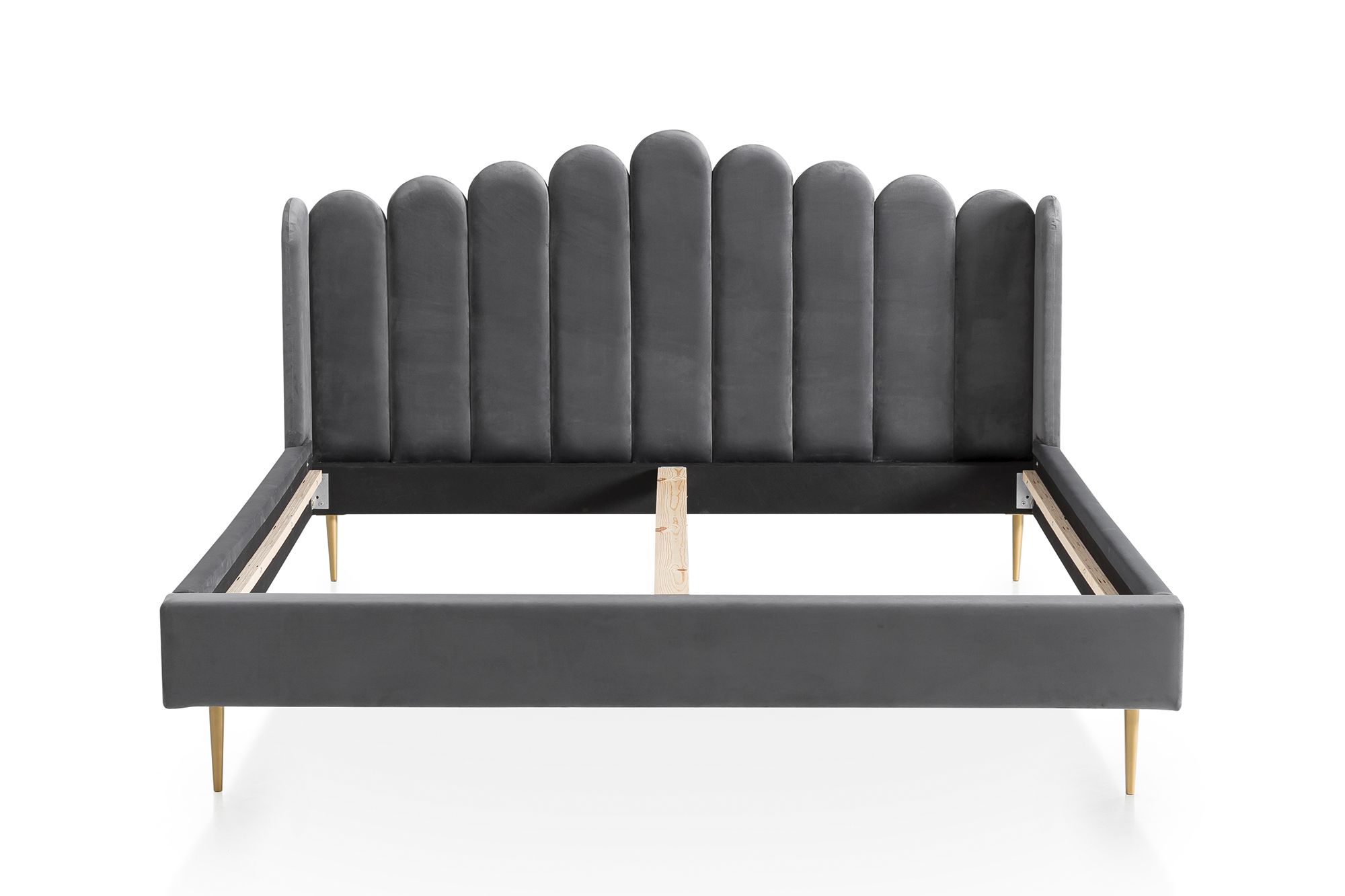 Échappez au quotidien et profitez d'une petite pause. Le lit capitonné en forme de coquillage séduit par son revêtement en velours et sa tête de lit joliment travaillée. Les 4 pieds en métal doré assurent une excellente stabilité tout en offrant un superbe contraste avec le revêtement du lit. L'espace de 18 cm de hauteur sous le cadre de lit peut également servir d'espace de rangement. La forme arrondie de la tête de lit lui donne un look tout en douceur. Ce petit bijou en matière de design deviendra rapidement un élément phare de votre chambre à coucher ainsi que votre nouvel espace bien-être pour des nuits détendues.