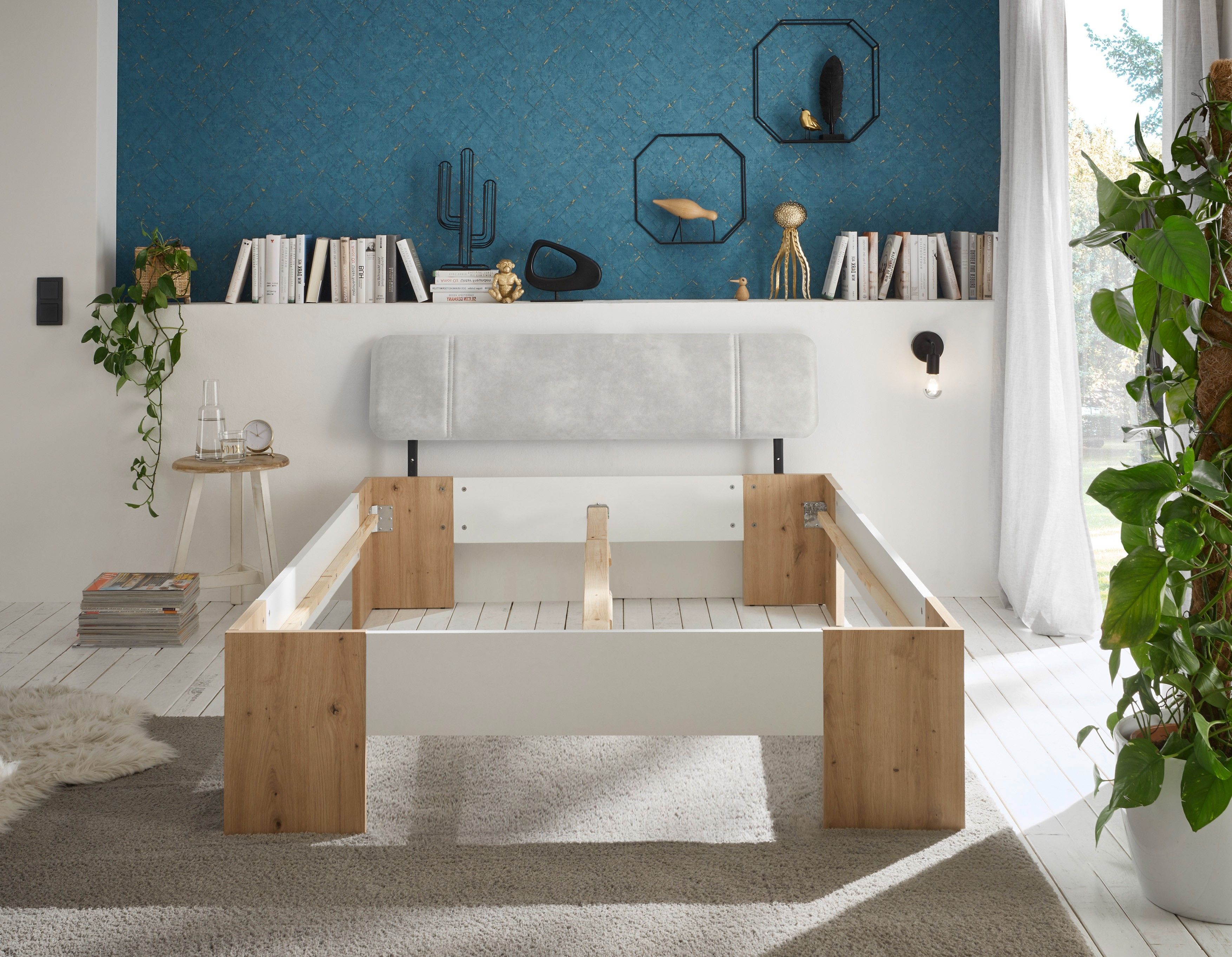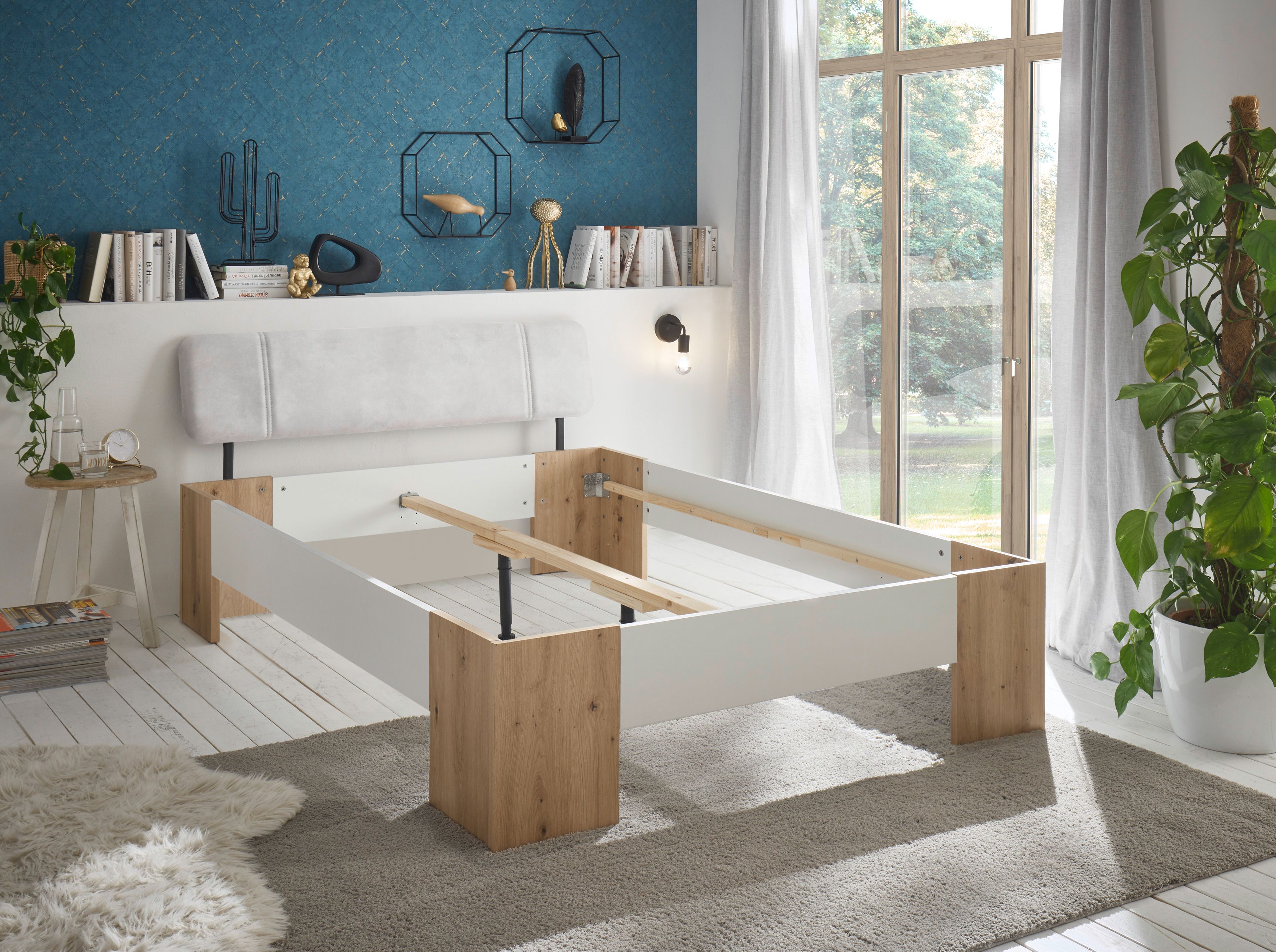 1 cadre de lit avec tête de lit rembourrée