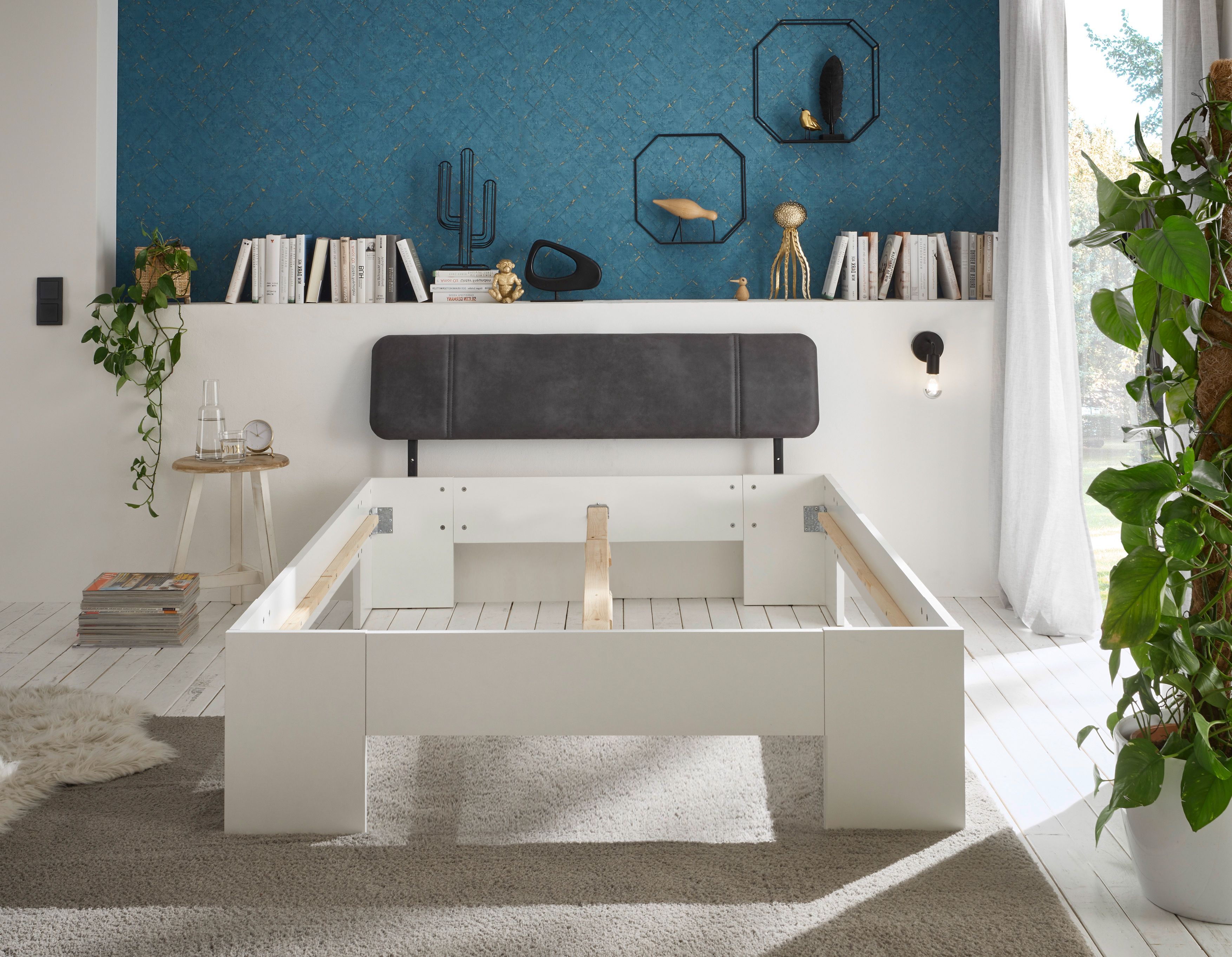 Revêtement de la tête de lit : cuir synthétique ton blanc 100% polyuréthane