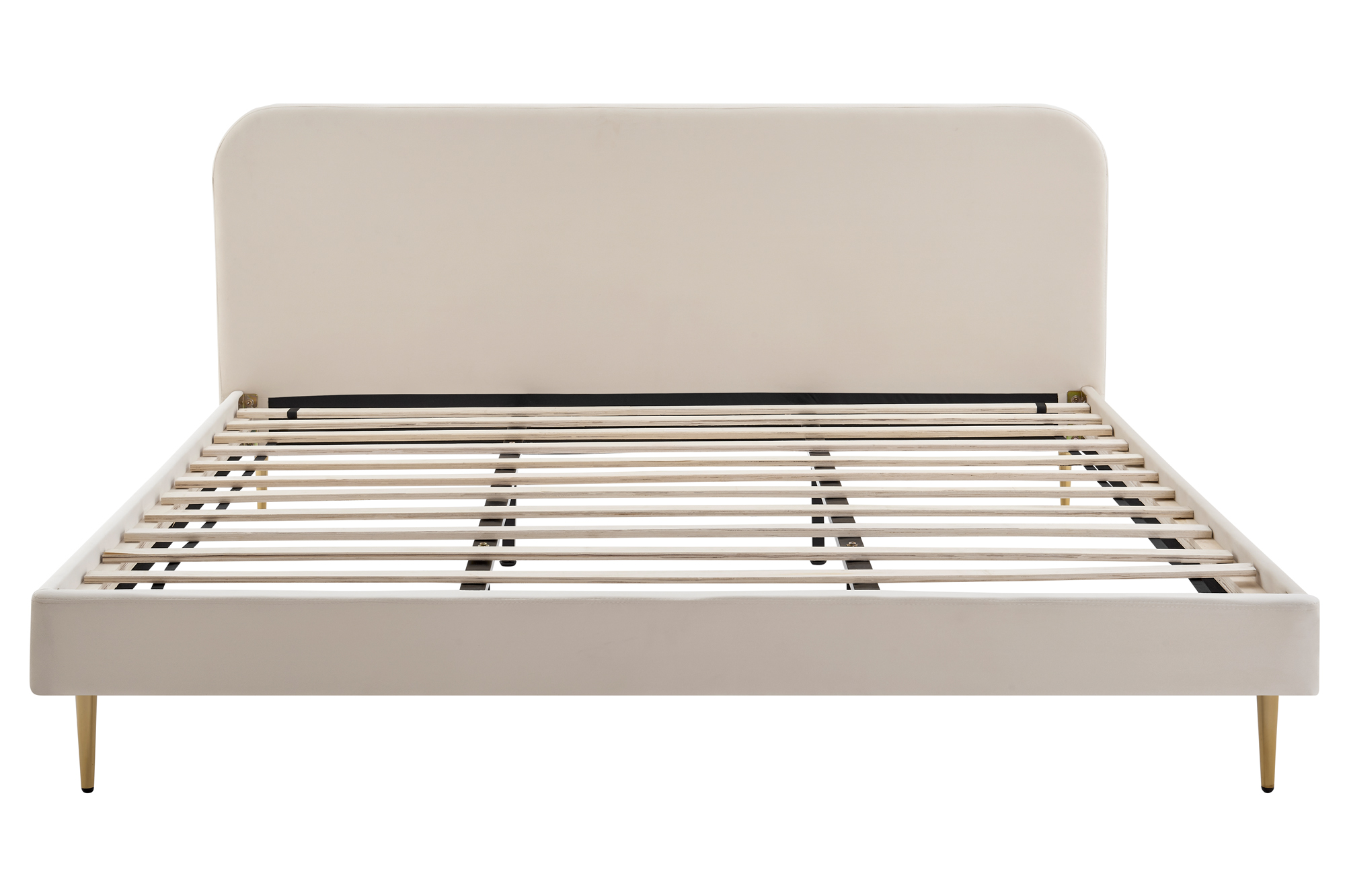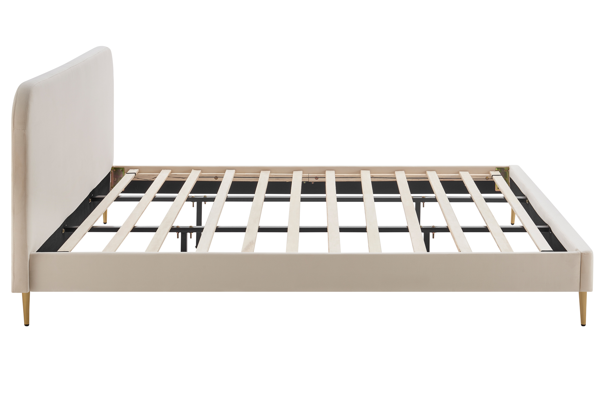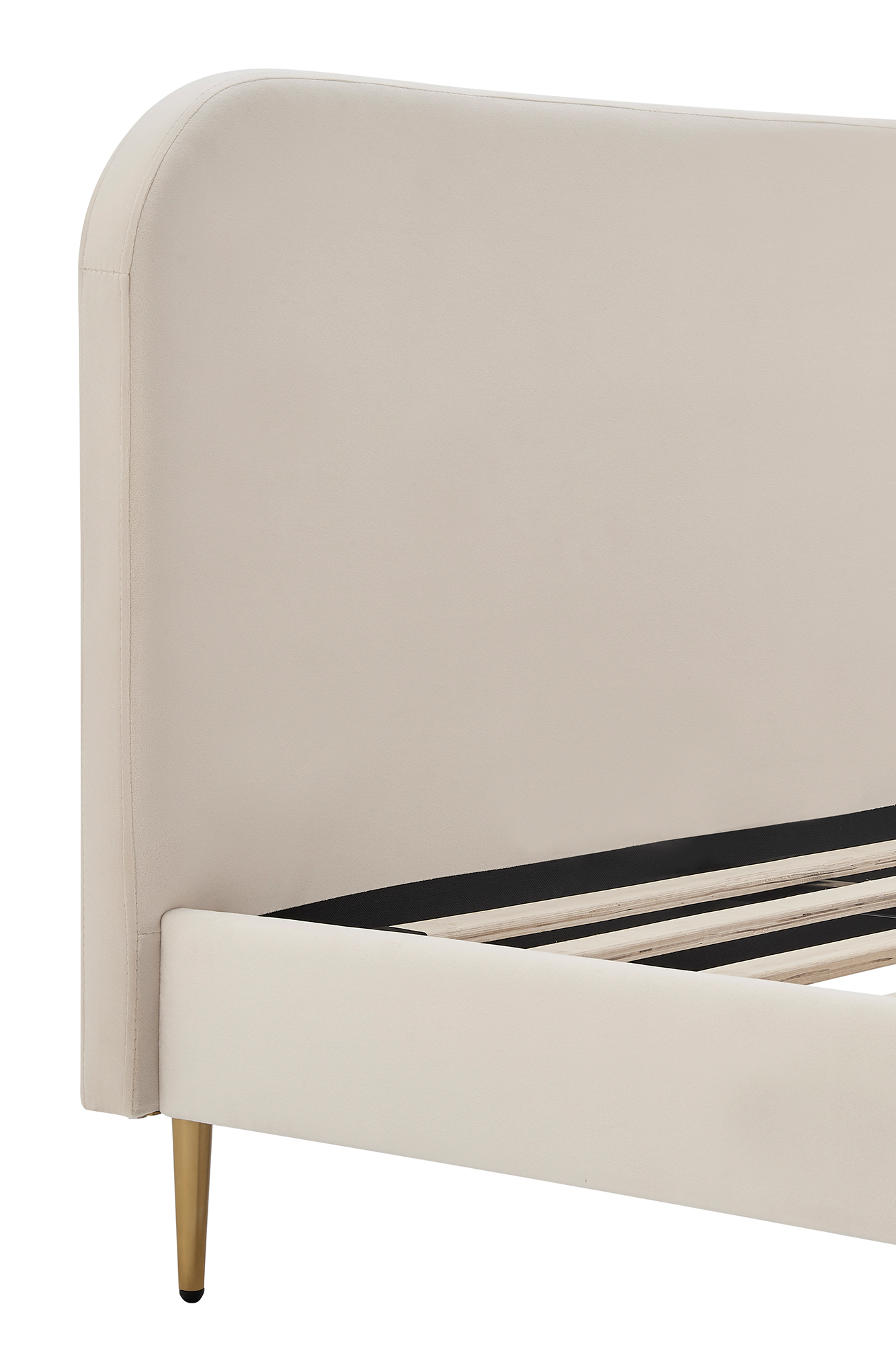 Ce lit rembourré doté d’un revêtement en velours de qualité supérieure confèrera un charme raffiné à votre espace de nuit. Le design aux lignes droites et les lignes épurées de ce lit en font le complément idéal dans de nombreux univers et styles d’aménagement. Les pieds chromés dorés contrastent avec la douceur du velours de la structure pour une touche tendance. Un sommier à lattes (version simple) est inclus dans la livraison. L’espace libre de 15 cm sous le lit peut être utilisé de manière optimale comme espace de rangement, par exemple pour des boîtes plates contenant du linge de lit ou des vêtements de saison. Vous trouverez certainement votre bonheur parmi les trois variantes de couleurs et de tailles disponibles.