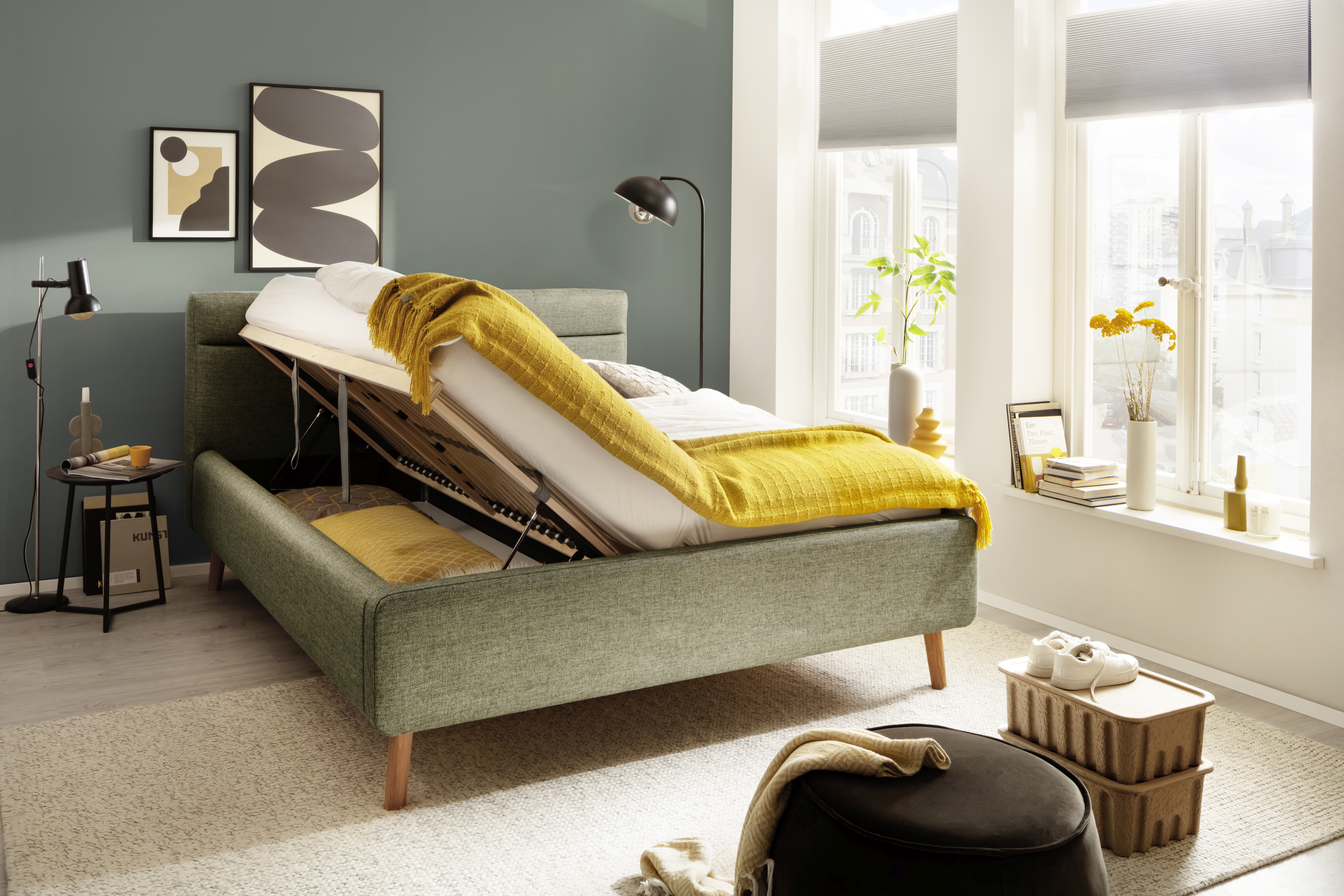 Inclus : 2 coffres de lit avec aération et sommiers à lattes en bois multiplis avec ouverture latérale