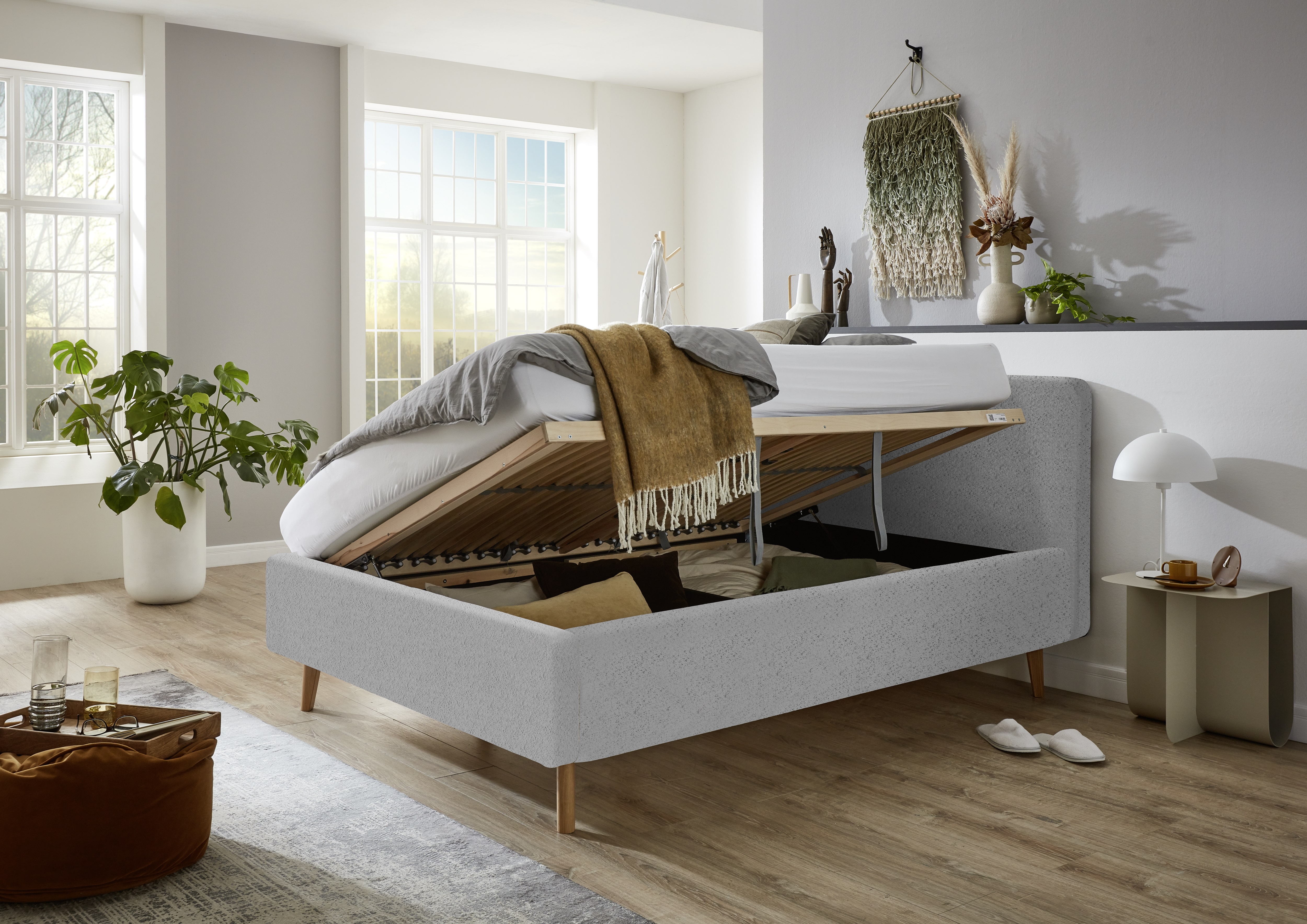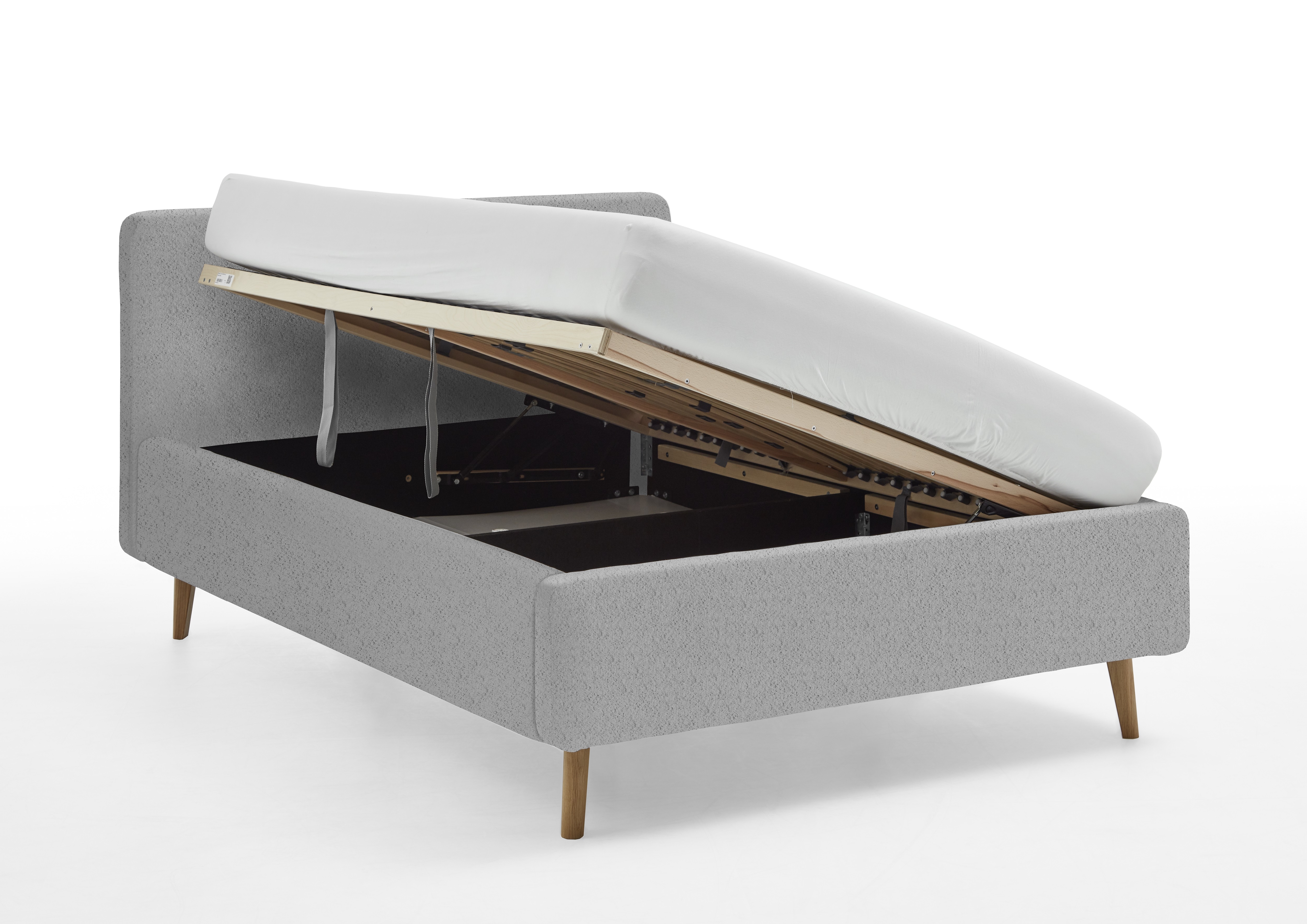 inclus : un coffre de lit avec aération et sommier à lattes en bois multiplis avec ouverture latérale