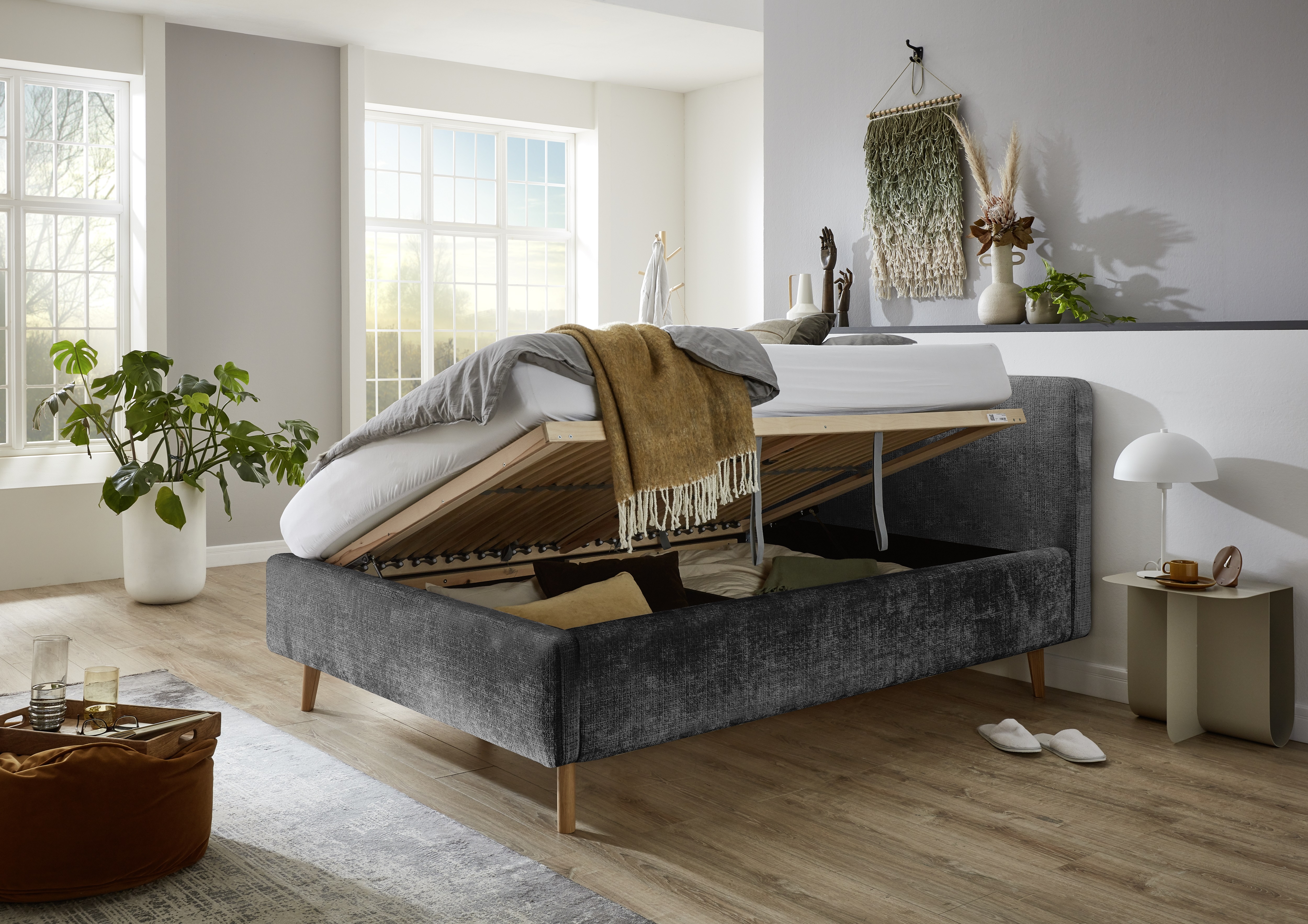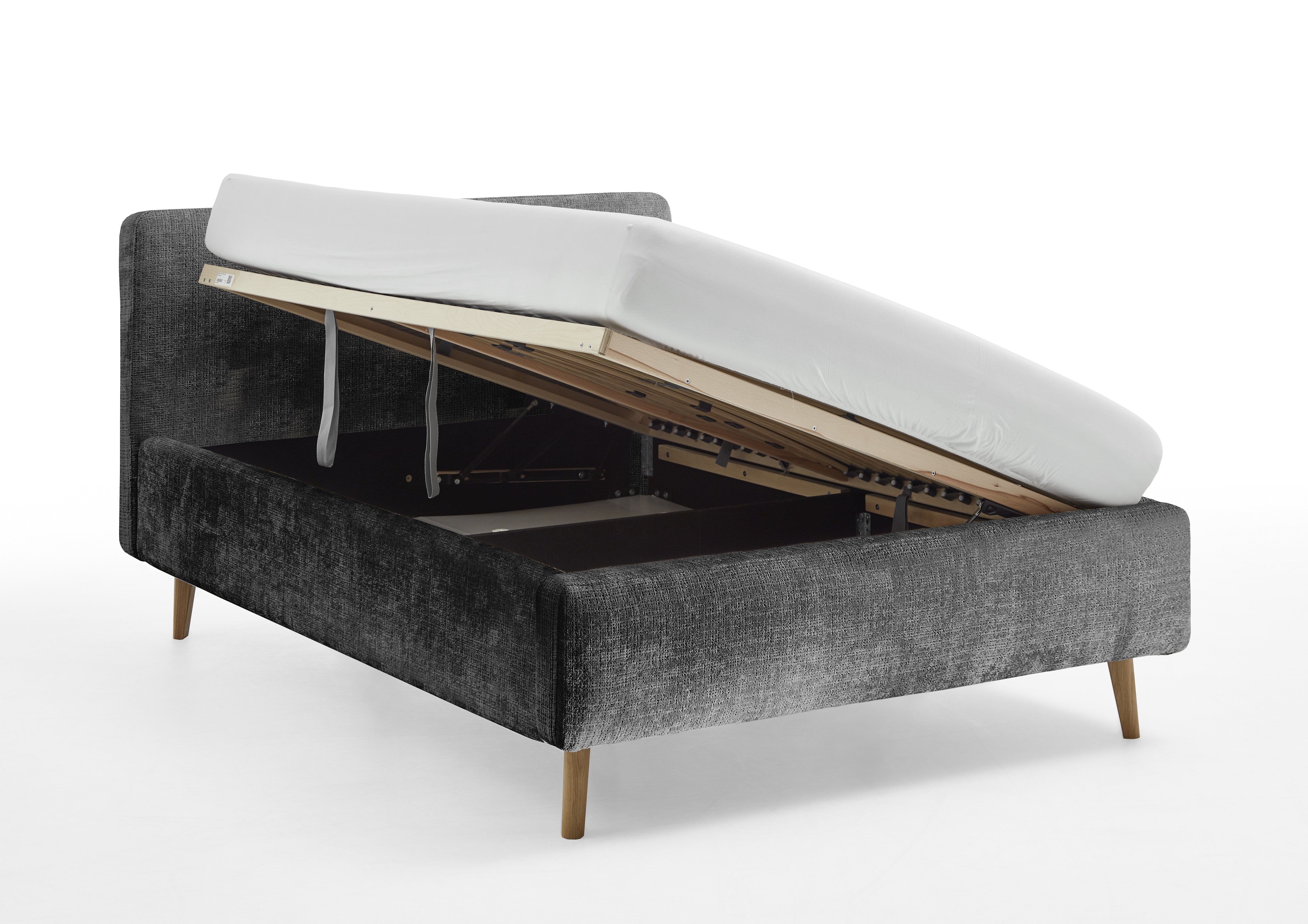 inclus : un coffre de lit avec aération et sommier à lattes en bois multiplis avec ouverture latérale