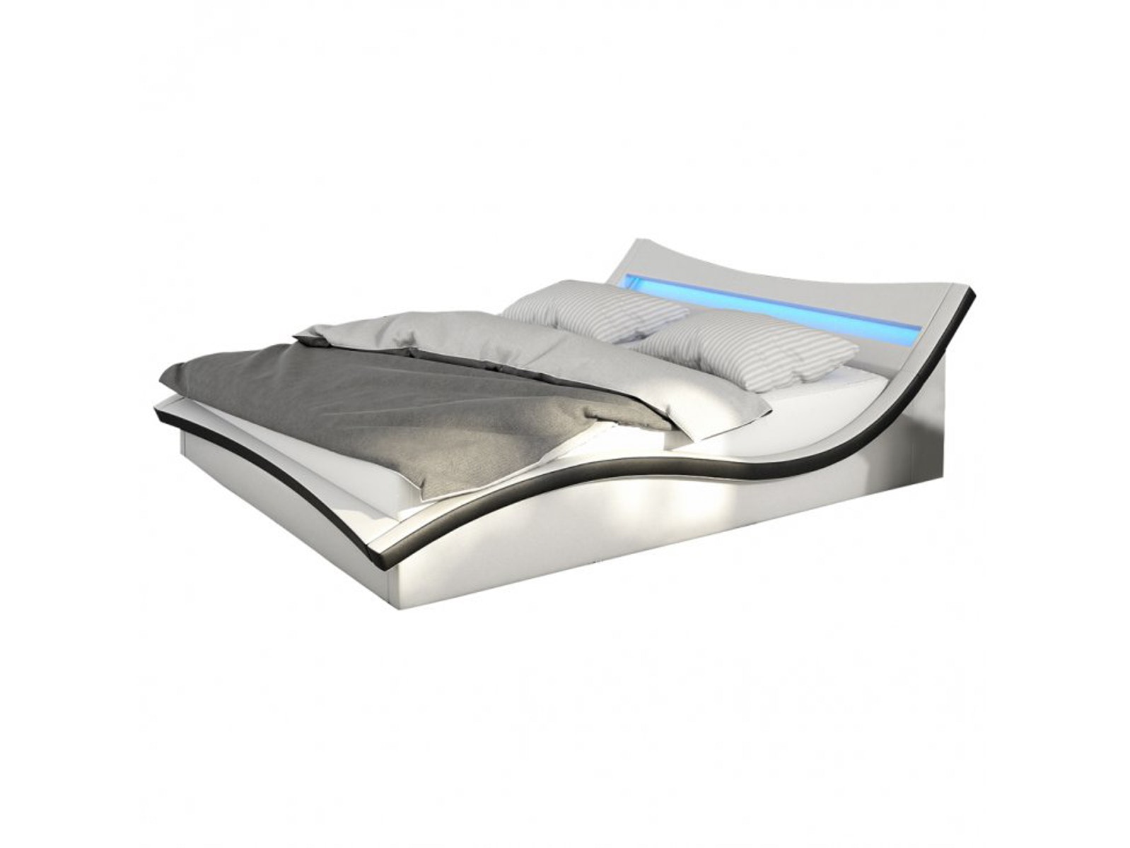 Ce lit rembourré moderne ton blanc et noir séduit par ses lignes ondulées. Le revêtement chic est en cuir synthétique facile d’entretien. Le lit est équipé d’une traverse centrale autoportante et d'un sommier à lattes enroulable. Profitez de la possibilité d’utiliser deux petits matelas ou un grand matelas avec des degrés de fermeté différents. C’est un véritable avantage pour les couples qui ont des habitudes de sommeil différentes. Les deux bandeaux lumineux intégrés dans la tête de lit permettent de longues soirées lecture. Avec ce petit bijou de design, vous pourrez créer un espace de repos personnalisé dans votre chambre à coucher.