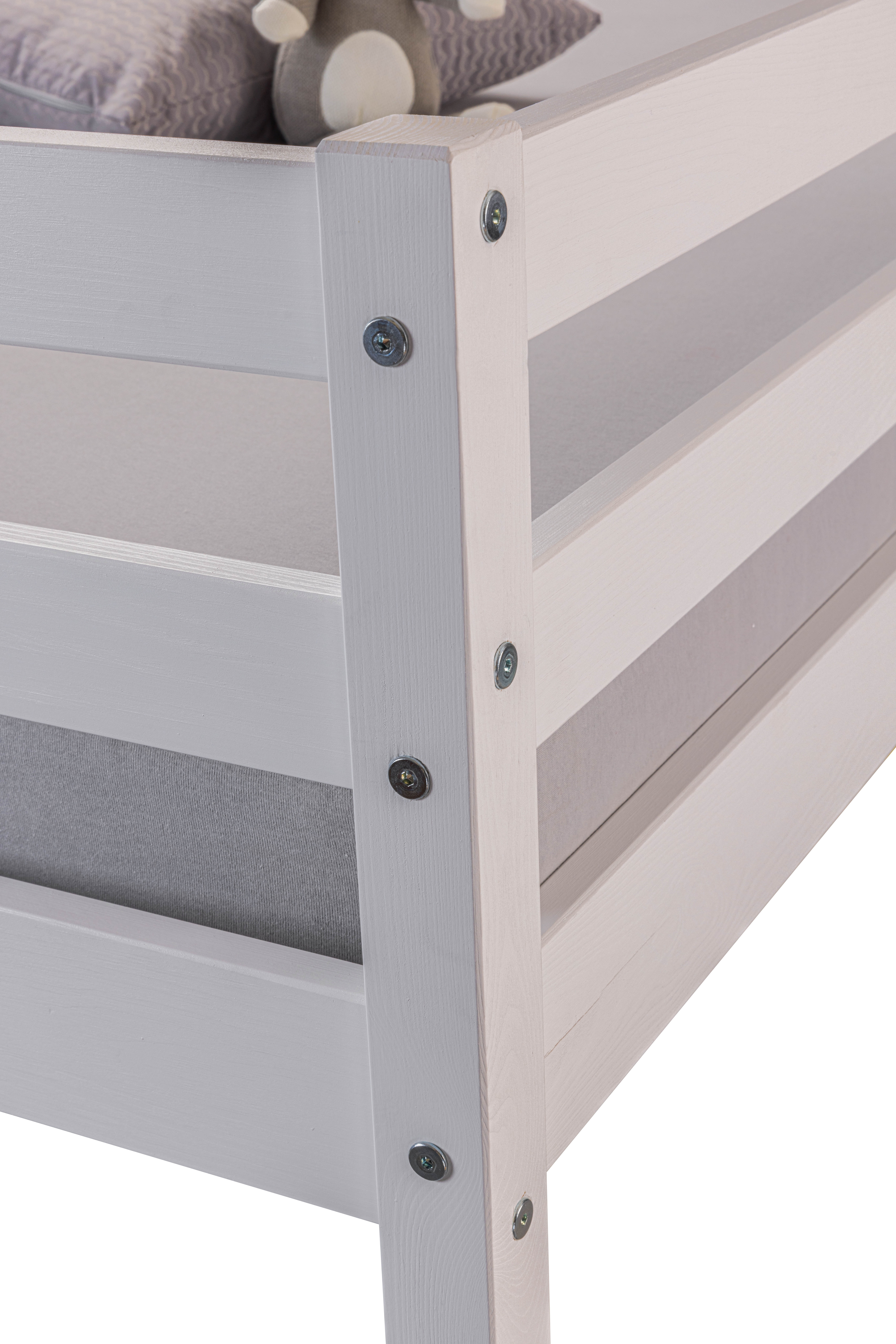Le blanc lumineux et aérien confère à la pièce une atmosphère accueillante et s’intègre facilement dans n’importe quel univers coloré. Sa construction robuste garantit stabilité et sécurité, tandis que son design ludique avec des formes de nuages sur les panneaux latéraux émerveillera les enfants.