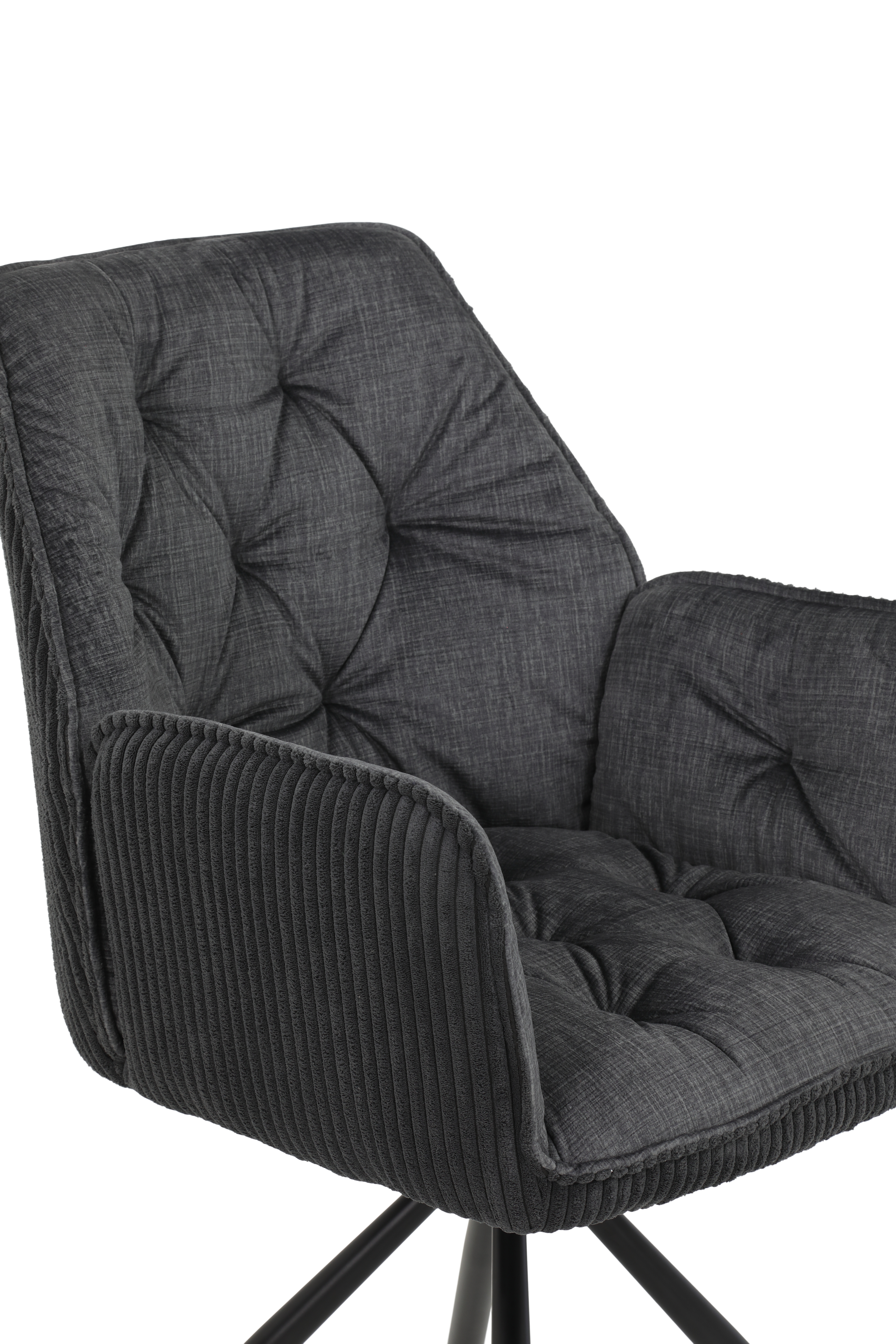 Revêtement : intérieur, microfibre Copper 50/28 ton anthracite 100% polyester ; extérieur : velours côtelé à larges bandes ton anthracite 100% polyester