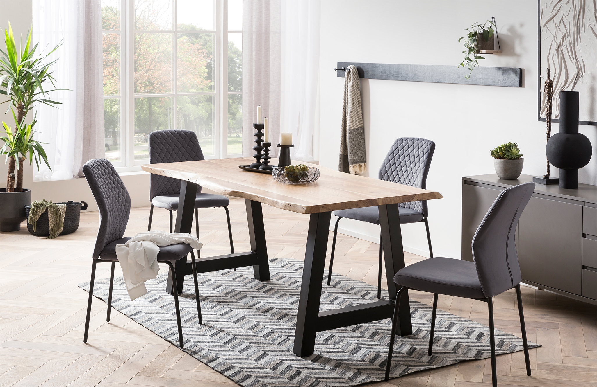 Cette chaise de salle à manger dans un design minimaliste sera du plus bel effet absolument partout. Le dossier matelassé avec surpiqûres soignées en forme de losanges confère à la chaise un charme particulier qui attire le regard. Le dossier légèrement incliné ne rend pas seulement cette chaise intéressante visuellement mais aussi en matière de confort d’assise. La chaise est revêtue d’un tissu aspect velours glamour et dispose d’un piètement 4 pieds stable d’aspect classique. Ce modèle est proposé par lot de 2 chaises qui facilitent l’intégration de différents coloris autour de la table dans un look « Mix & Match ». Avec cette chaise, vous ne pouvez pas vous tromper, que ce soit dans la salle à manger, comme siège de bureau ou pour la coiffeuse.