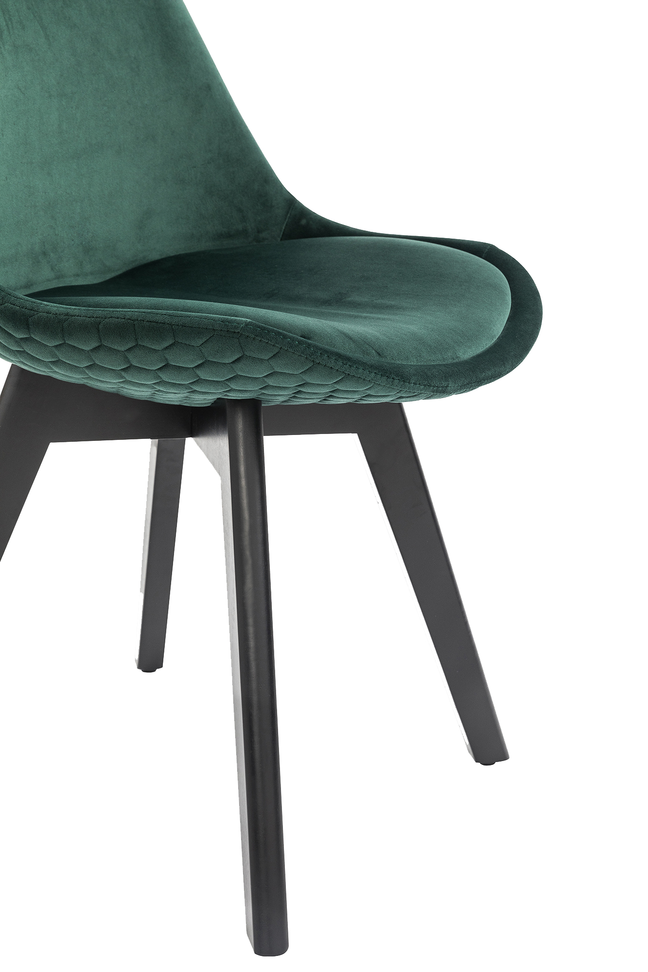 Ce lot de 2 chaises rembourrées modernes séduit par le joli revêtement en tissu velours et par le garnissage au niveau de l'assise et du dossier. Les 4 pieds en bois de hêtre massif teinté ton noir garantissent une excellente stabilité tout en offrant un superbe contraste avec le revêtement. Grâce au rembourrage et à la surface d'assise agréable, vous profiterez d'une position ultra confortable. Les surpiqûres en forme de nid d'abeilles qui s'étendent sur la partie extérieure de l'assise et du dossier attirent tous les regards.