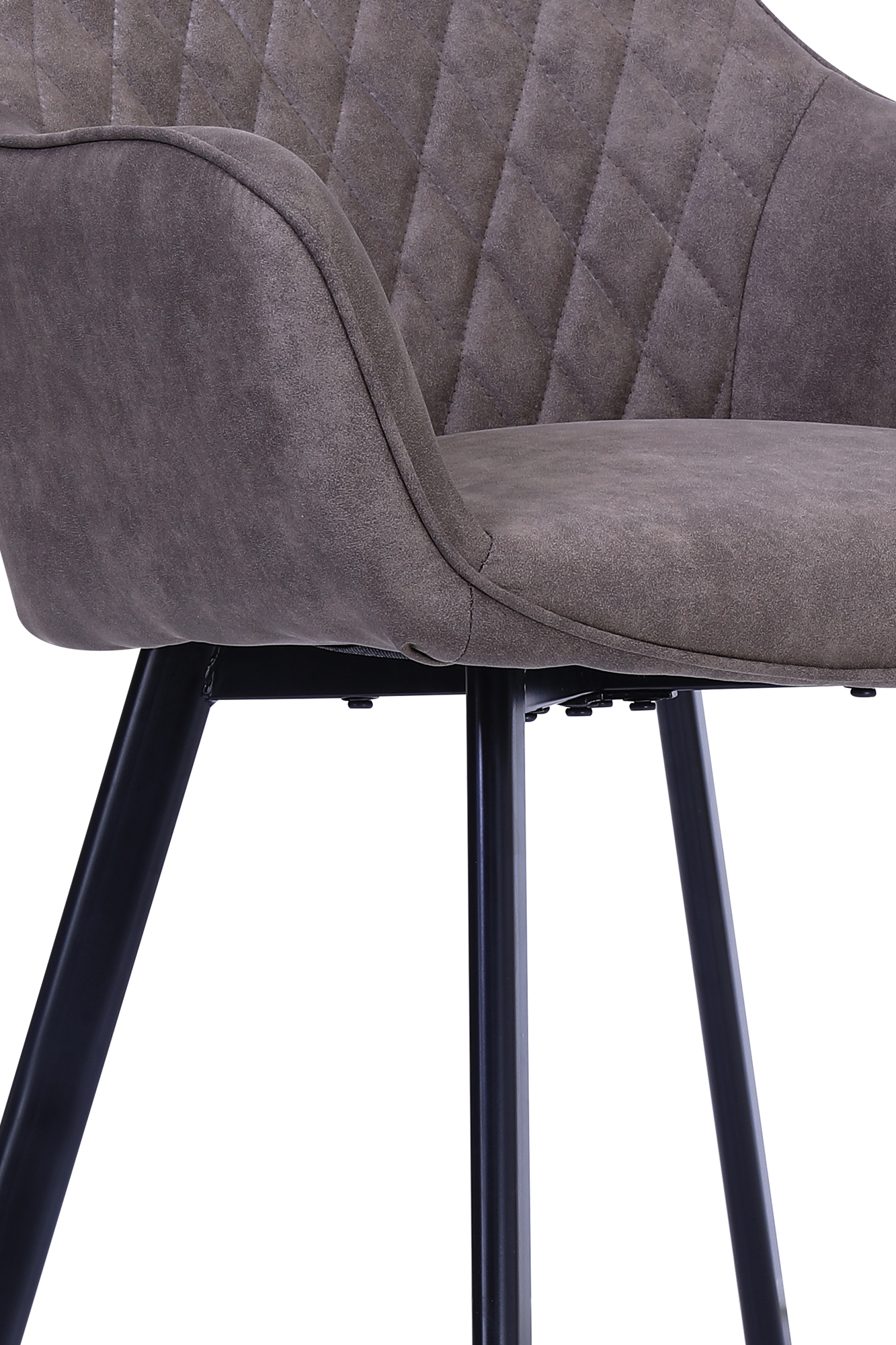 Joli lot de 2 chaises rembourrées stylées avec revêtement en tissu microfibre de qualité. Les 4 pieds sont en métal finition époxy ton noir. La coque en forme de fauteuil est pourvue de surpiqûres en losanges sur la face intérieure. Grâce aux bords arrondis de forme ergonomique, aux accoudoirs et à la hauteur agréable du dossier, vous bénéficierez d'un confort d'assise exceptionnel.
