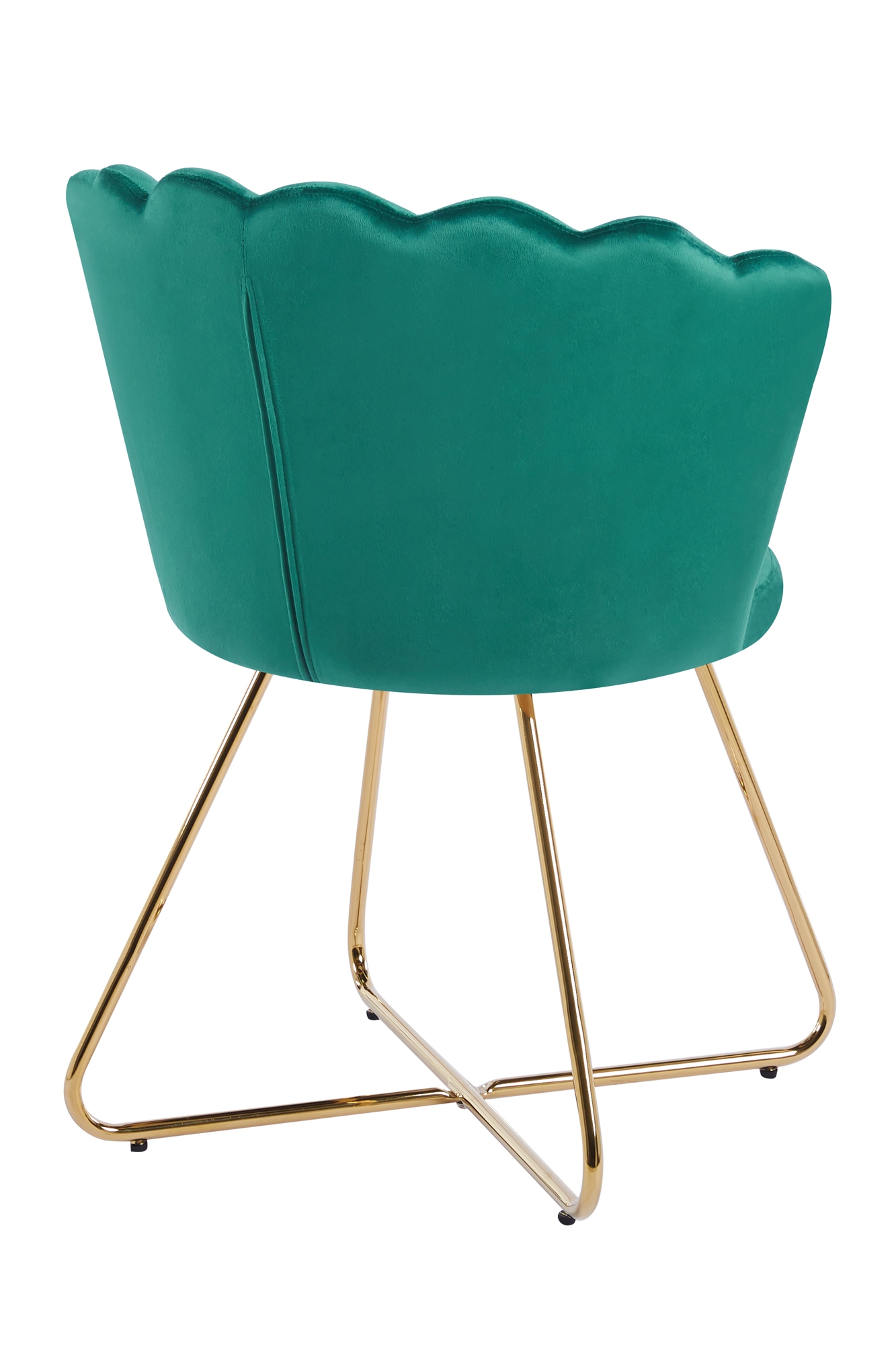 Fuyez le quotidien et profitez d'une petite pause. Ce lot de chaises tendance dans un design coquillage séduit par son revêtement en velours et par son assise et son dossier arrondis. Le piètement au design croisé en métal doré garantit une excellente stabilité tout en offrant un superbe contraste avec le revêtement de la chaise. Grâce au rembourrage de l'assise et du dossier et à la forme stylée de ce fauteuil, vous profiterez d'un confort d'assise exceptionnel. Sa forme arrondie lui donne un look tout en douceur. La chaise peut être positionnée dans le séjour en guise de chaise de salle à manger ou servir de siège, par exemple, pour compléter une coiffeuse. Peu importe où vous la placerez, cette chaise coquillage attirera tous les regards dans votre intérieur.