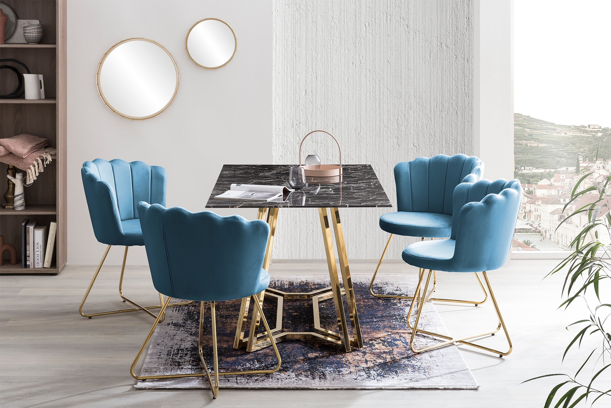 - Le piètement croisé en chrome doré garantit un look tout en finesse