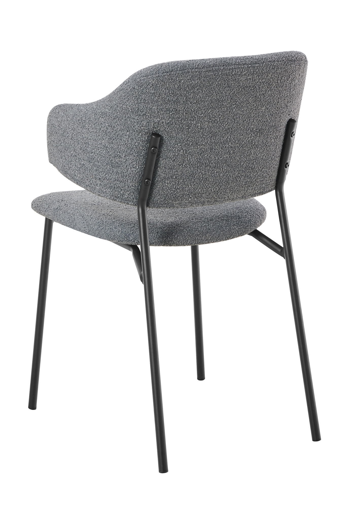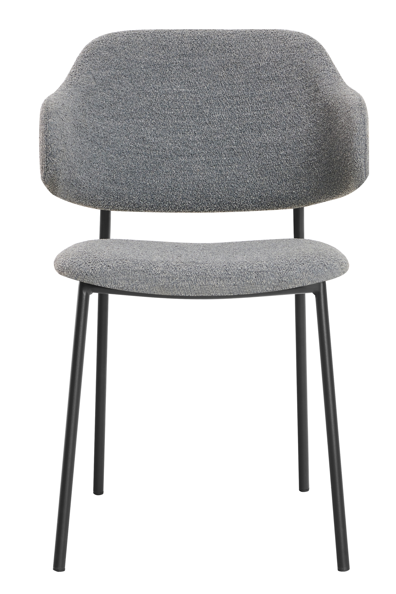 Ce lot de 2 chaises à accoudoirs tendance séduit par le tissu chiné aspect bouclette. Le piètement fin à 4 pieds en métal finition époxy ton noir mat garantit une excellente stabilité tout en offrant un superbe contraste avec le revêtement de la chaise. Grâce au dossier arrondi et au rembourrage confortable, vous bénéficierez d'un excellent confort d'assise. Les accoudoirs légèrement évasés sont un vrai point fort visuel. Grâce à leur design stylé, les chaises peuvent être placées dans un coin repas, une salle d'attente ou même une salle de réunion. Cette chaise attirera également tous les regards en guise de siège solo. Vos invités et vous-même allez adorer votre nouvelle chaise.