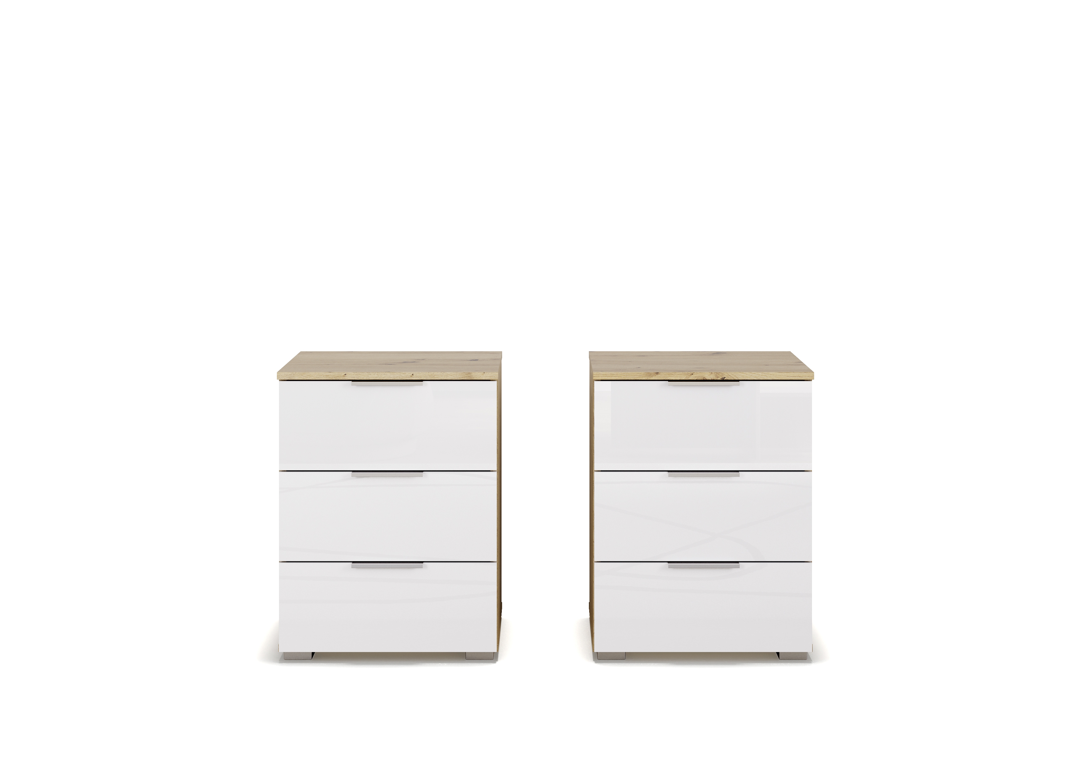 2 chevets comprenant, chacun, 3 tiroirs avec rappel automatique et fermeture amortie