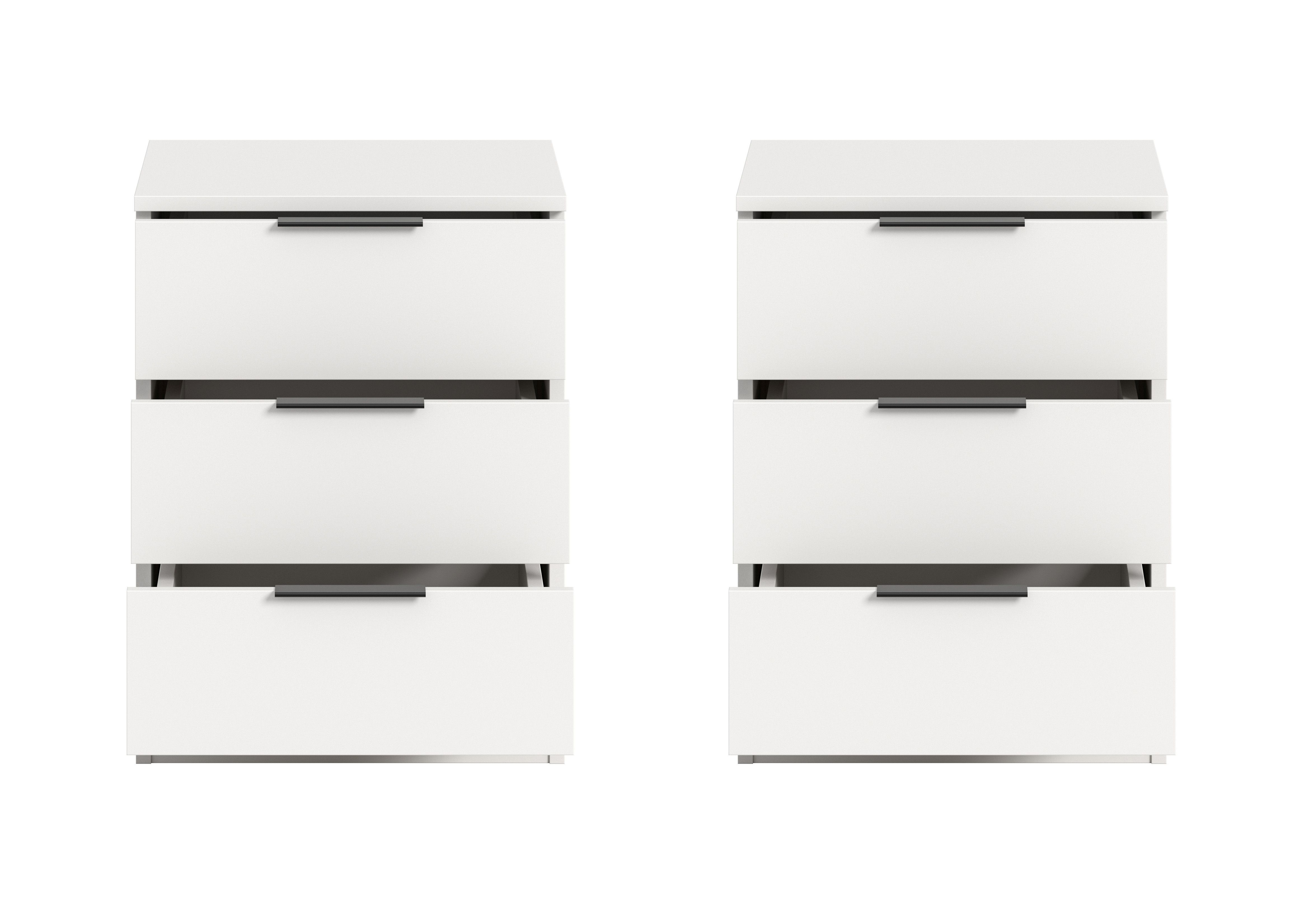 Ce lot de 2 chevets vous offre un espace de rangement pratique tout en créant une atmosphère harmonieuse dans votre chambre à coucher. Avec leur design blanc épuré, ces chevets feront régner le calme et l’ordre dans votre cocon. Chaque chevet dispose de trois tiroirs spacieux à sortie totale : la solution idéale pour ranger vos objets préférés et y accéder facilement. Fabriqués à partir de matériaux de qualité, ces chevets se distinguent par leurs surfaces faciles d’entretien qui se nettoient aisément pour une chambre toujours propre et accueillante. Avec leurs dimensions compactes (45 x 60 x 40 cm), ils s’intègrent parfaitement de chaque côté du lit et peuvent être utilisés de manière polyvalente : pour poser vos livres, une lampe ou vos effets personnels.