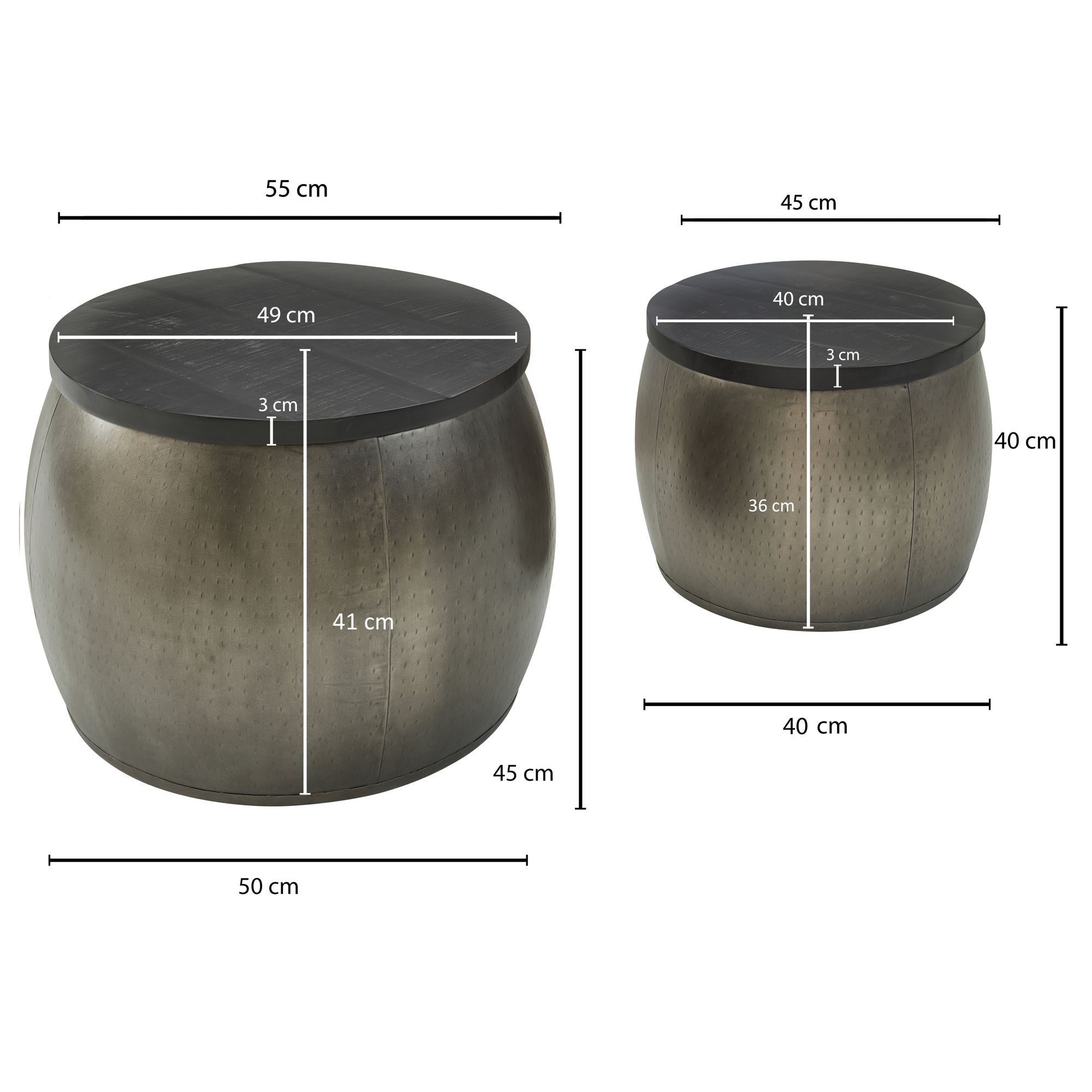 DIMENSIONS ✔ Grande table (Ø x H) : 55 x 45 cm // Table de taille moyenne (Ø x H): 45 x 40 cm // Vous trouverez plus de dimensions sur l'image correspondante..