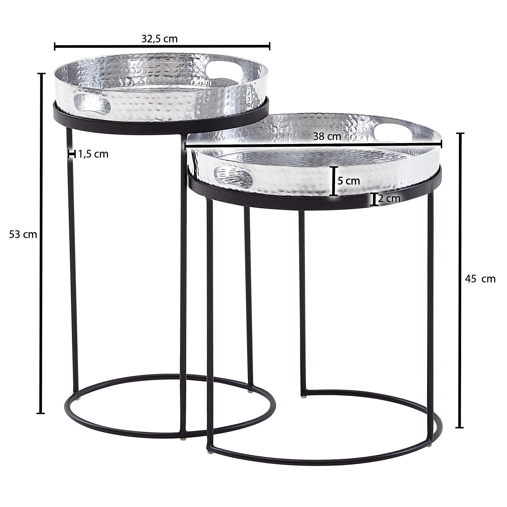 COMPOSITION ✔ Les plateaux amovibles sont en aluminium laqué ton argent. Les piètements sont en fer laqué.