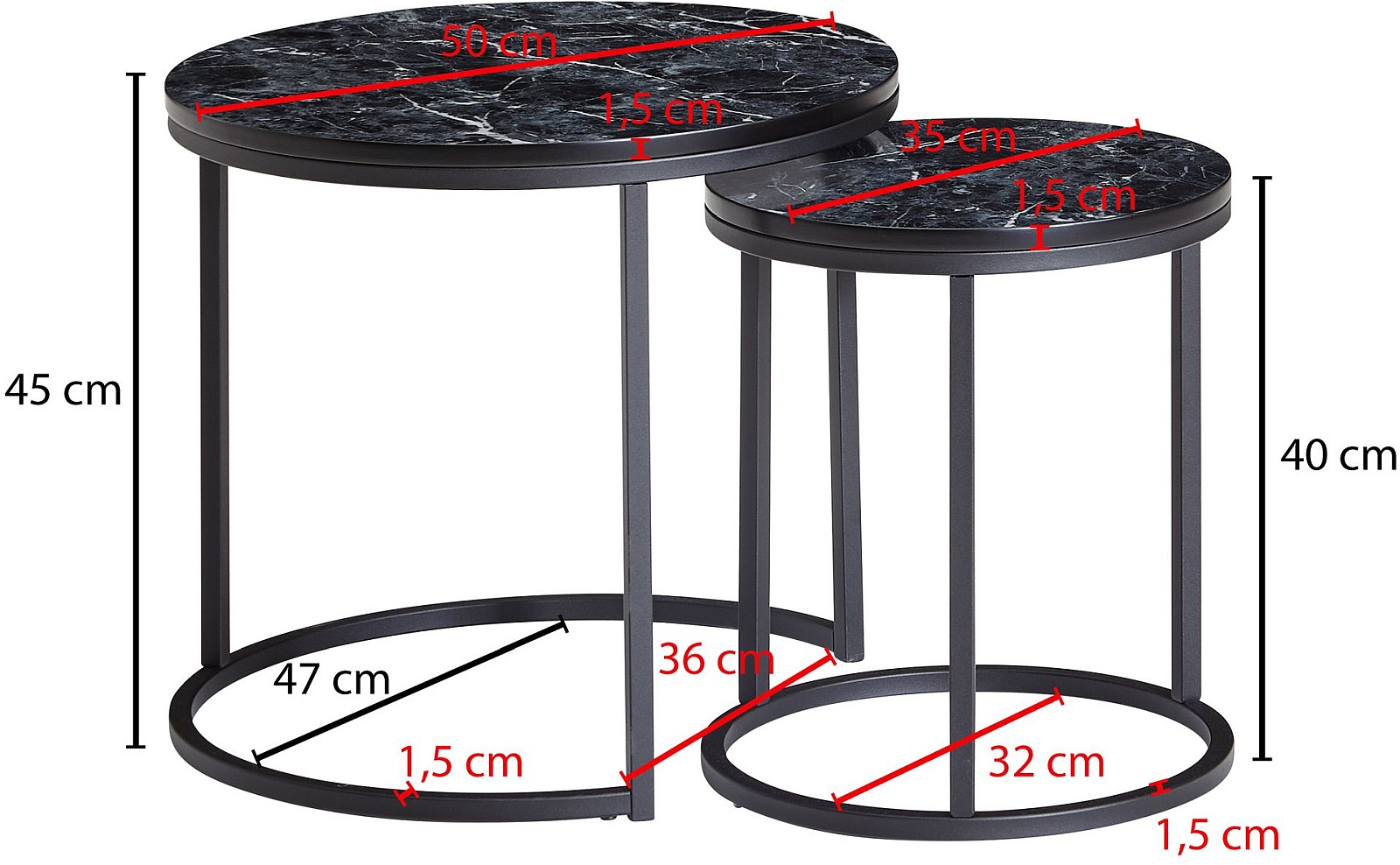 DIMENSIONS ✔ Grande table : Largeur : 50 cm, hauteur : 45 cm, profondeur : 50 cm, poids maxi : 5 kg // Petite table : Largeur : 35 cm, hauteur : 40 cm, profondeur : 35 cm, poids maxi : 3 kg.