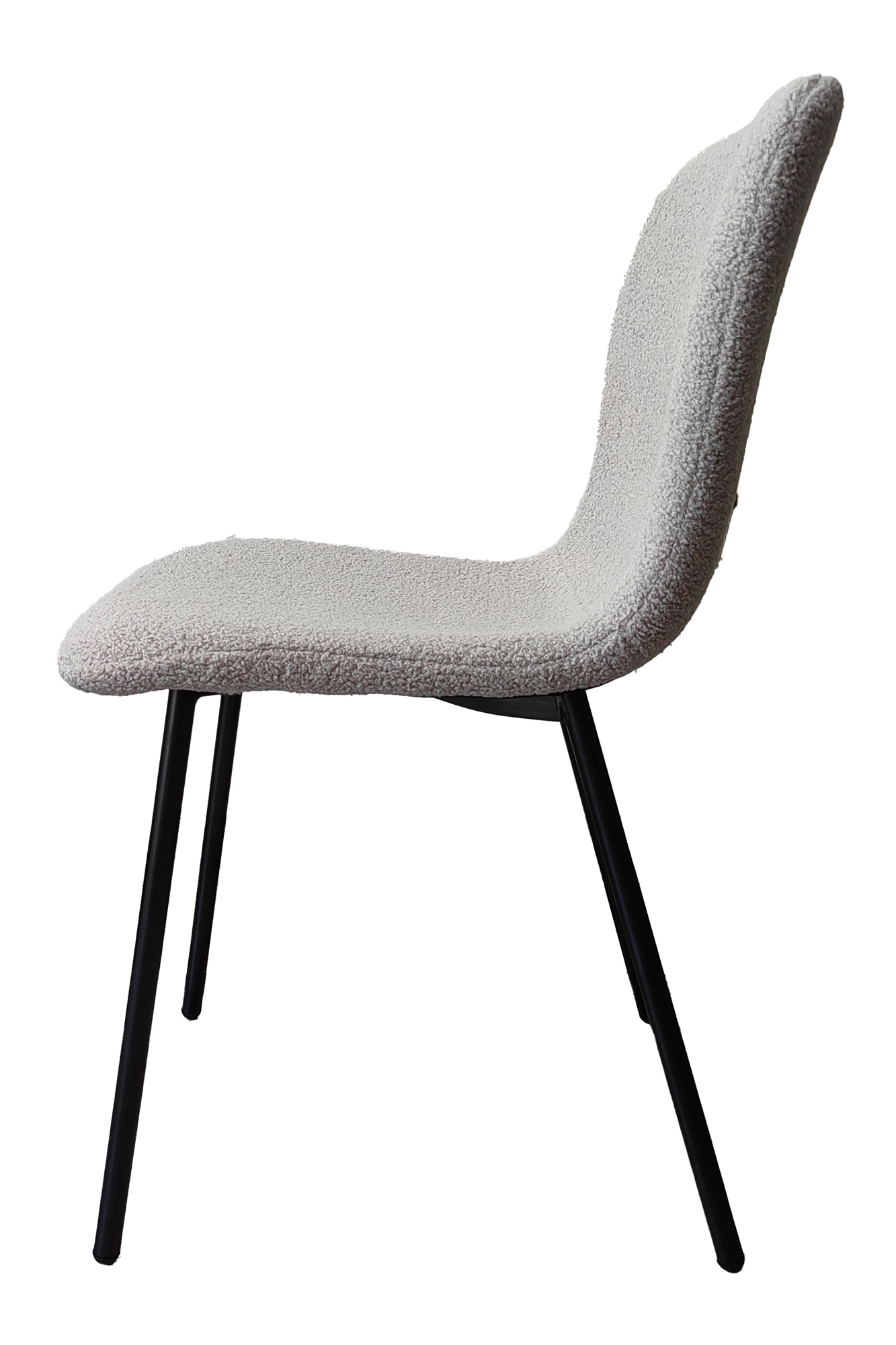 Un design sobre aspect scandinave à prix imbattable. Ce lot de 4 chaises séduit par sa forme minimaliste, ses lignes claires et son revêtement en tissu bouclette ultra tendance. Le tissu bouclette, qui a fait depuis longtemps son apparition dans nos salons et salles à manger, évoque chaleur et ambiance cosy. De plus, le tissu, dans son aspect laineux, incarne parfaitement l’essence du style scandinave si populaire. L’assise et le dossier de forme ergonomique garantissent un confort d’assise maximal. Le piètement 4 pieds en métal finition époxy assure une excellente stabilité sans possibilité de vaciller. Grâce à ce lot pratique de 4 chaises, vous disposerez de l’intégralité des sièges de votre salle à manger. La chaise est disponible dans des tons neutres tendance qui s’intègrent harmonieusement au mobilier existant et trouveront facilement leur place dans tout type d’intérieur.