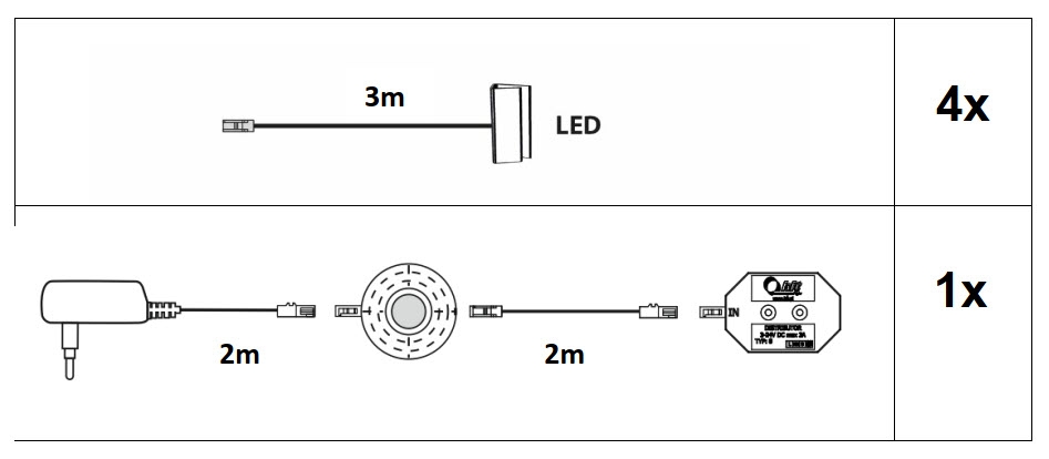 Lot de 4 éclairages pour tablettes en verre à clipser DURAME