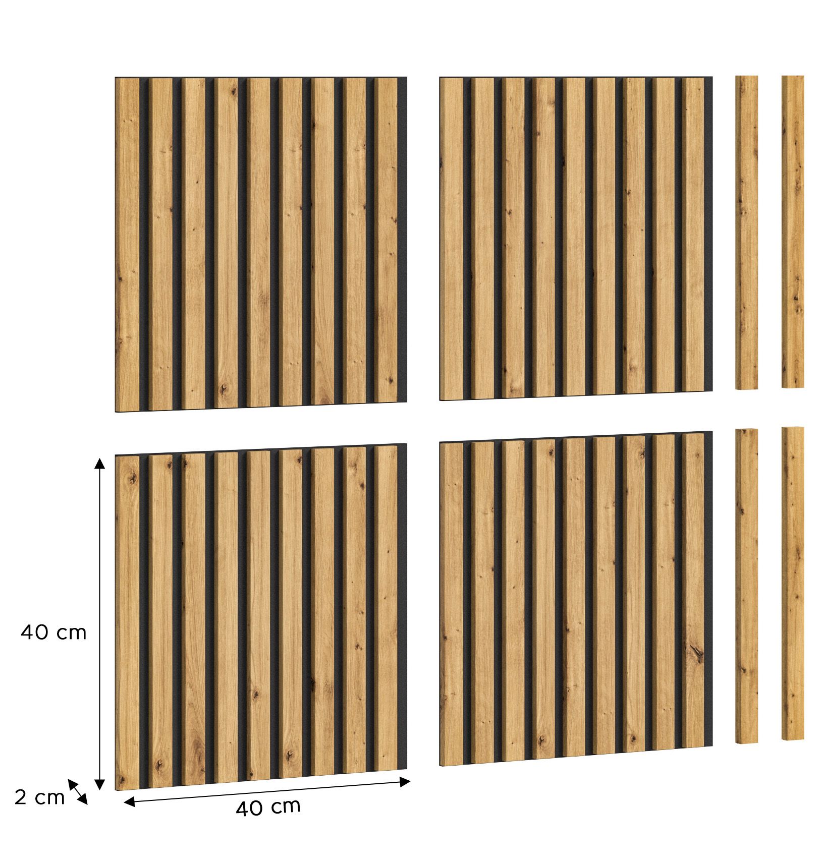 .• Design/style : l'ensemble de 4 panneaux acoustiques anthracite avec décor chêne Artisan arbore un design moderne et élégant. La combinaison de différentes couleurs et textures crée un effet visuel original qui s’intègre parfaitement dans divers espaces de vie.