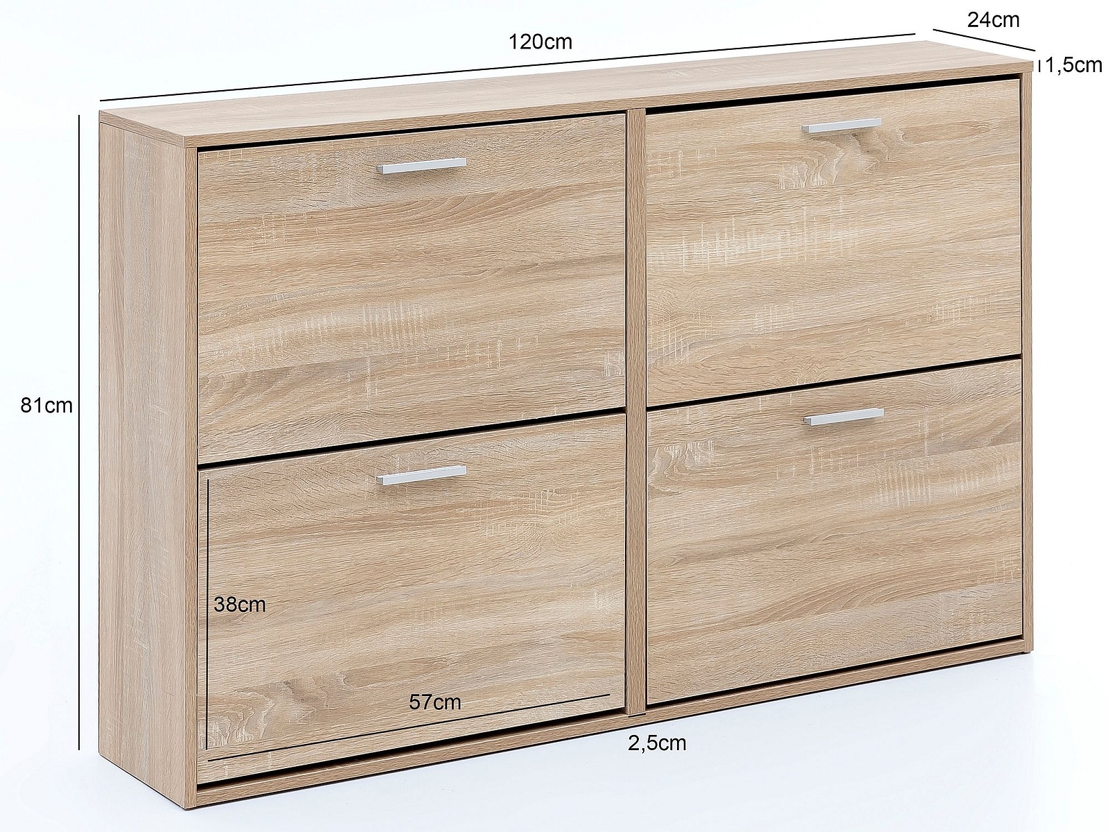 - ORDRE ET MÉTHODE ✔ Notre meuble à chaussures vous permettra d'embellir votre intérieur. Chaque paire de chaussures y trouvera sa place dans l'un des quatre abattants et ne traînera plus au sol. Posez sur le plateau spacieux un joli vase avec des fleurs, un vide-poches ou d'autres décorations et conférez à cette étagère en bois moderne une note personnalisée.