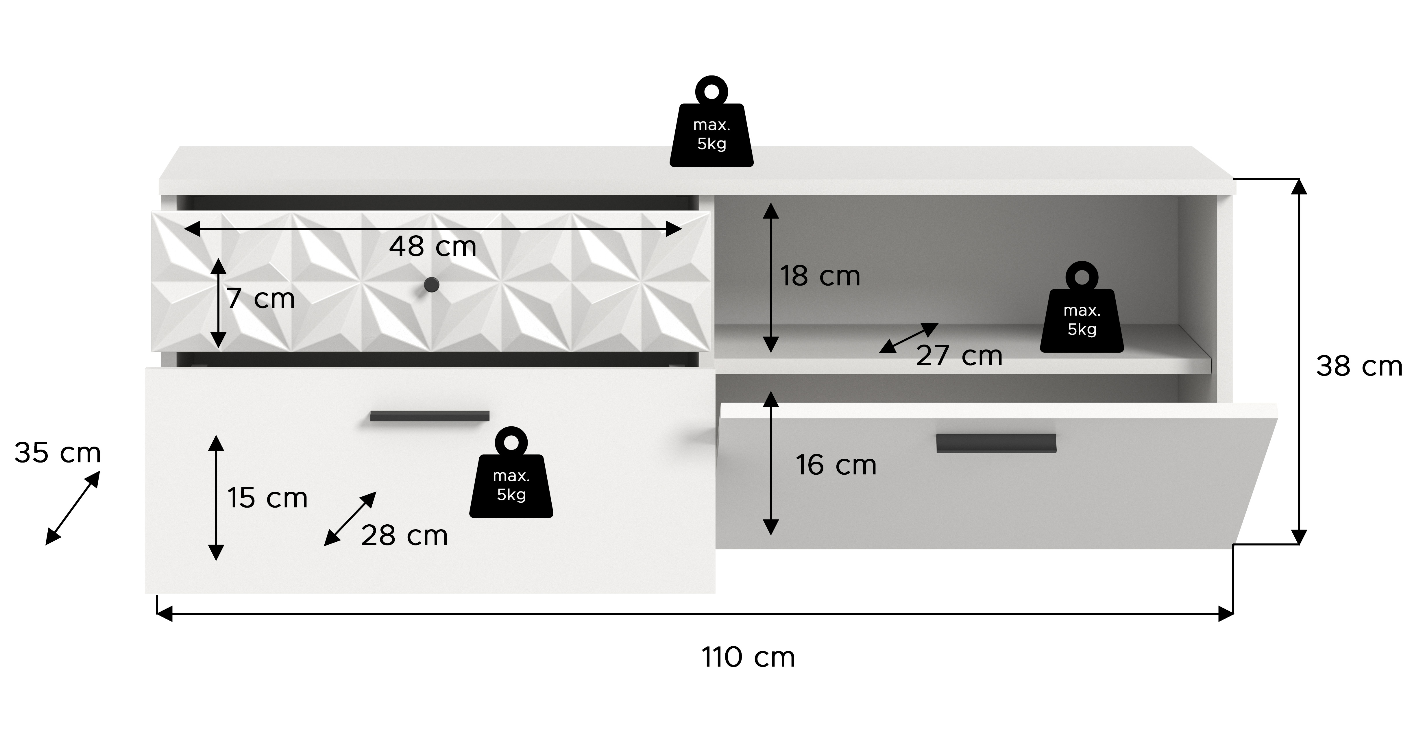 | Dimensions : | L/H/P env. 110/39/34 cm | ||