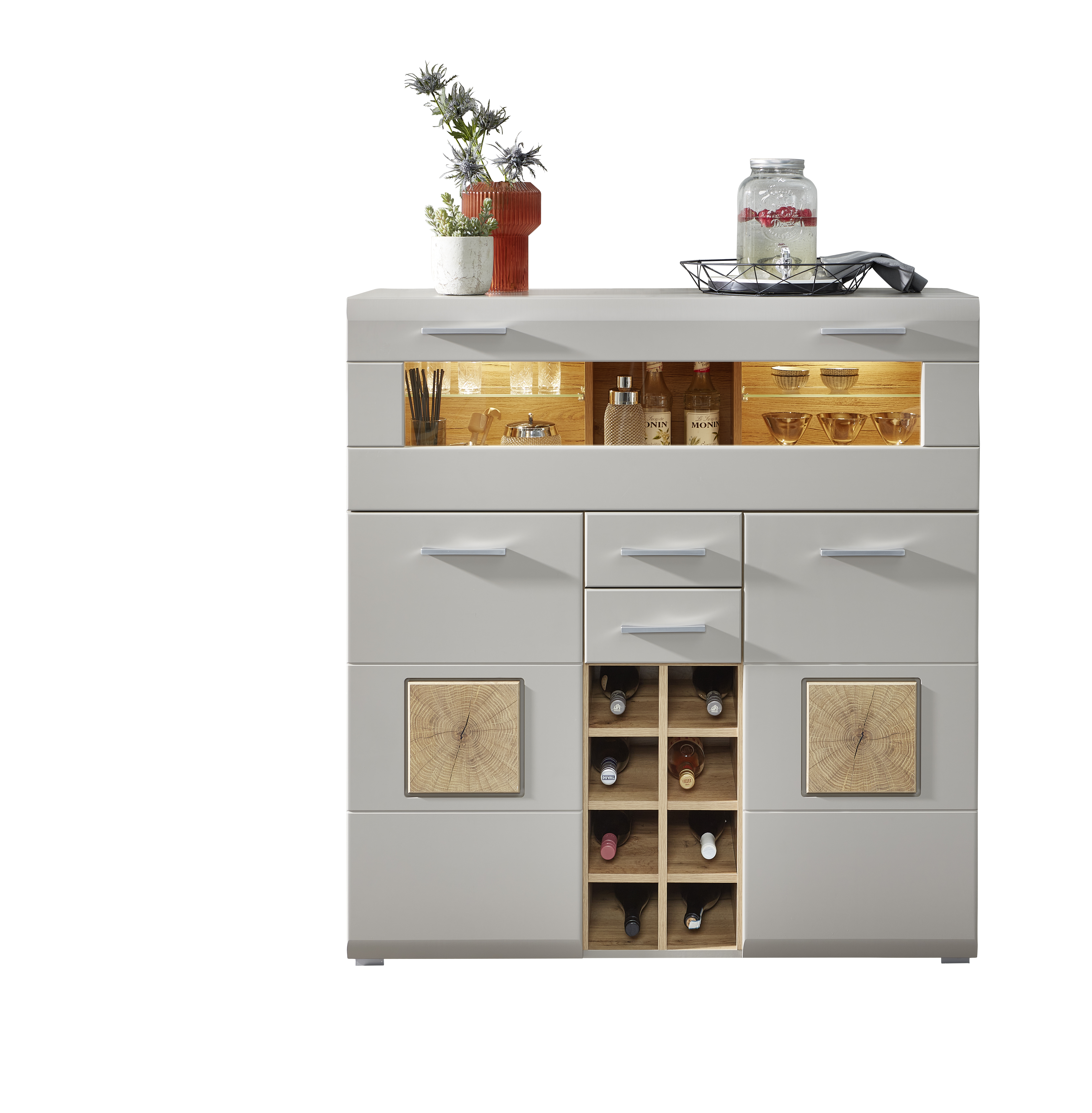 Ausstattung Kommoden Phono Büro Regal: | Abattant(s), Portes, Tiroirs, incl. éclairage |