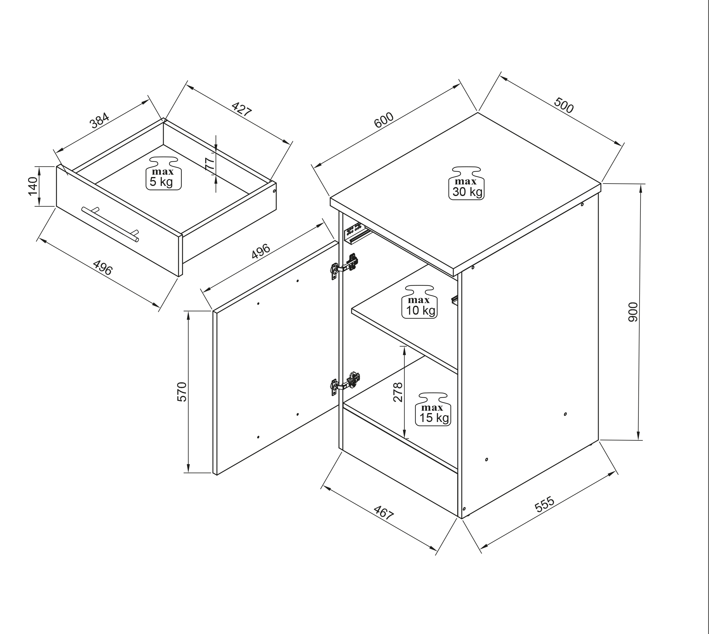 | Dimensions : | L/H/P env. 50/90/60 cm | ||