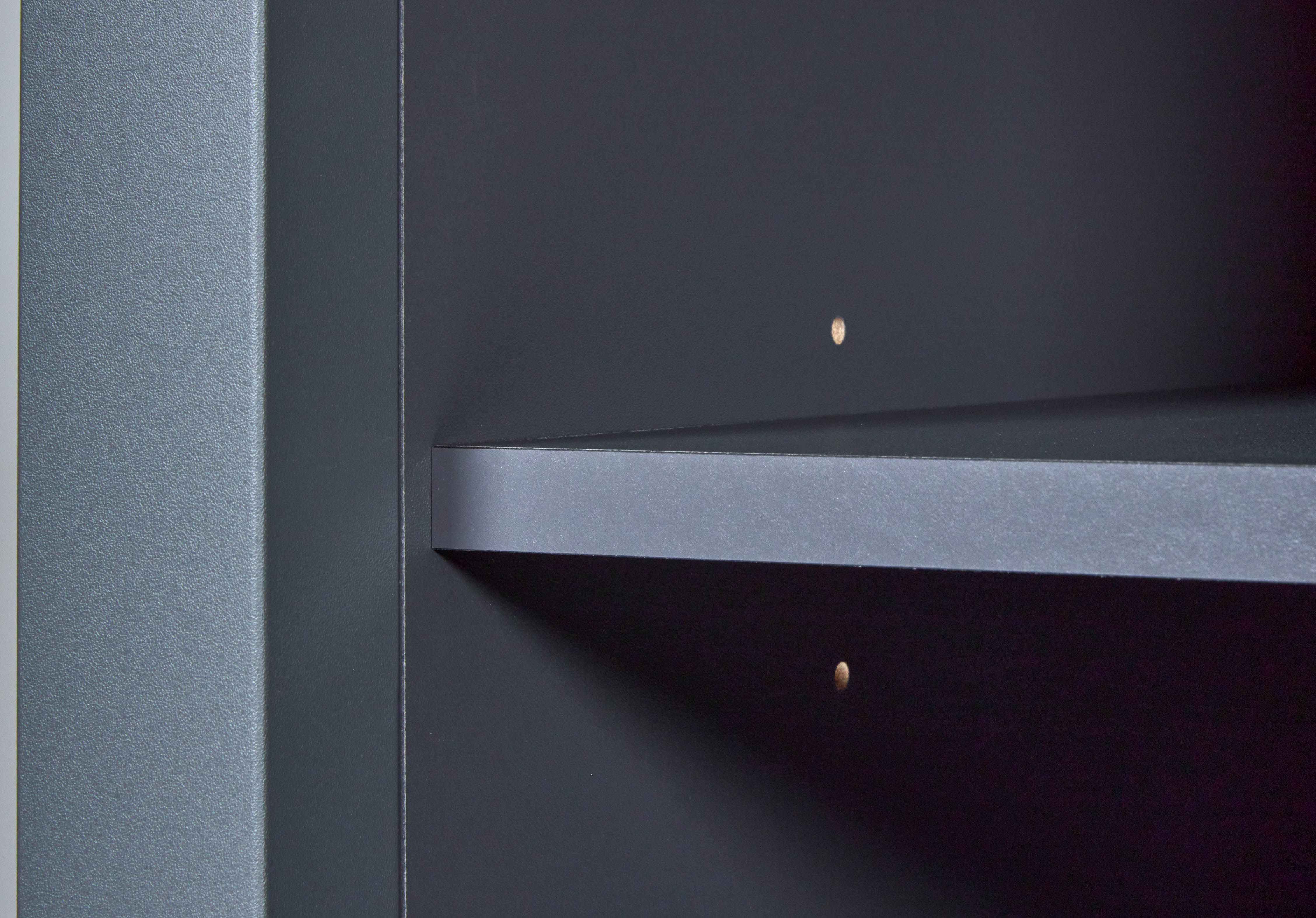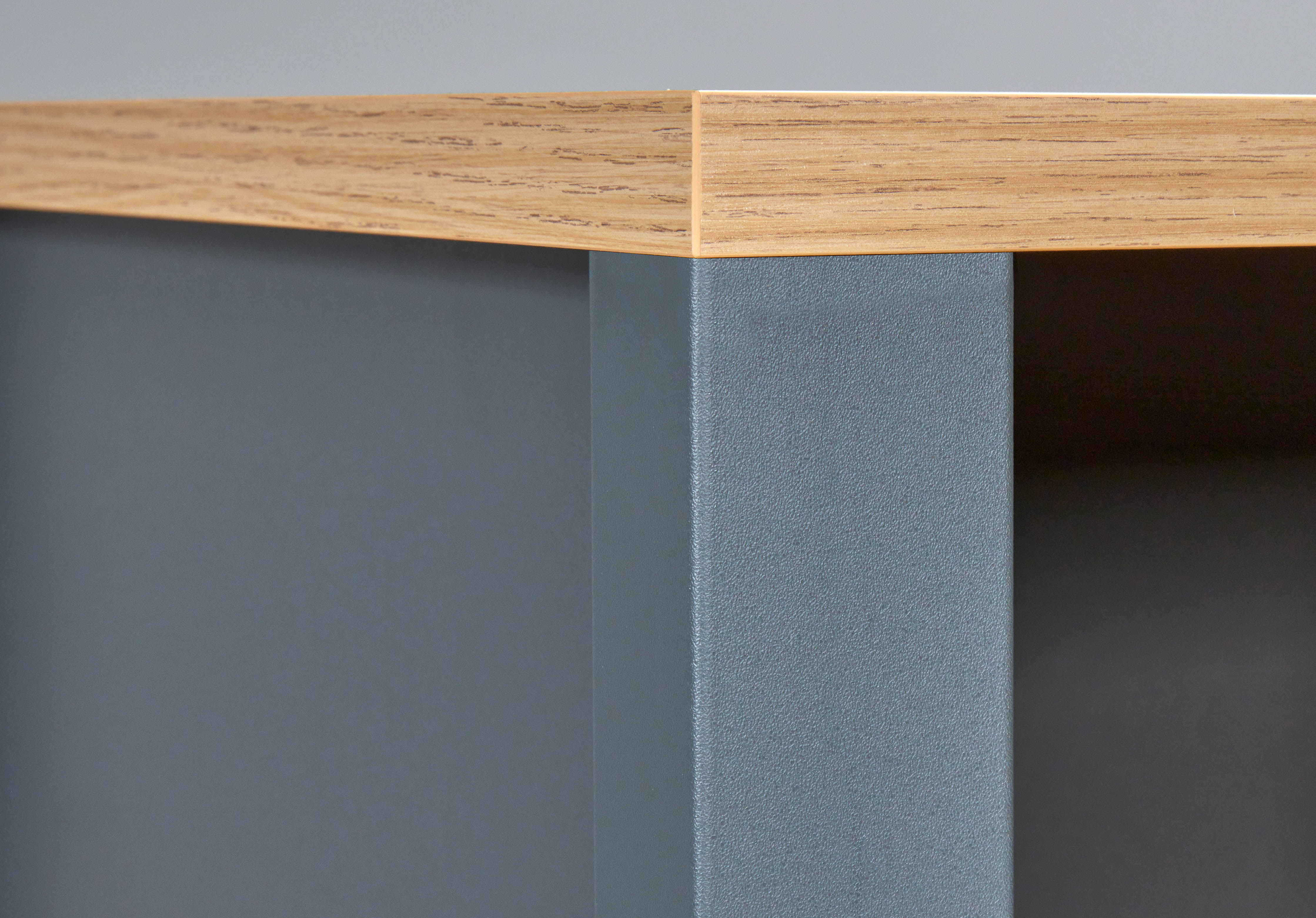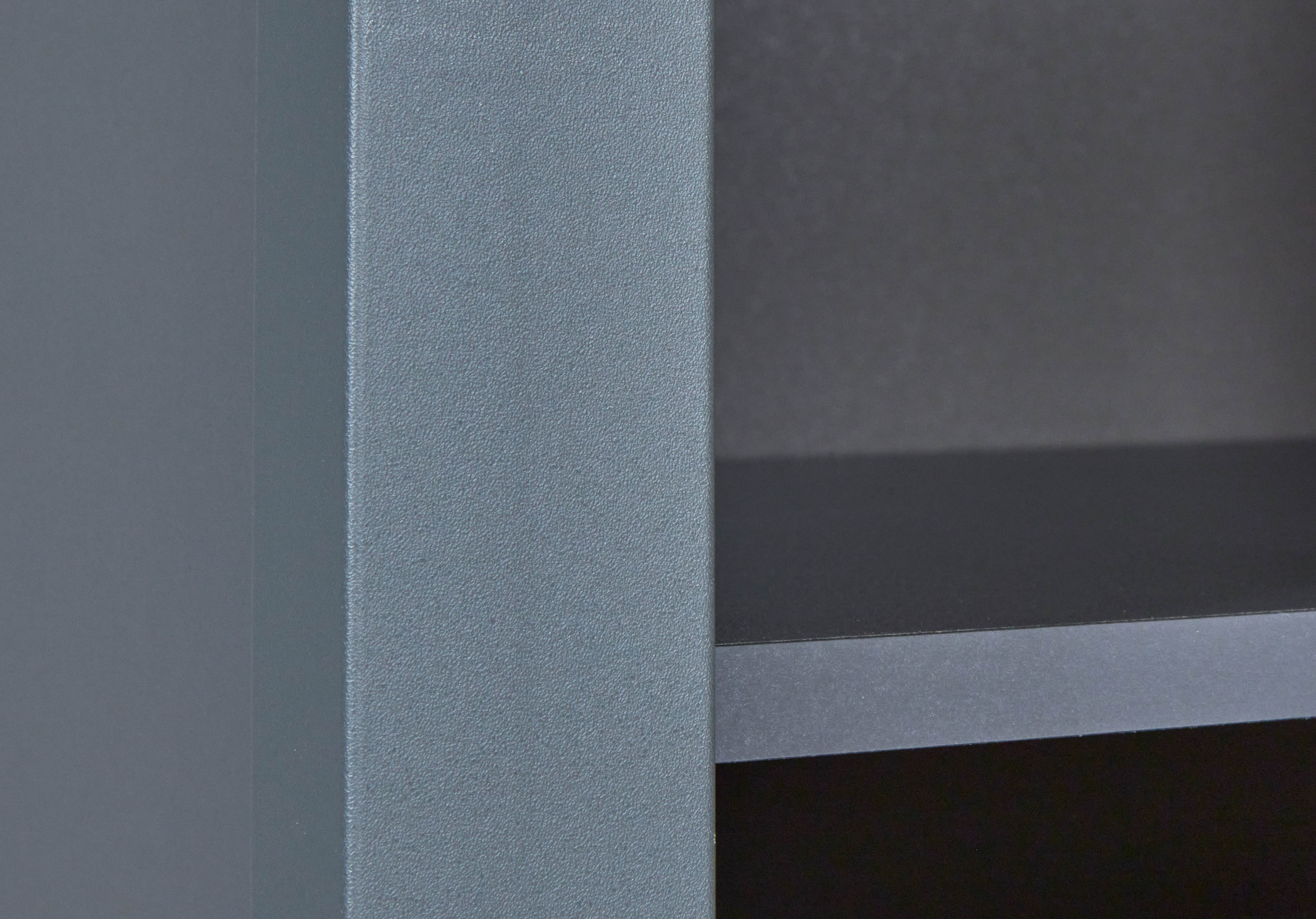 Façade et caisson : panneaux de particules MDF (panneau de fibres de bois de densité moyenne) ton anthracite