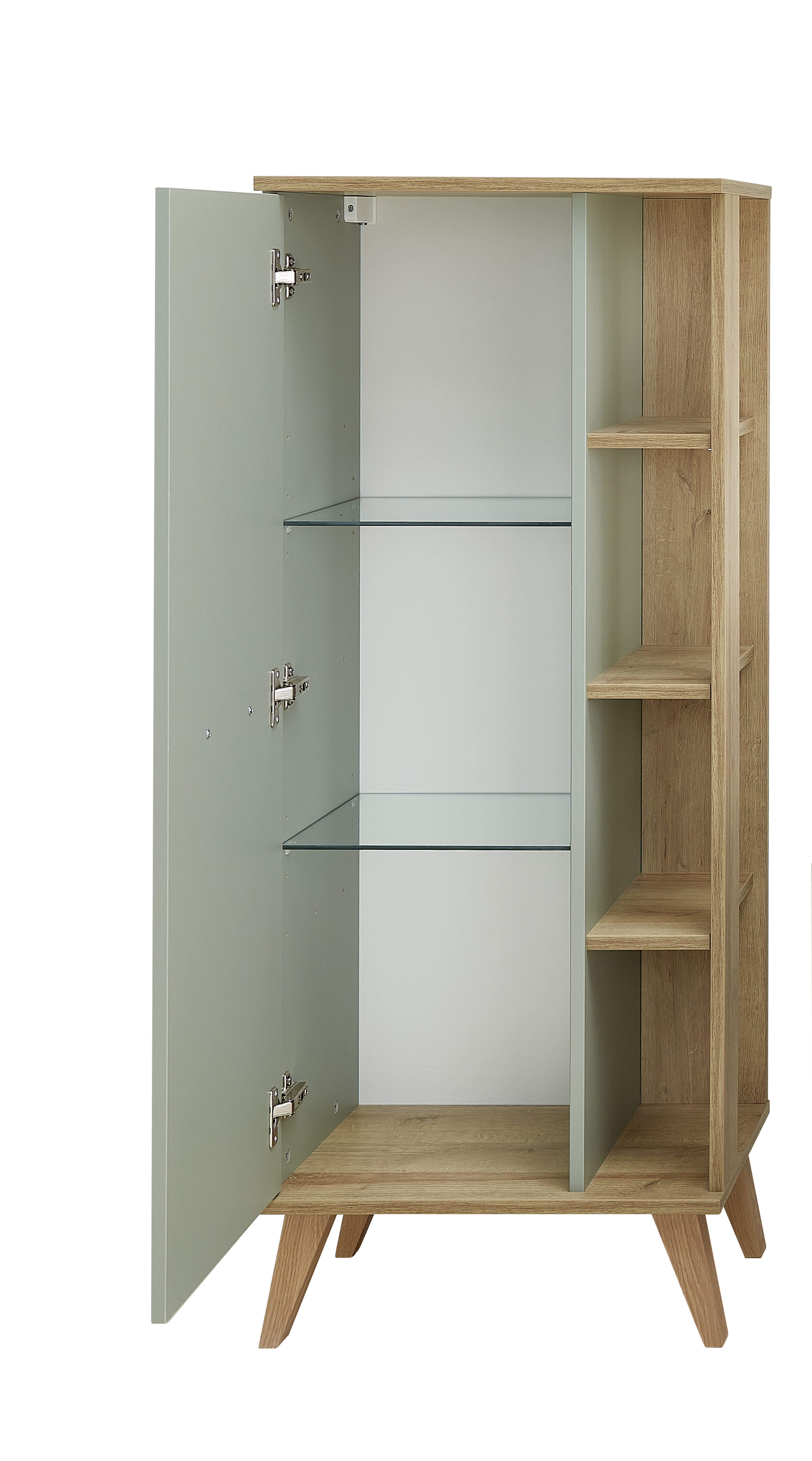 1 porte battante avec, derrière elle, 2 tablettes en verre