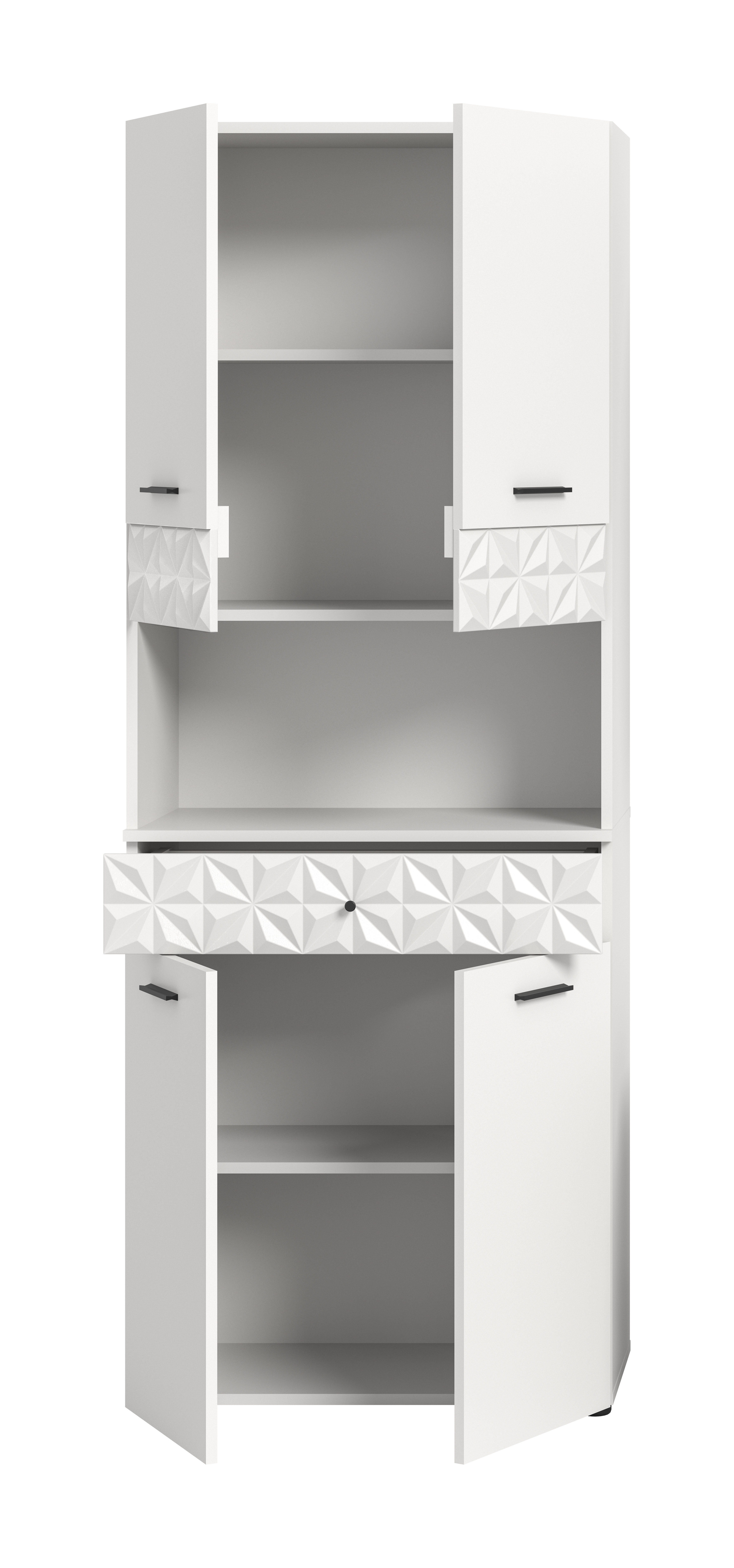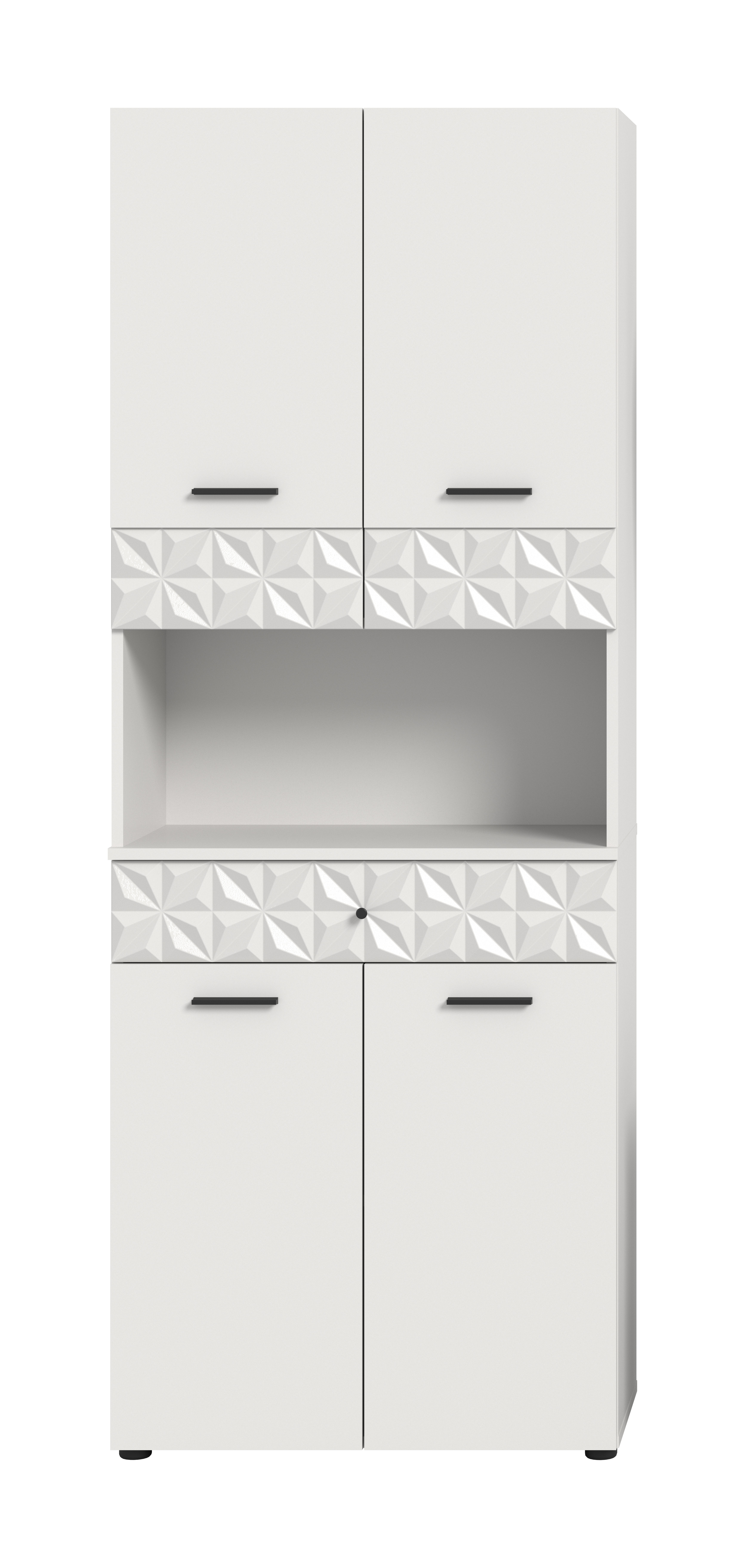 • Design/style : la façade blanche moderne s’harmonise parfaitement avec les poignées en métal noir qui créent un contraste élégant et un design raffiné.
