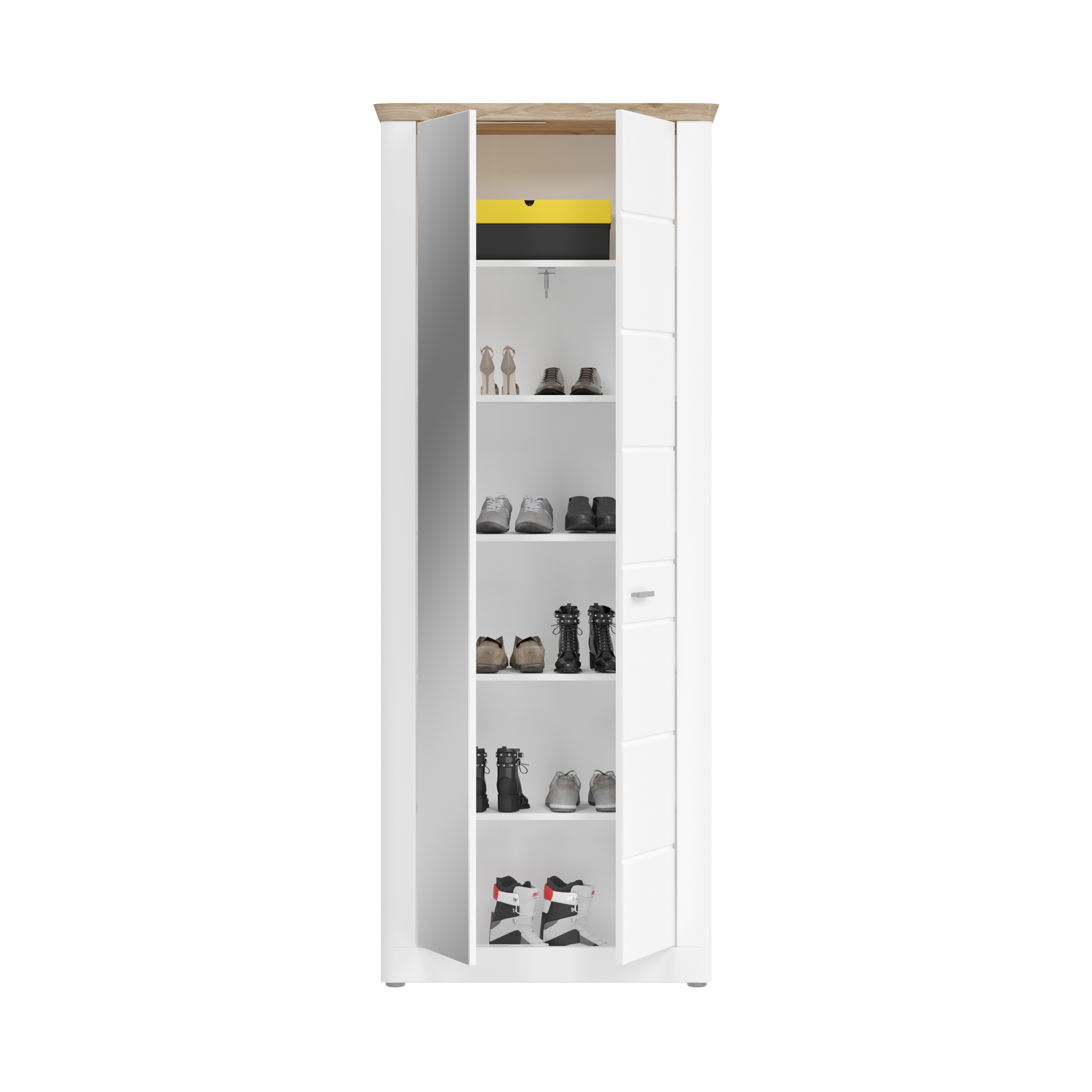 - Fonctionnalité : l’armoire d’entrée offre un espace de rangement spacieux pour stocker vos vêtements, vestes, chaussures et autres accessoires ; elle offre également une surface appréciable pour poser des objets. Grâce à sa forme compacte et ses nombreuses possibilités de rangement, elle contribue à maintenir votre entrée bien organisée.