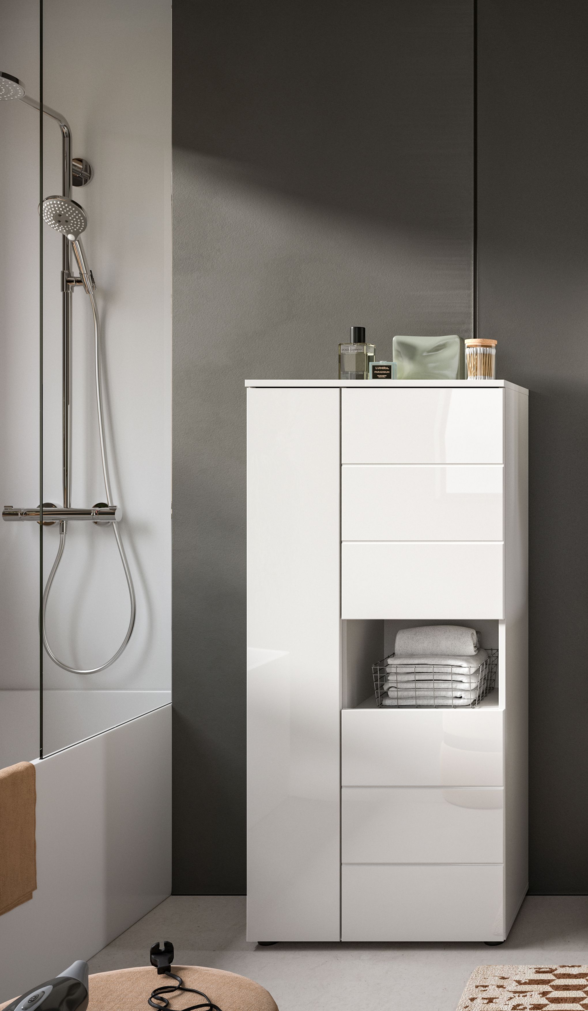 Le meuble demi-colonne (L/H/P: 60x131x34 cm) dans une finition thermoformée ton blanc ultra brillant est le choix idéal pour votre ameublement de salle de bains. Il offre suffisamment d’espace de rangement pour les serviettes, produits de beauté et autres accessoires de bain, tandis que la surface lisse crée un look tendance. Le meuble demi- colonne s’intègre facilement dans tout type d’aménagement de salle de bains et garantit une ambiance organisée et rangée.