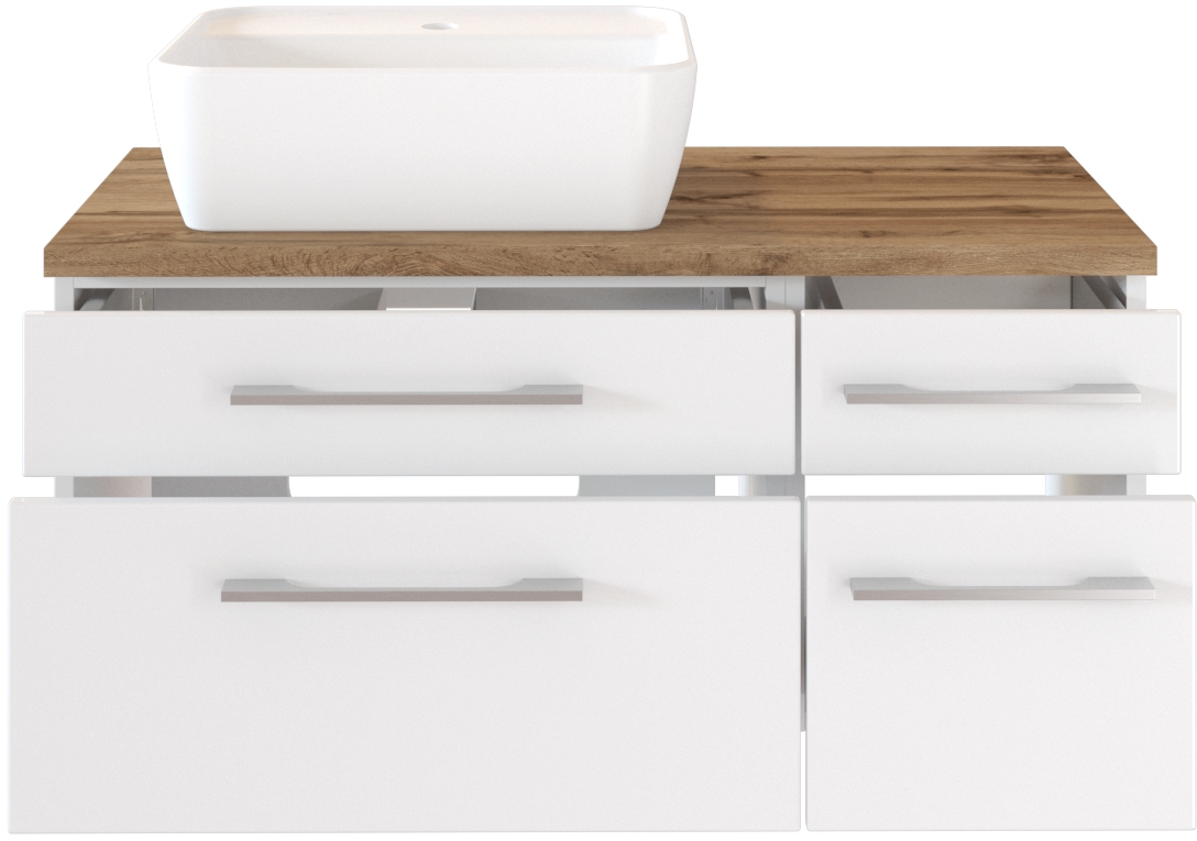 1 meuble sous vasque avec 2 tiroirs bas et 2 tiroirs hauts avec fermeture amortie, incl. découpe siphon
