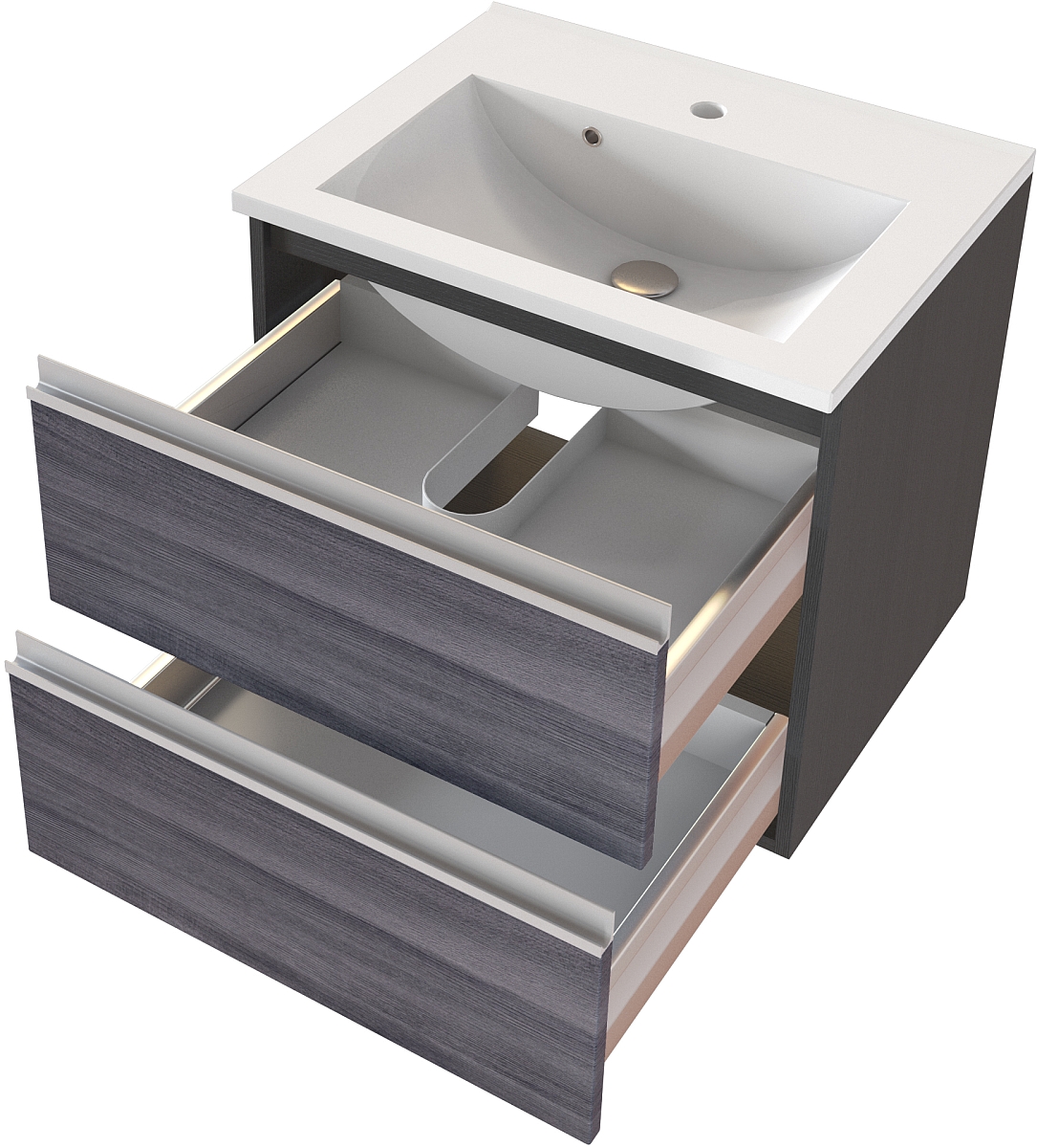 1 meuble sous vasque avec 2 tiroirs sur rails métalliques à fermeture amortie