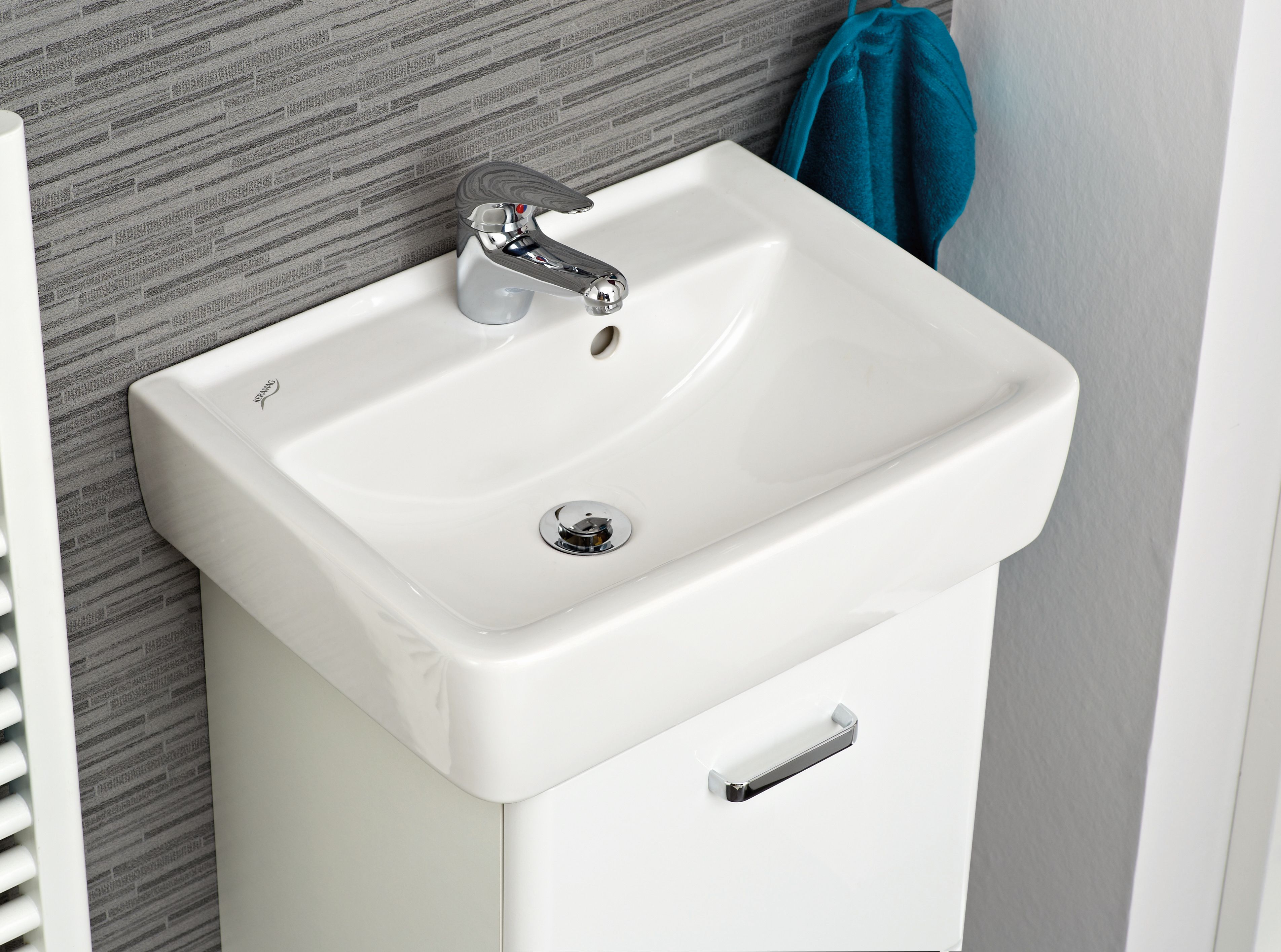 Sans articles de décoration, ni robinetterie. Attention : L'image présente un modèle légèrement moins large (45 cm au lieu de 55 cm).