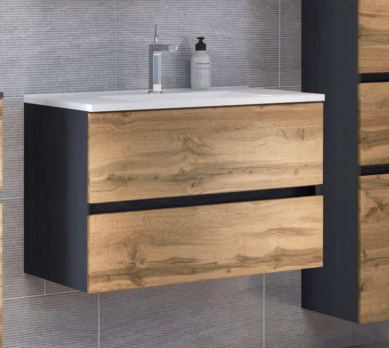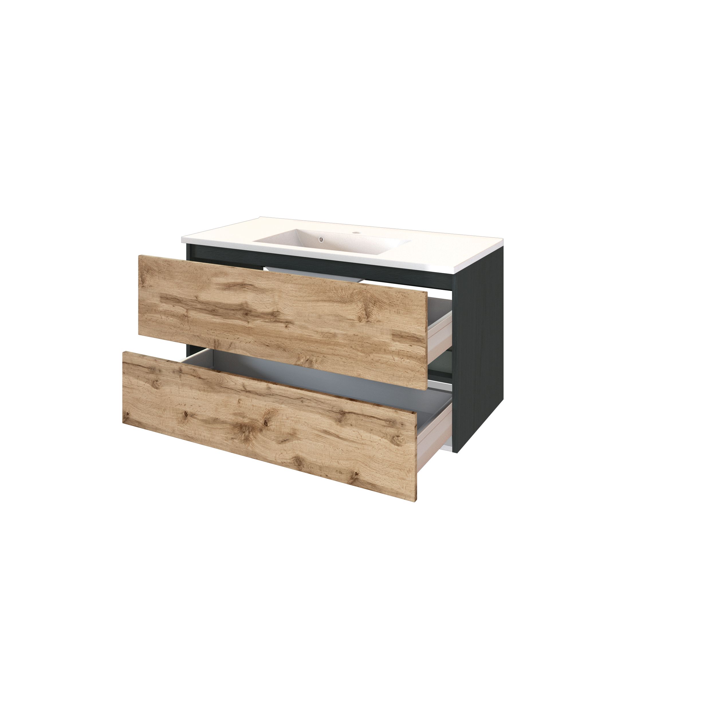 1 meuble sous vasque avec 2 tiroirs en métal avec fermeture amortie, sans poignées