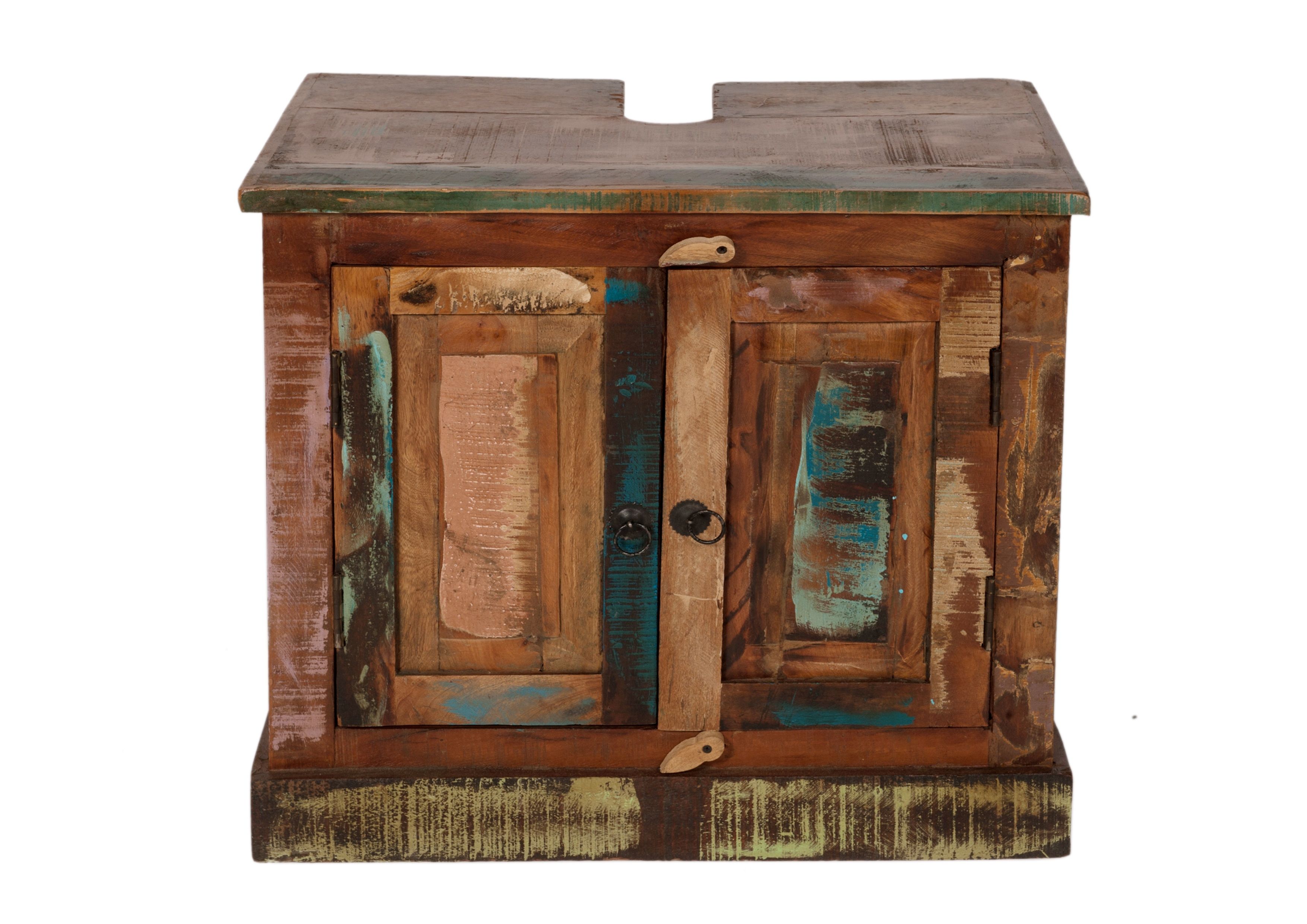 Vieux bois véritable massif (Inde), laqué ton multicolore