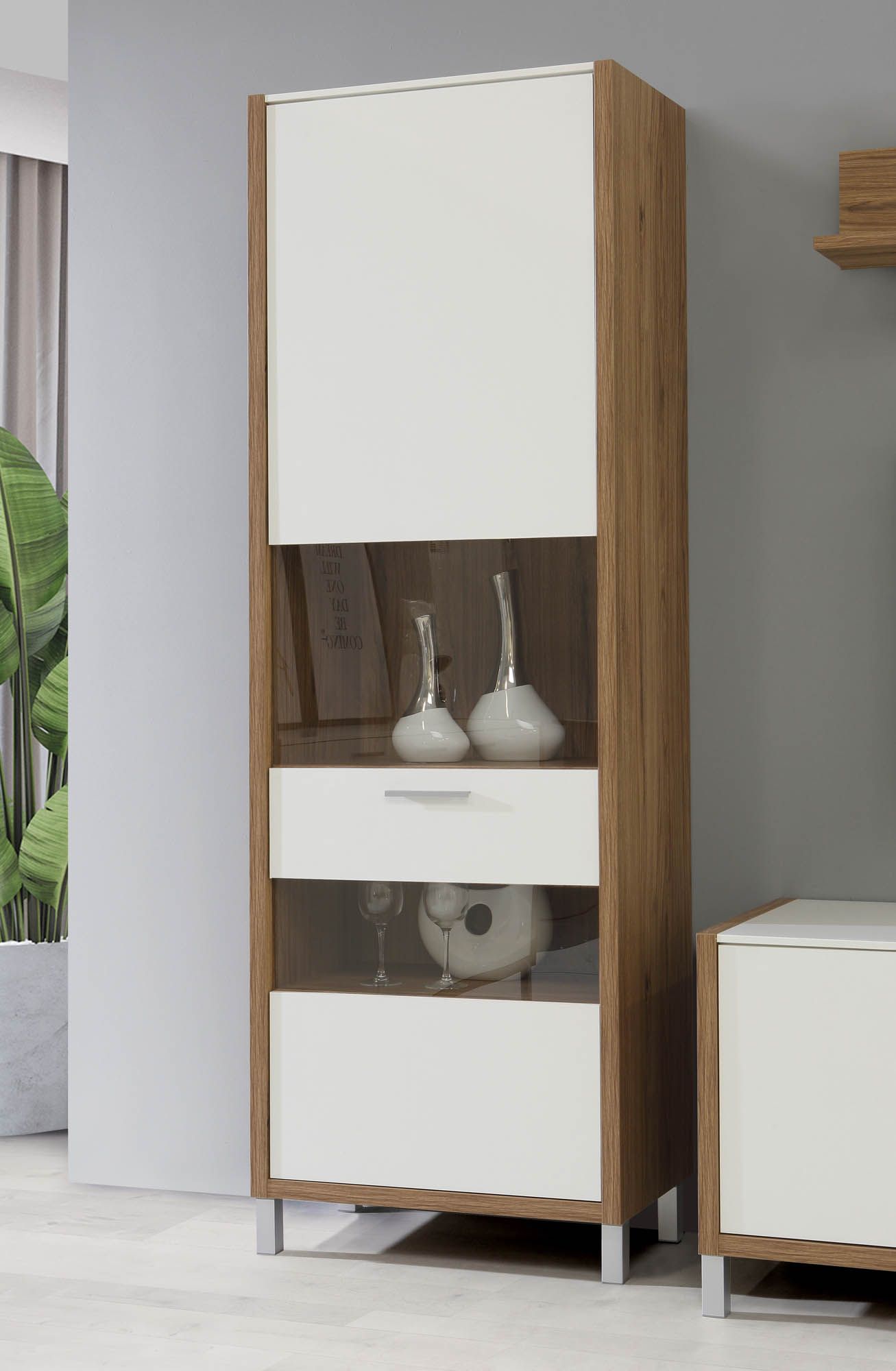 Façade et caisson : ton blanc et décor chêne Catania / verre