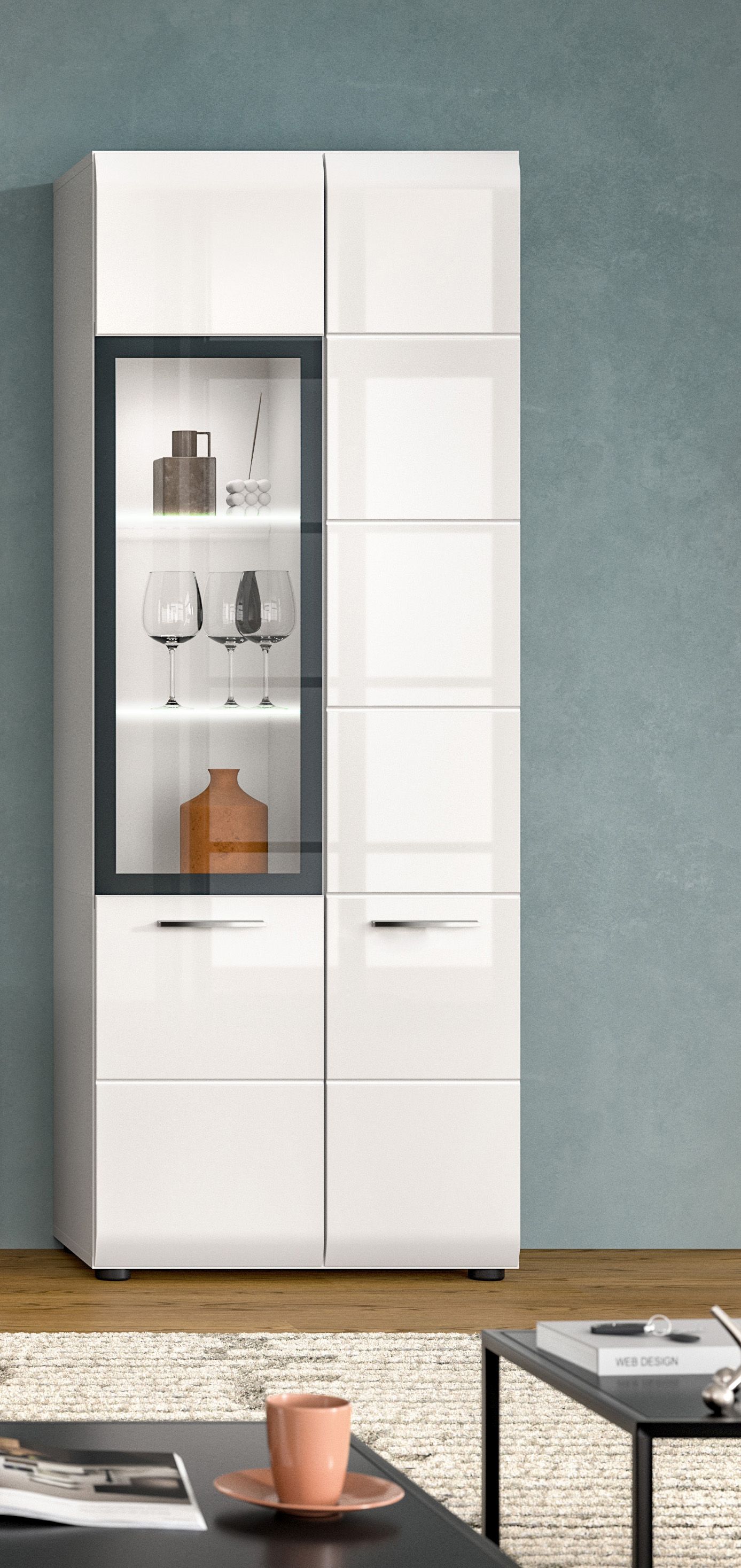 Découvrez notre vitrine polyvalente alliant style et fonctionnalité ! Cette vitrine dispose d’une porte, d’une porte vitrée et de nombreuses possibilités de rangement grâce à quatre tablettes amovibles et réglables en hauteur, deux tablettes fixes et deux tablettes en verre. Avec ses dix compartiments et ses dimensions compactes (60 x 160 x 34 cm), elle est idéale pour tous les intérieurs. La façade en MDF avec finition rainurée confère à la vitrine un look tendance.