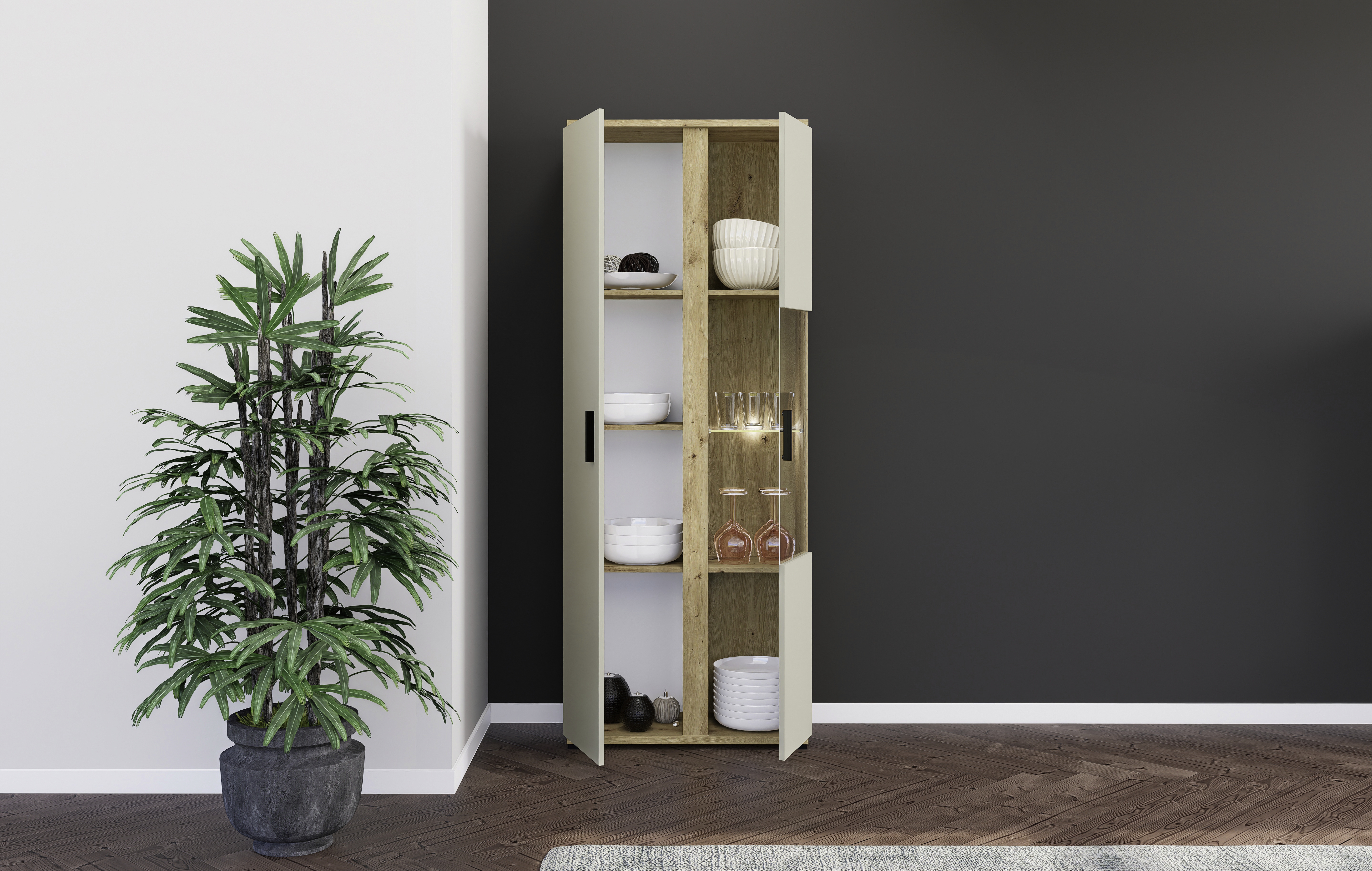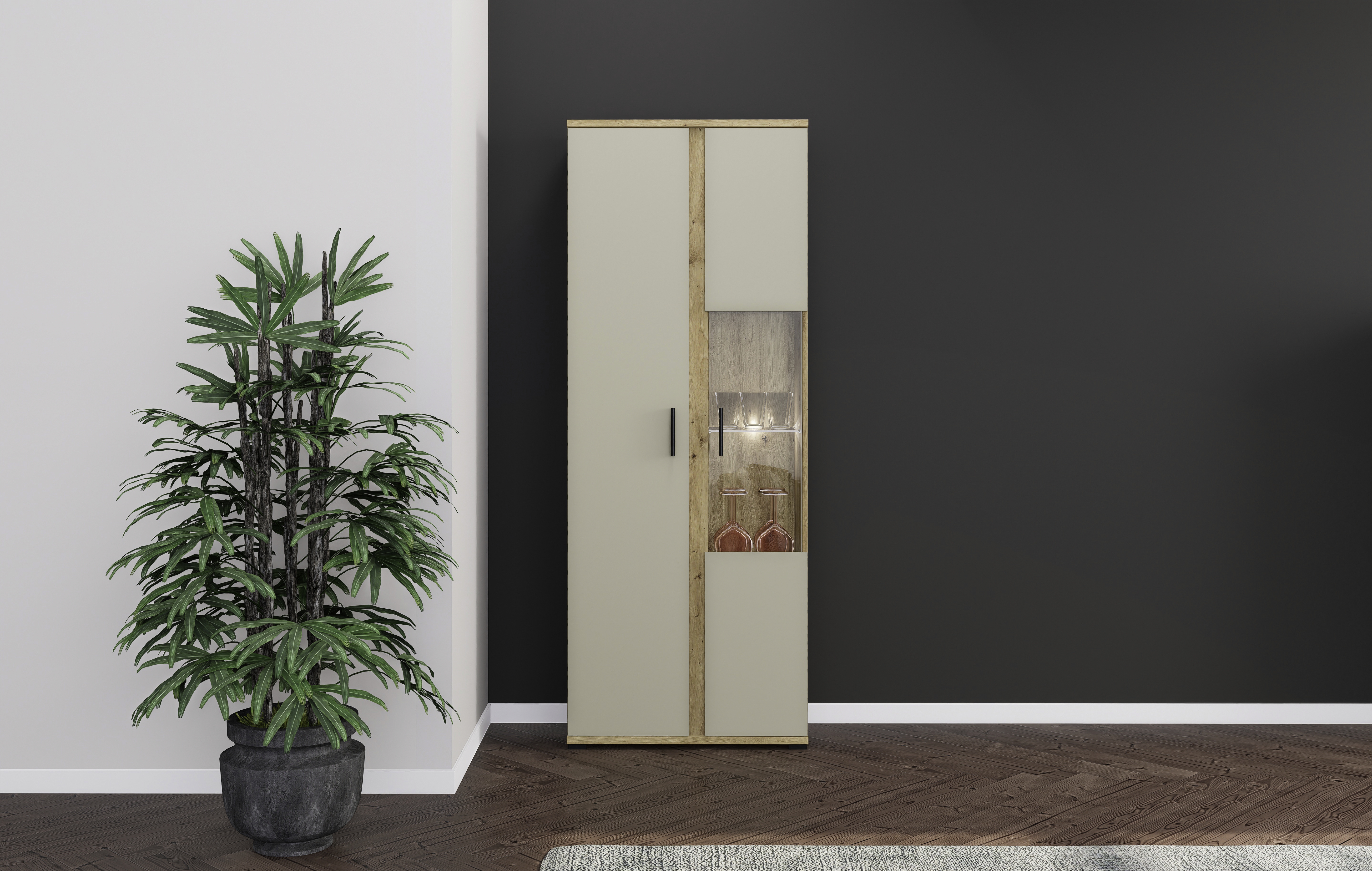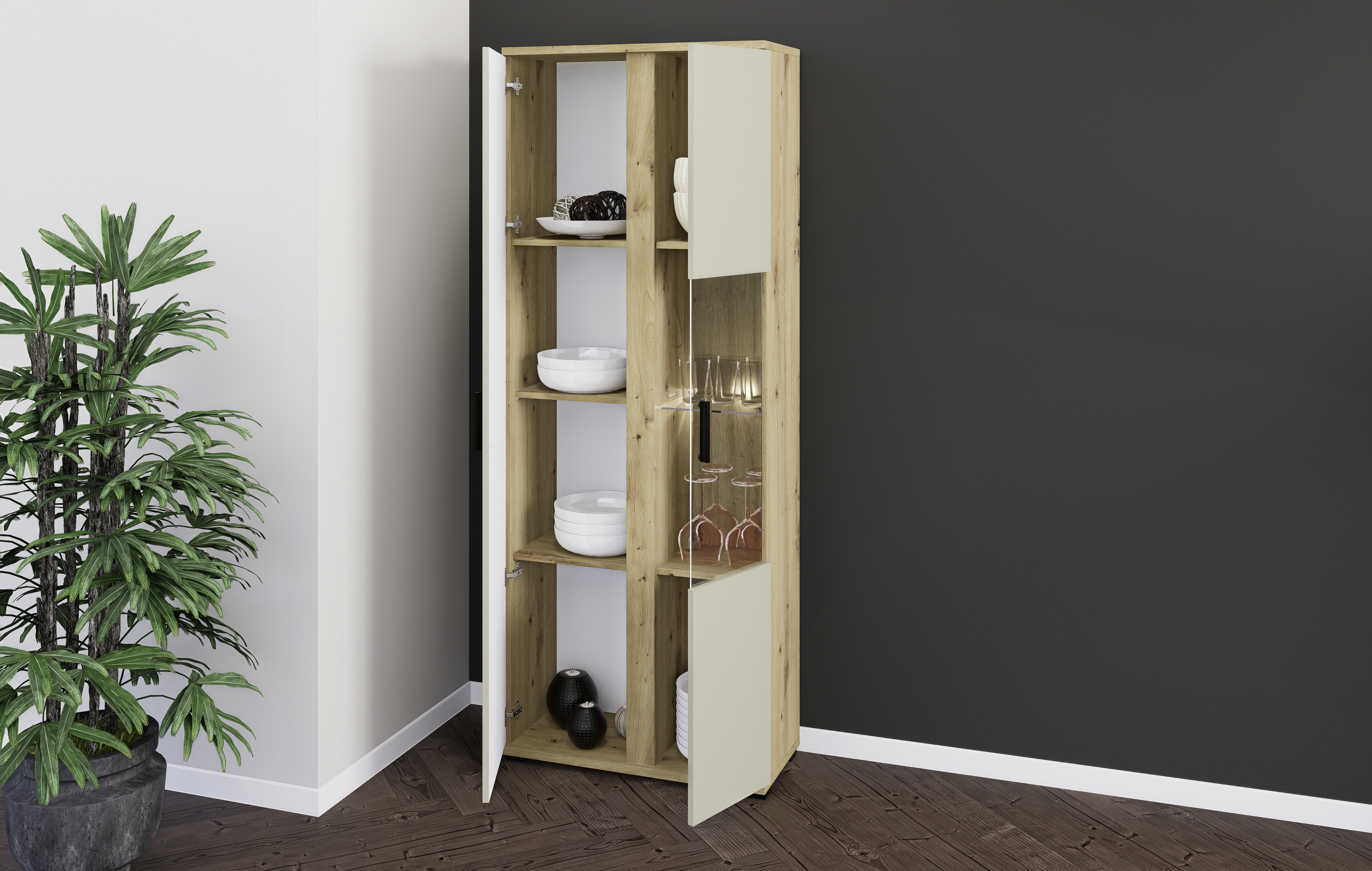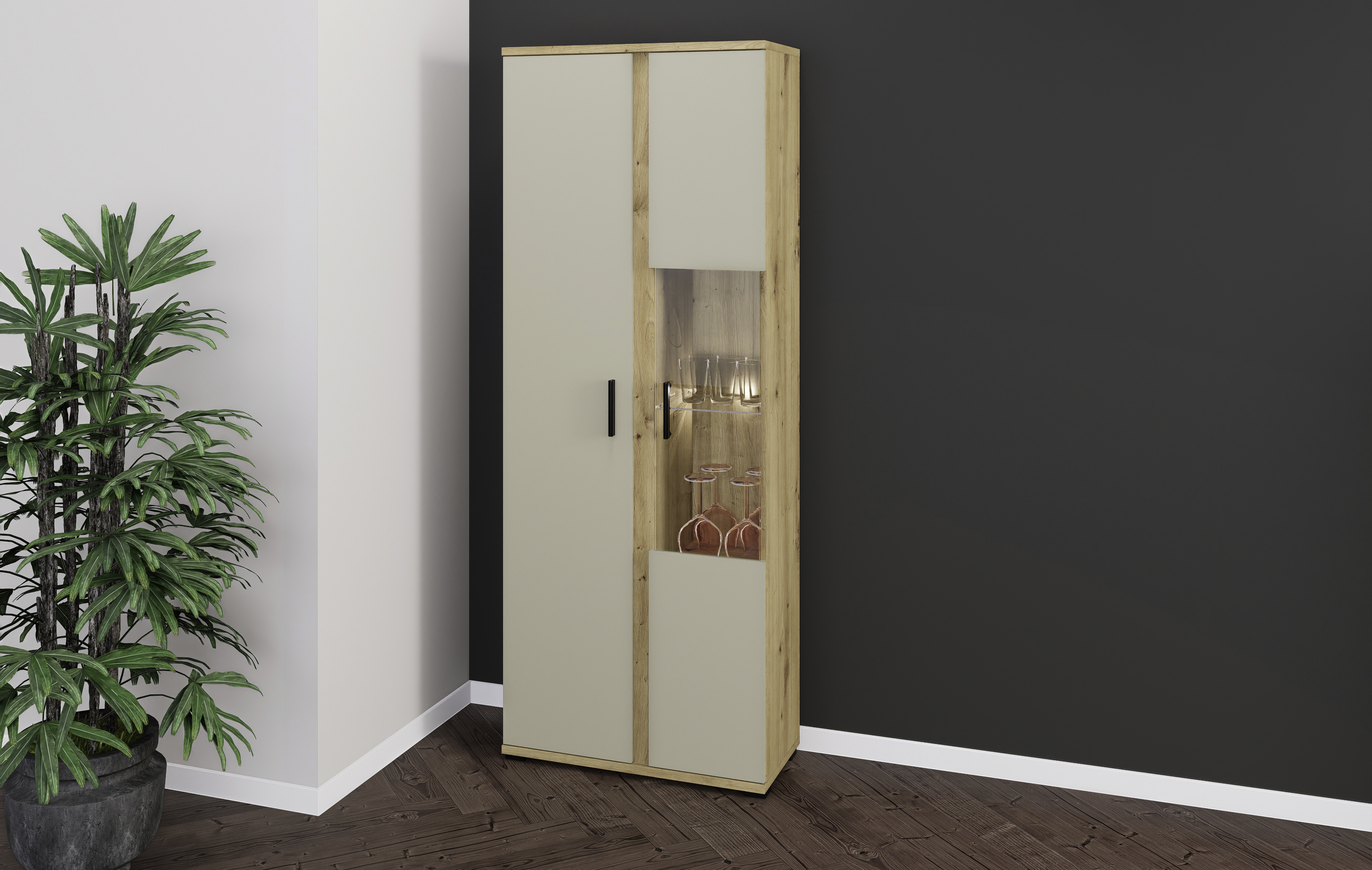 Façade : cachemire avec contrastes décor chêne Artisan, panneau de particules surfacé et mélaminé (PPSM) / verre