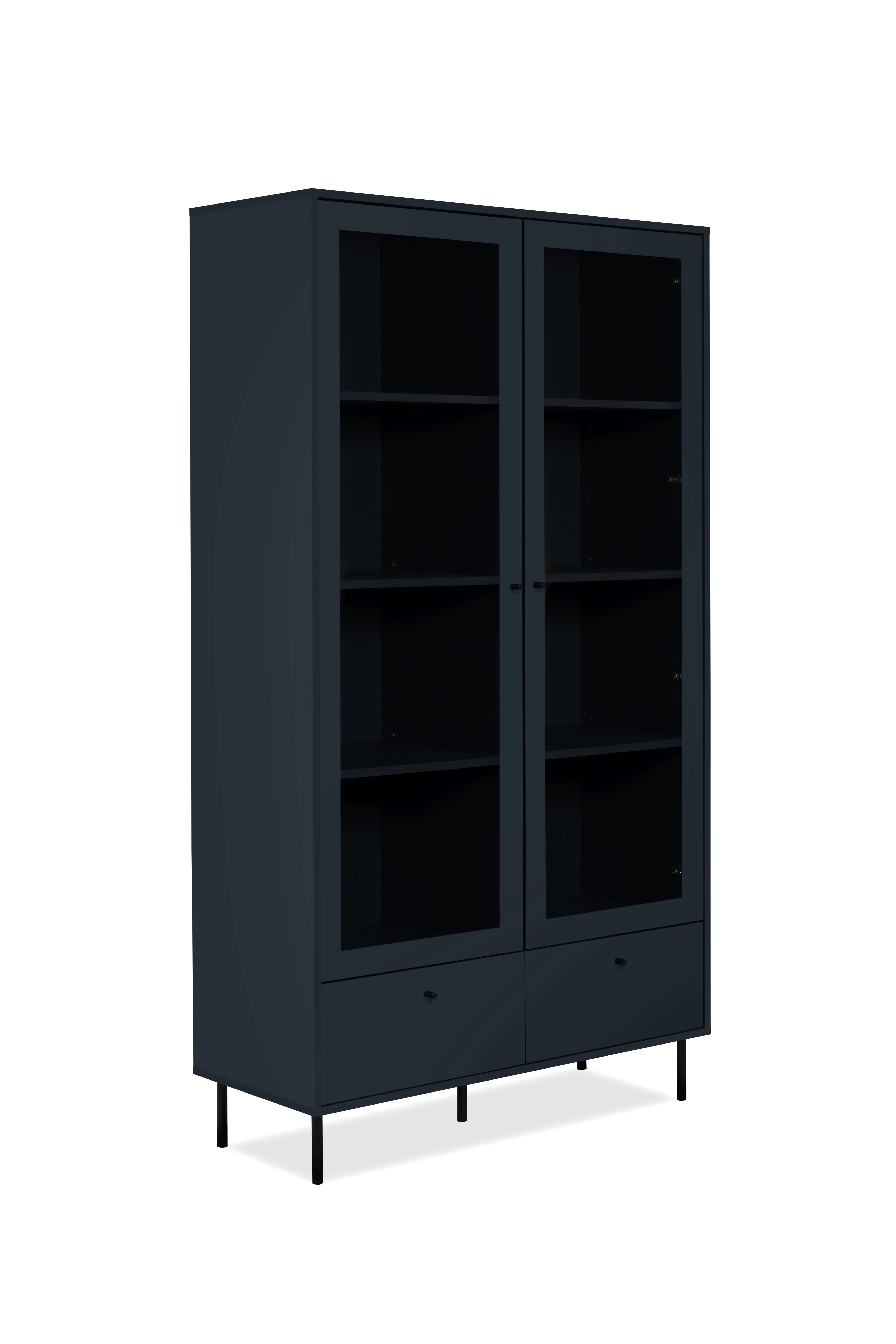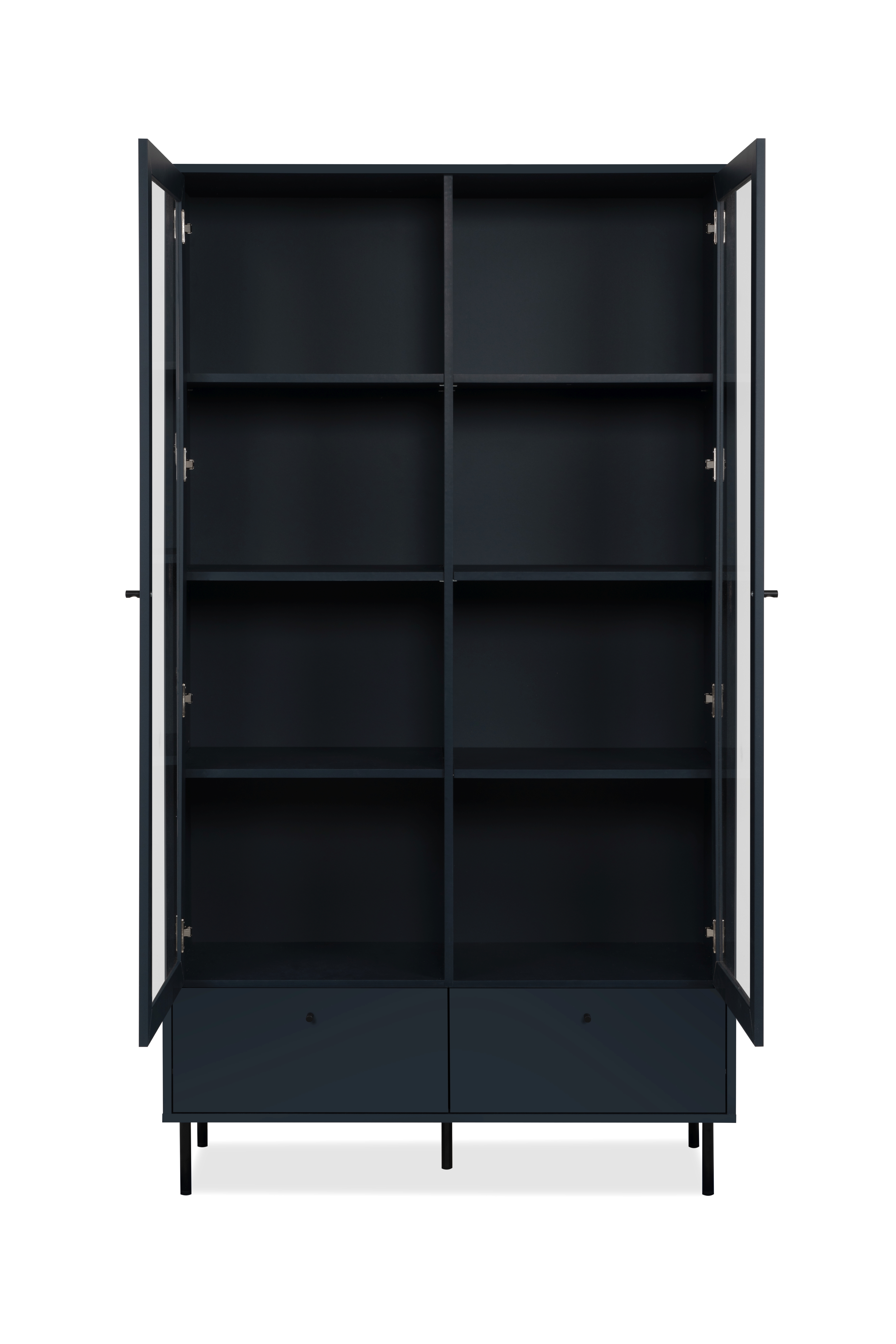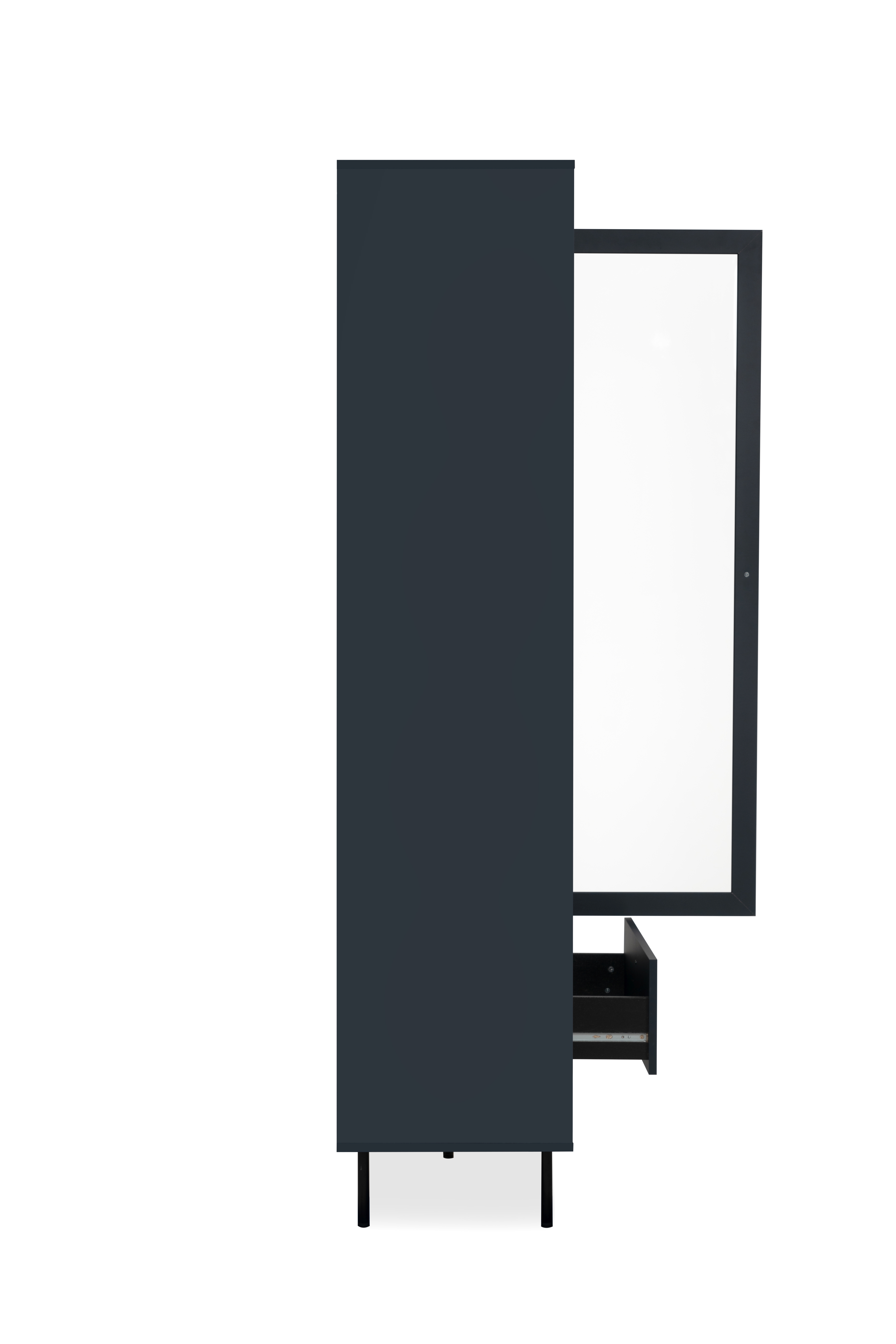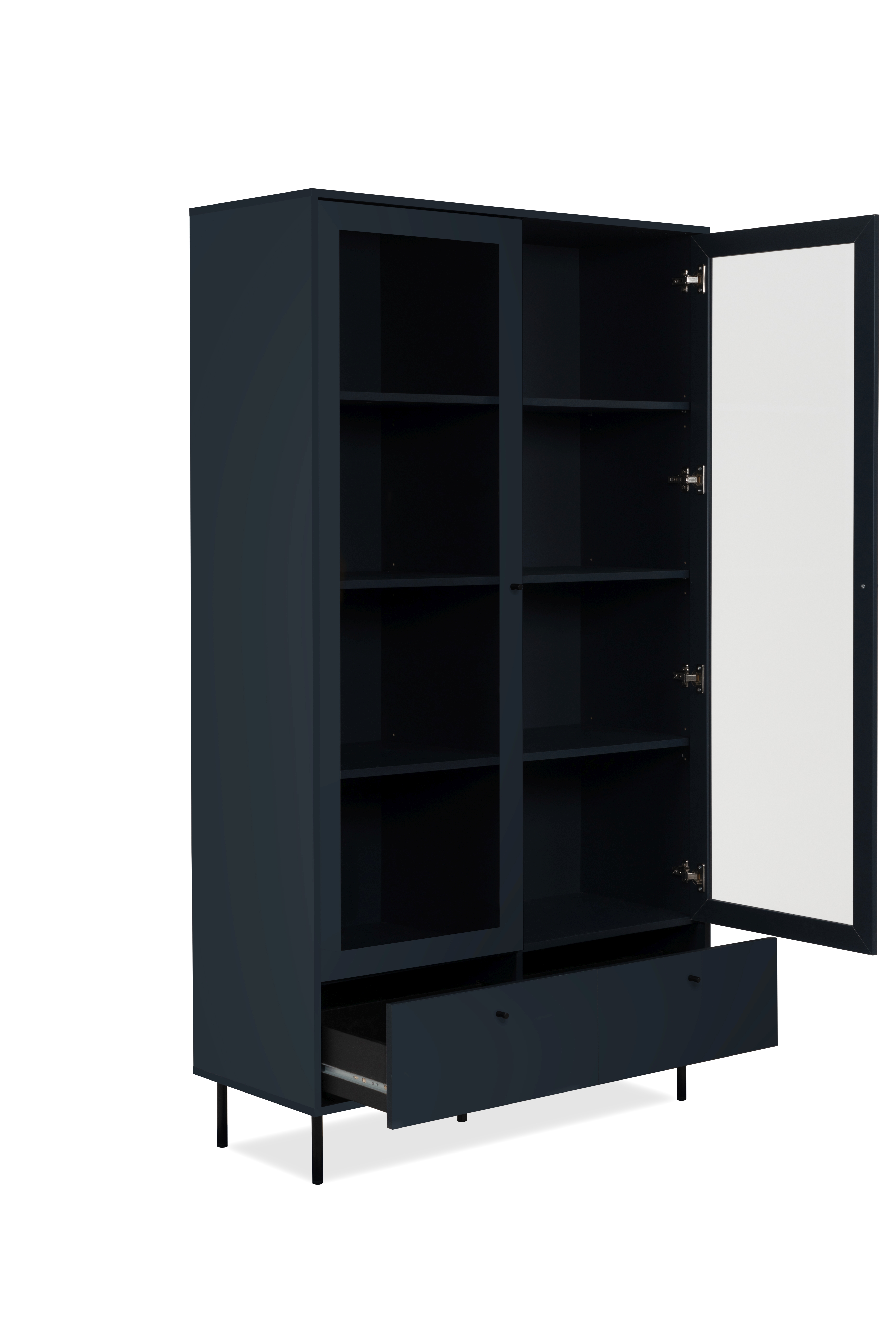 À droite : 1 porte en verre avec encadrement, 3 tablettes amovibles et 1 tiroir