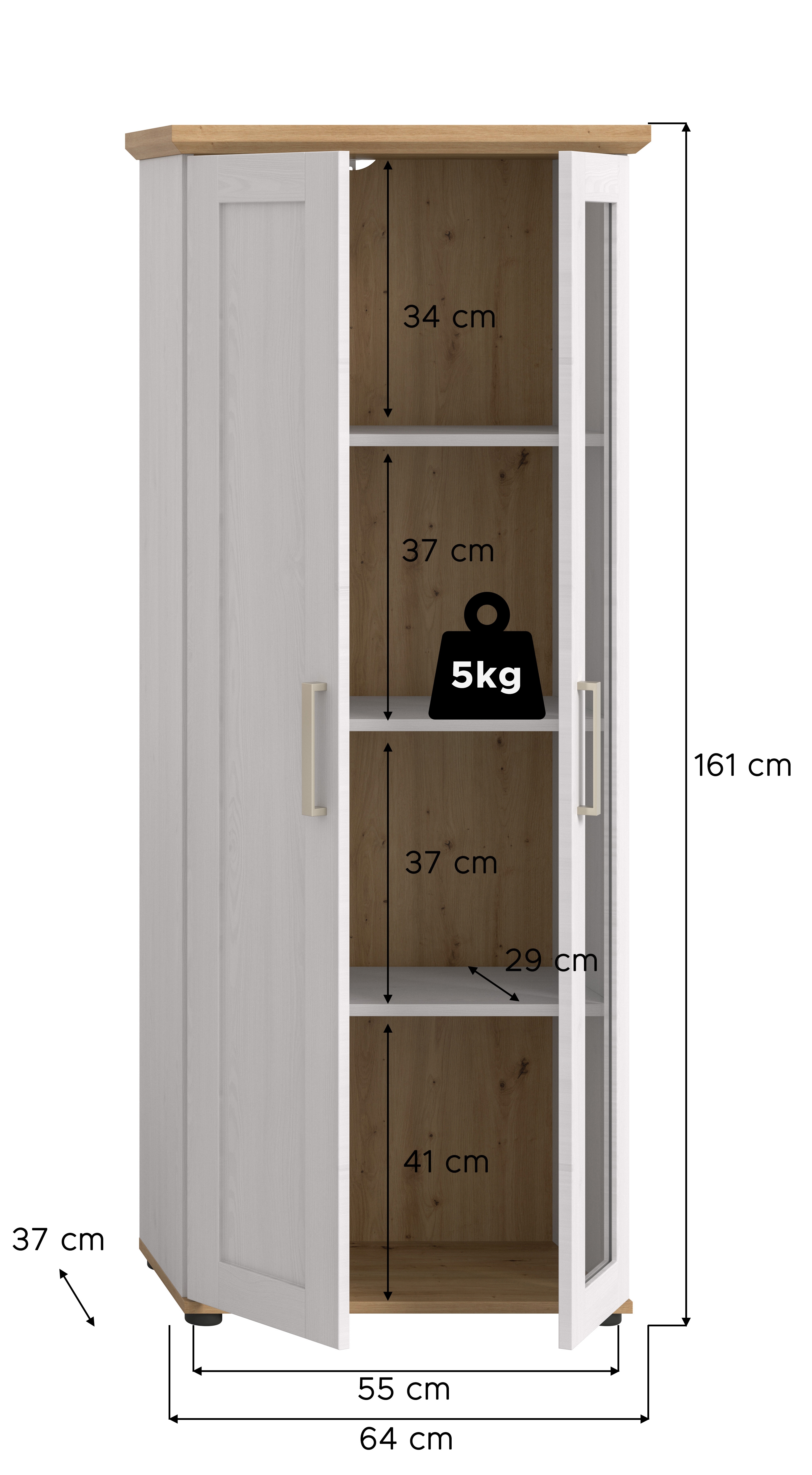 - 1 porte en bois, 1 porte en verre, 3 tablettes amovibles et réglables en hauteur, 4 casiers