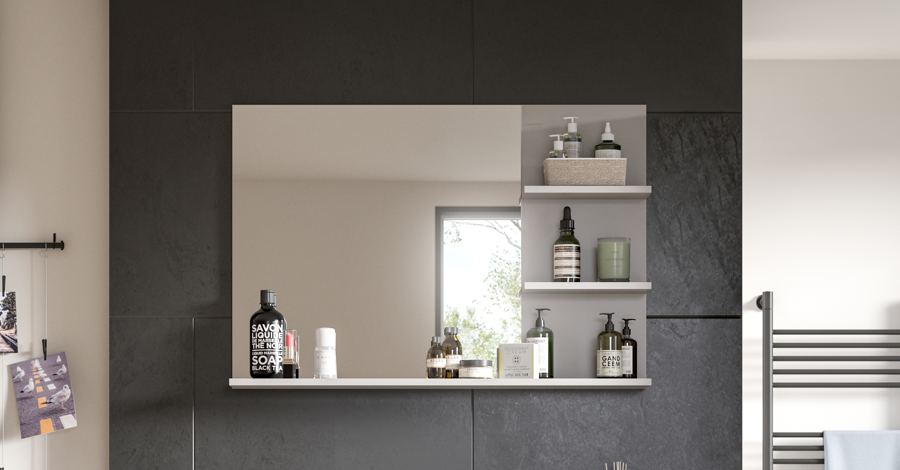 - Fonctionnalité : association du miroir et des étagères pour une utilisation pratique dans la salle de bains ; cet ensemble offre de la place pour les cosmétiques, médicaments et décorations.