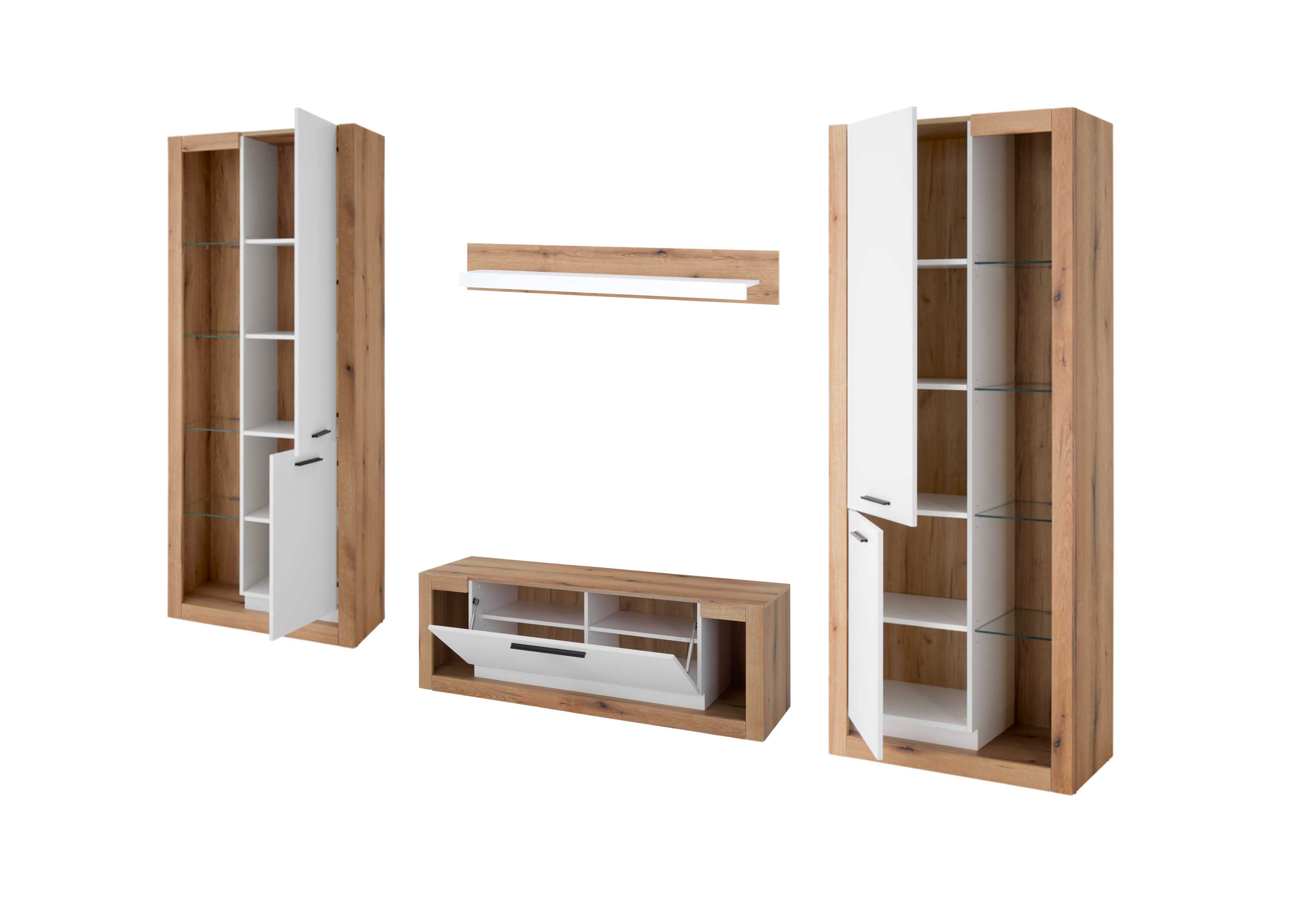 1 banc TV avec 1 abattant, 2 tablettes amovibles et 2 casiers ouverts