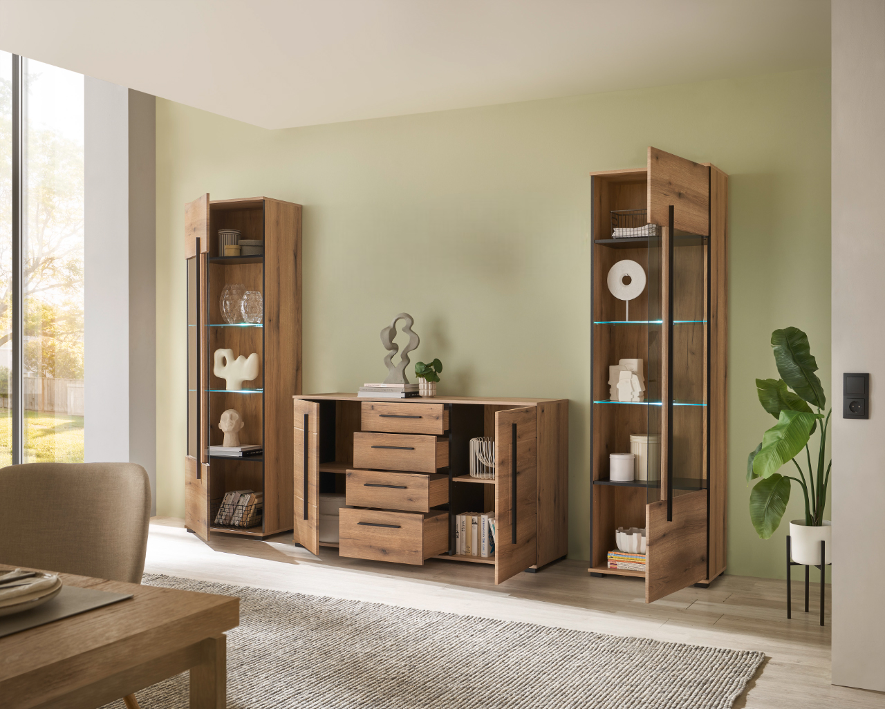 1 bahut avec 2 portes, 2 tablettes fixes et 4 tiroirs
