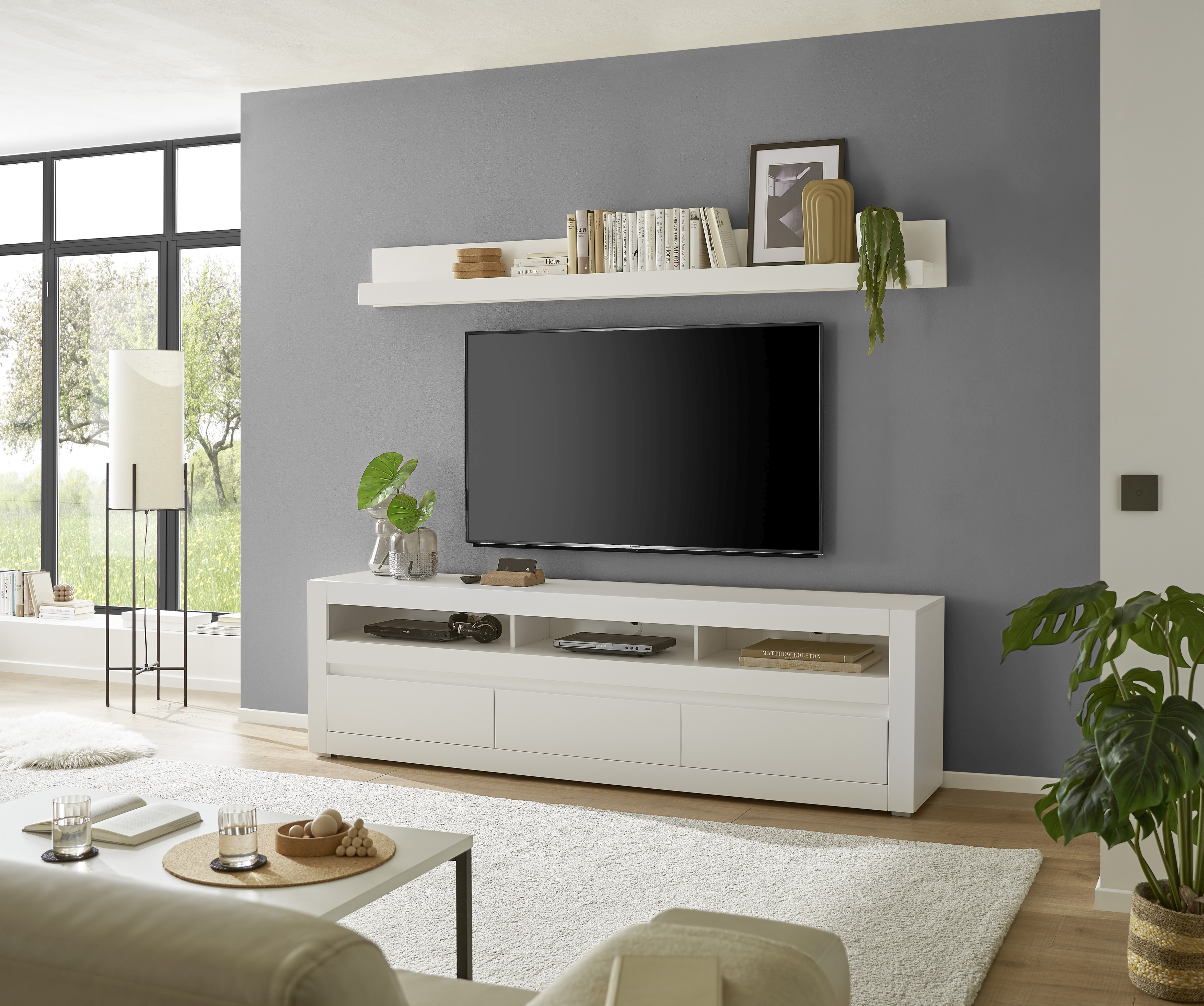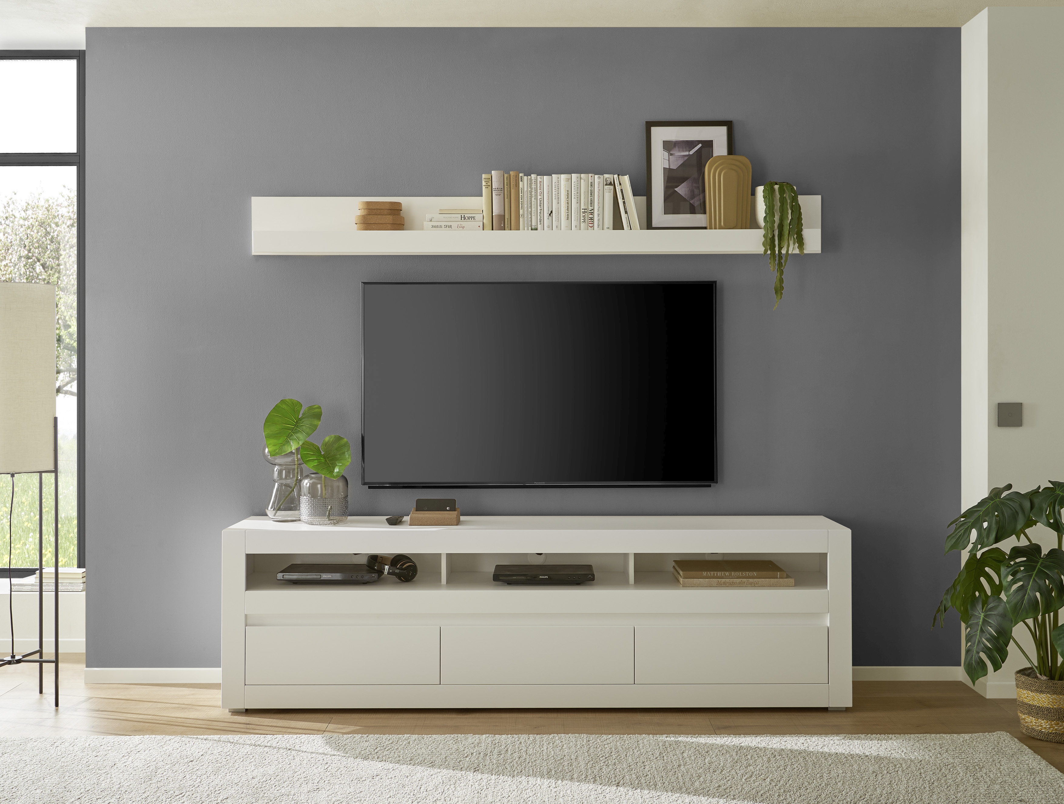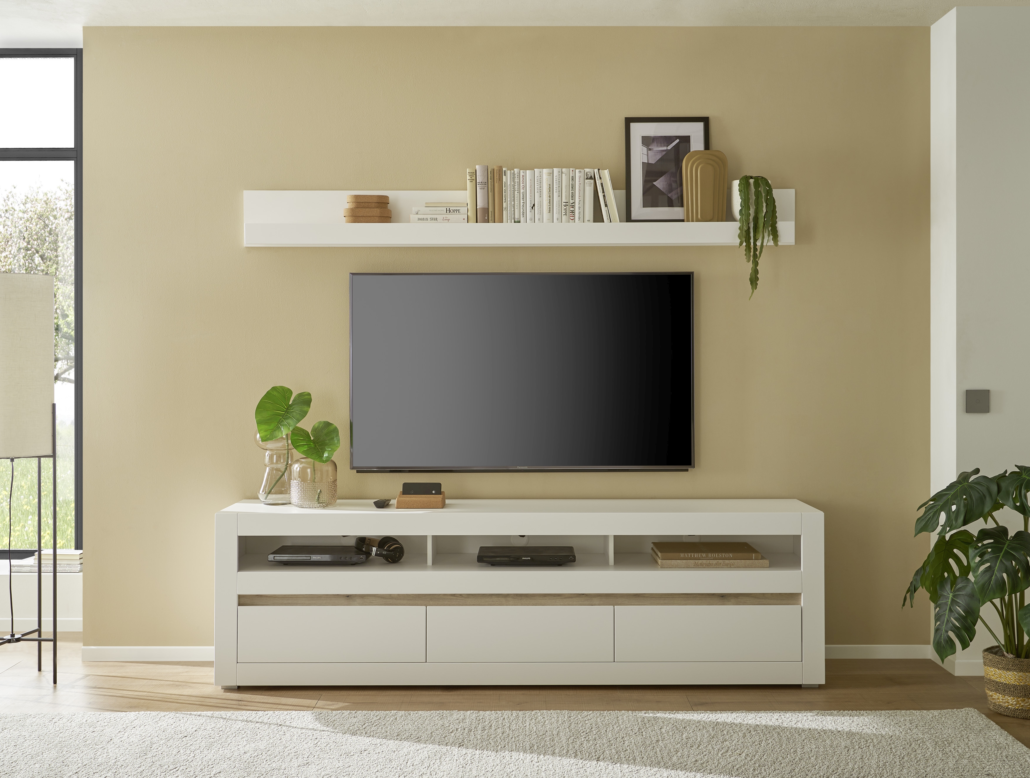 1 banc TV avec 3 casiers pour l'équipement et 3 tiroirs