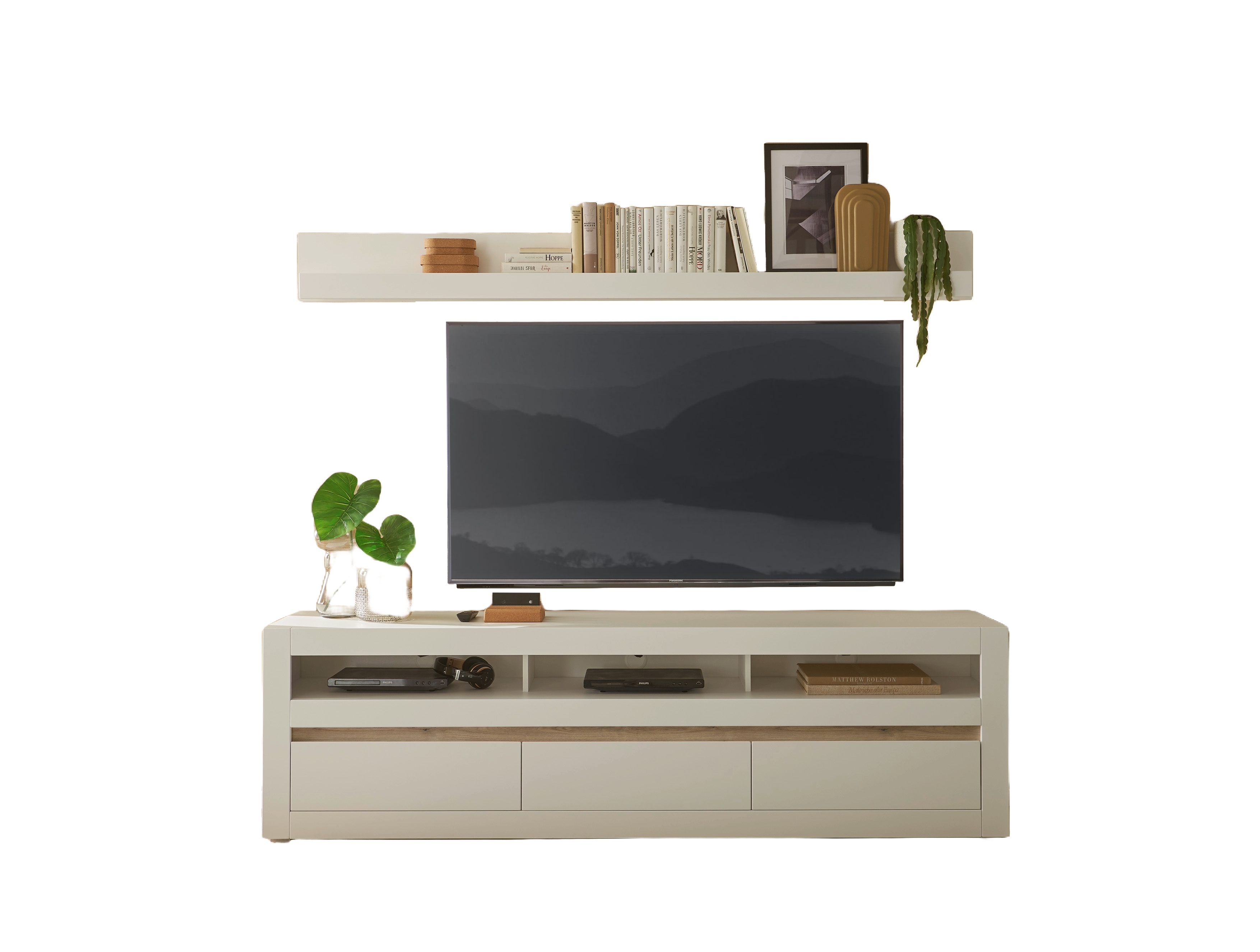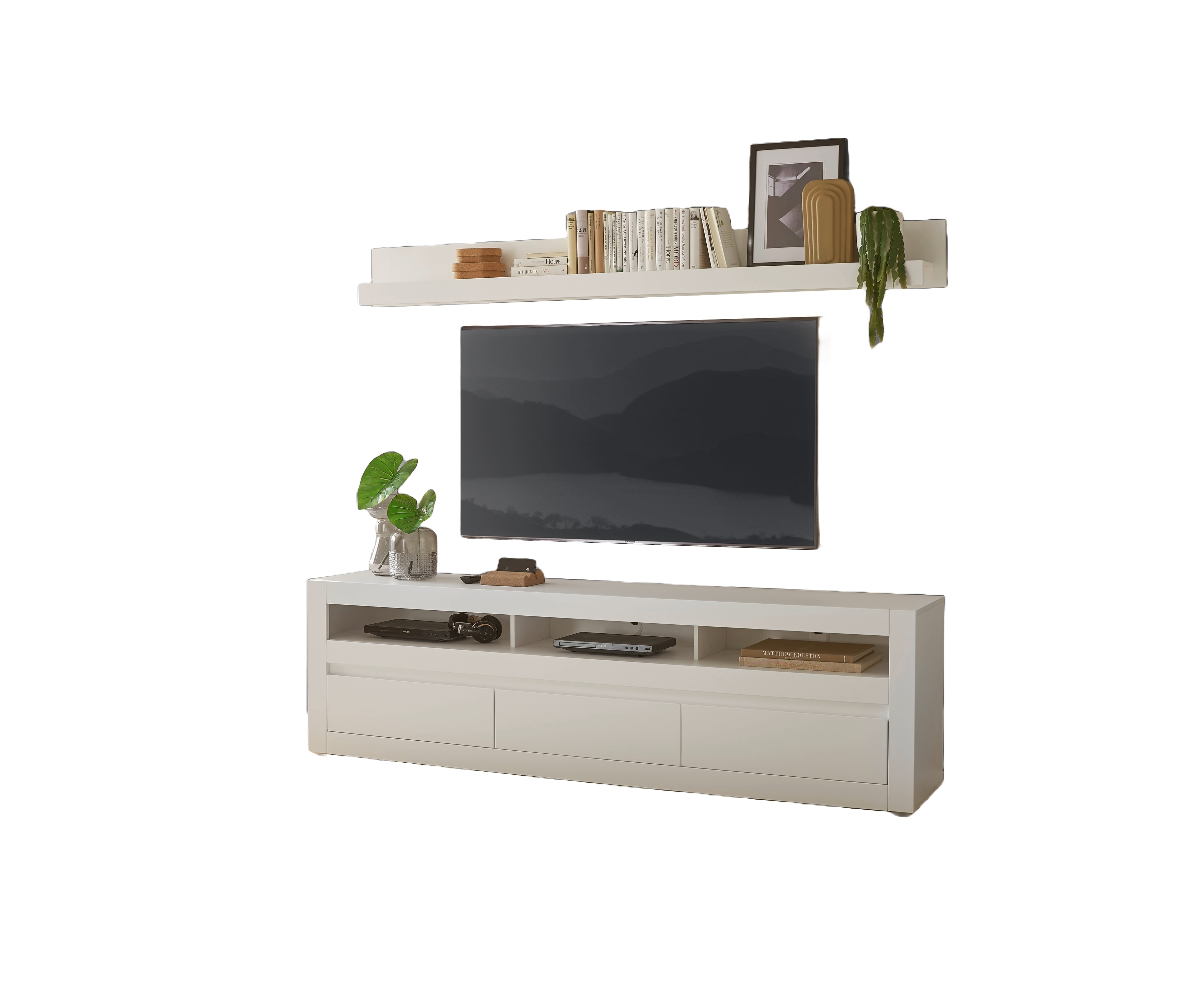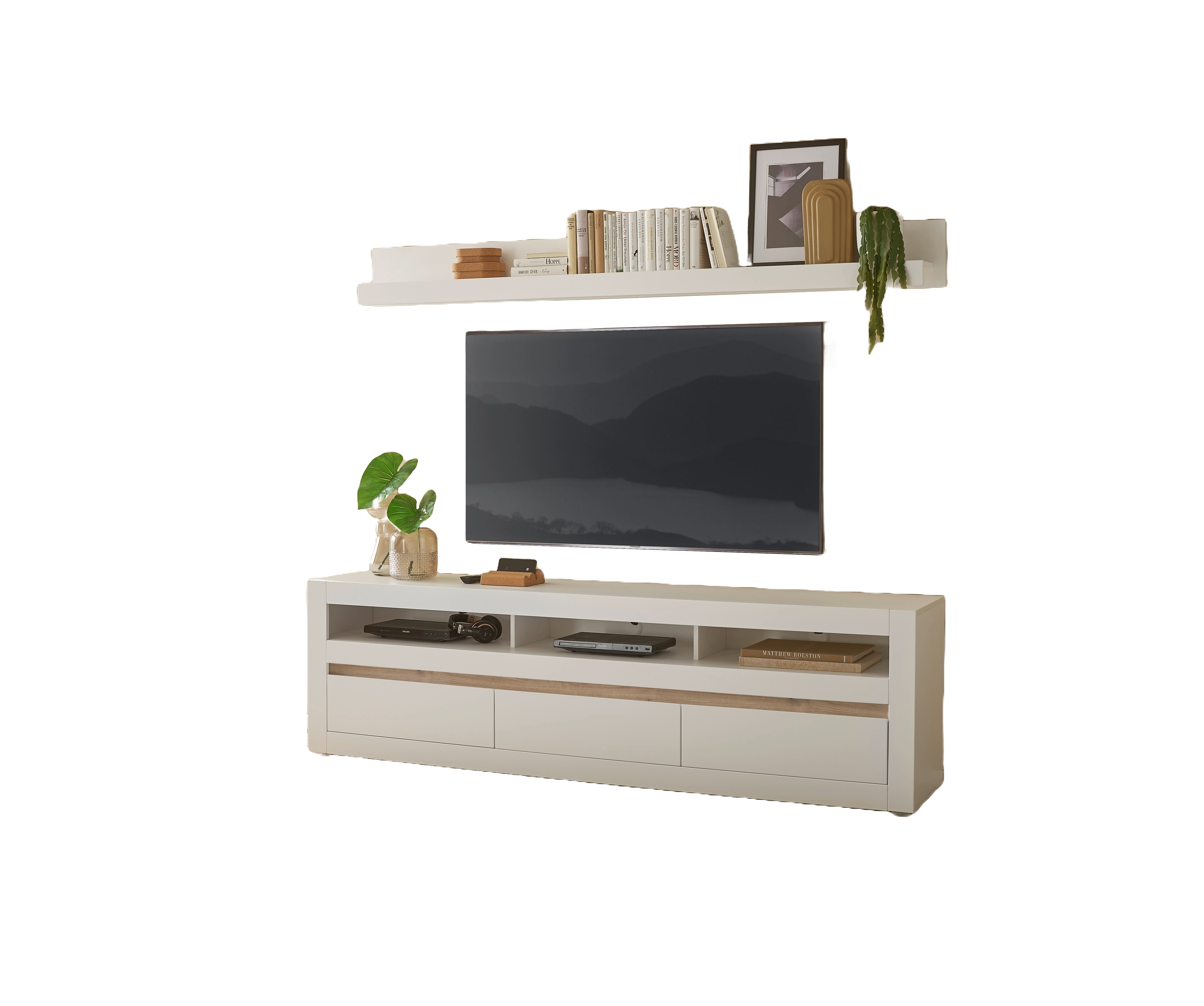 1 banc TV avec 3 casiers pour l'équipement et 3 tiroirs