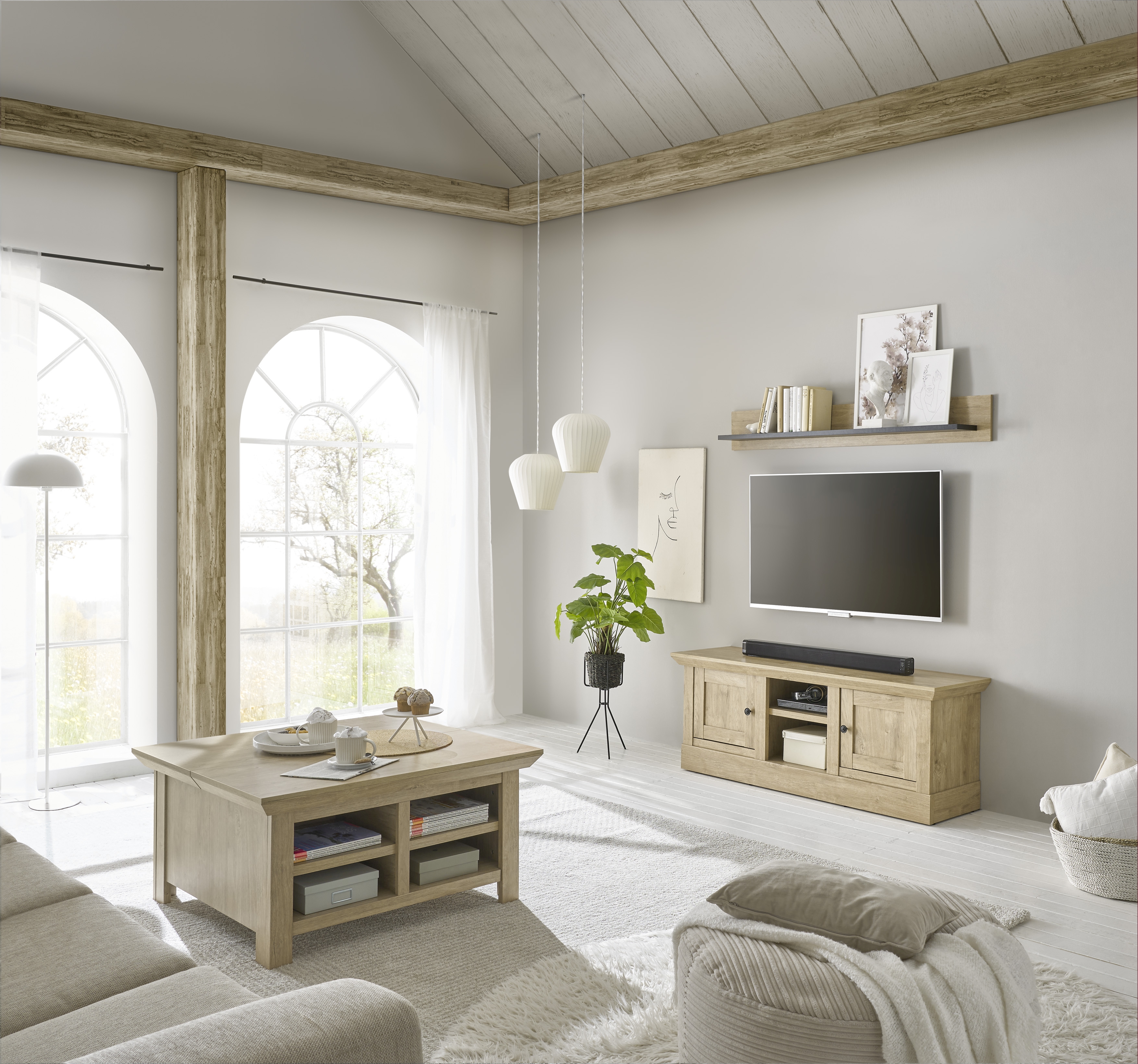 1 banc TV avec 2 portes et 2 casiers ouverts